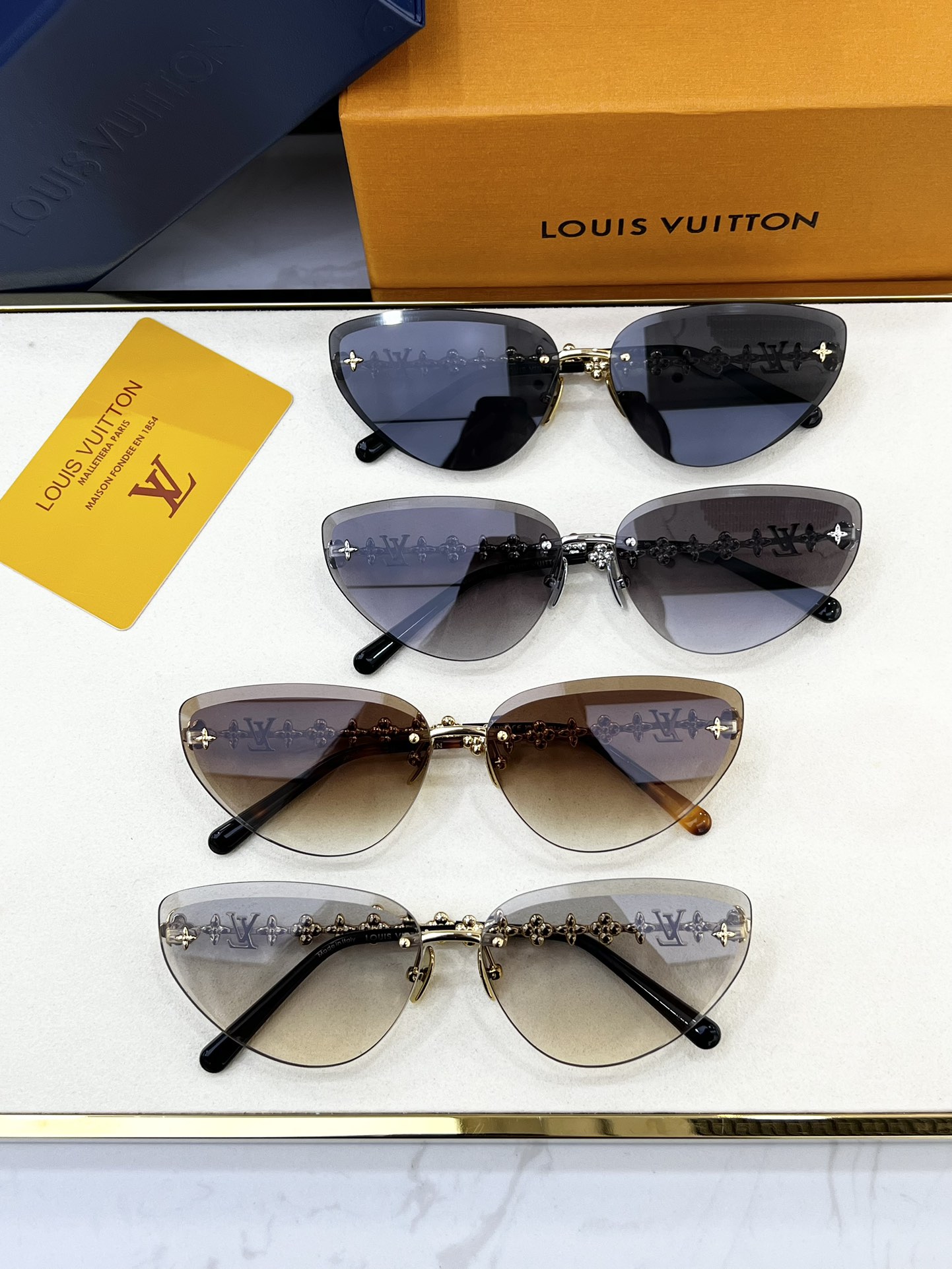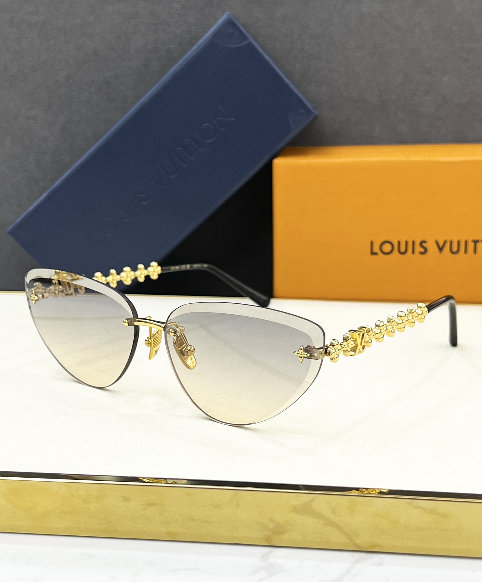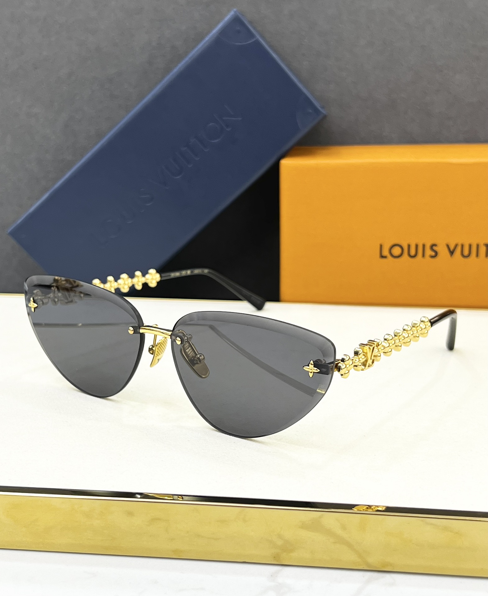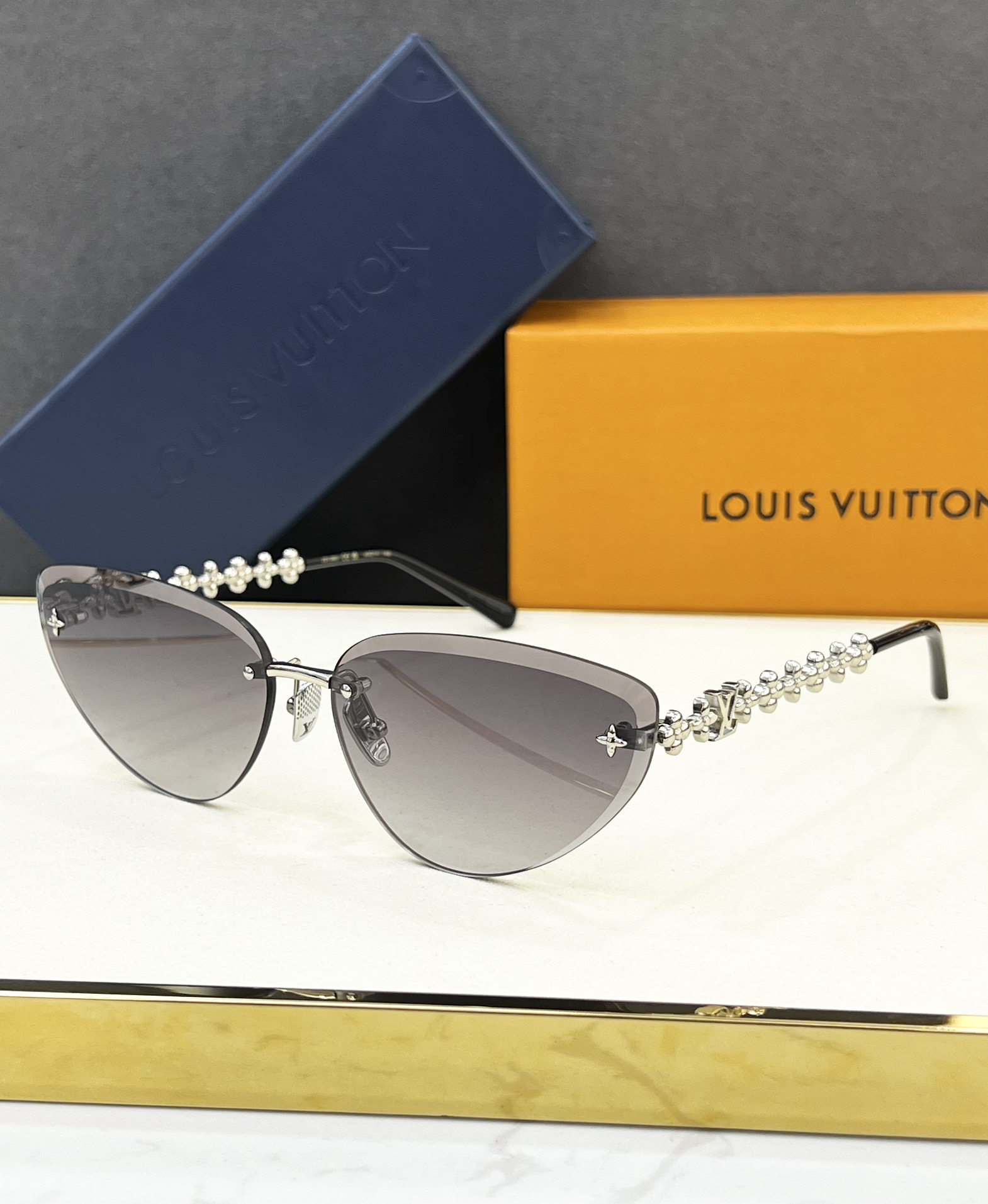 这款太阳眼镜是AAAAA 1:1 质量 (非常棒). 使用了和原版一模一样的材料. 商标部分也保持了和路易威登/Louis Vuitton一样. 图片拍摄是实物太阳眼镜拍摄, 您所收到的实物保证和我们图片一模一样.