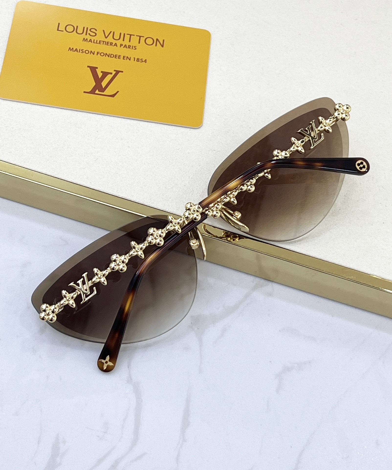 这款太阳眼镜是AAAAA 1:1 质量 (非常棒). 使用了和原版一模一样的材料. 商标部分也保持了和路易威登/Louis Vuitton一样. 图片拍摄是实物太阳眼镜拍摄, 您所收到的实物保证和我们图片一模一样.