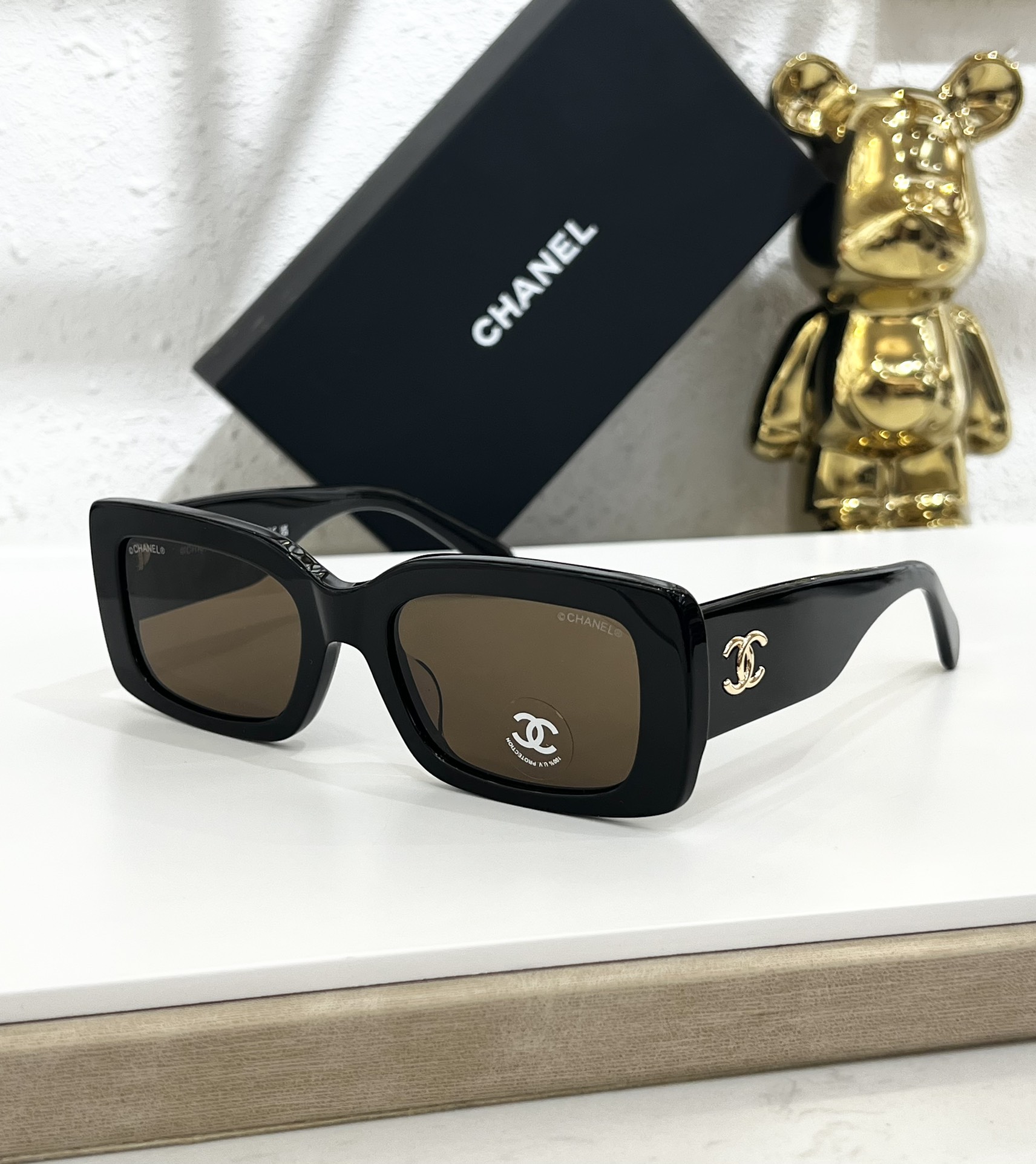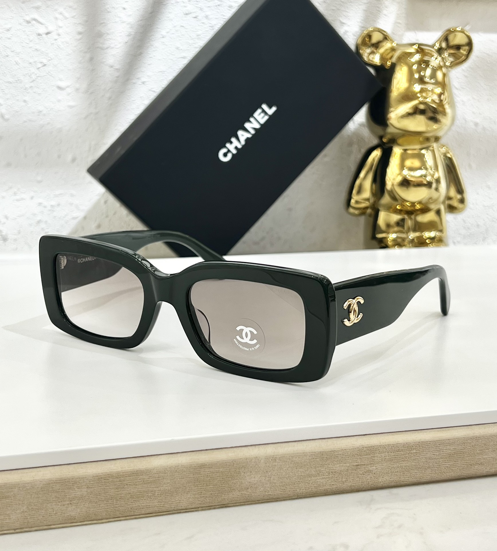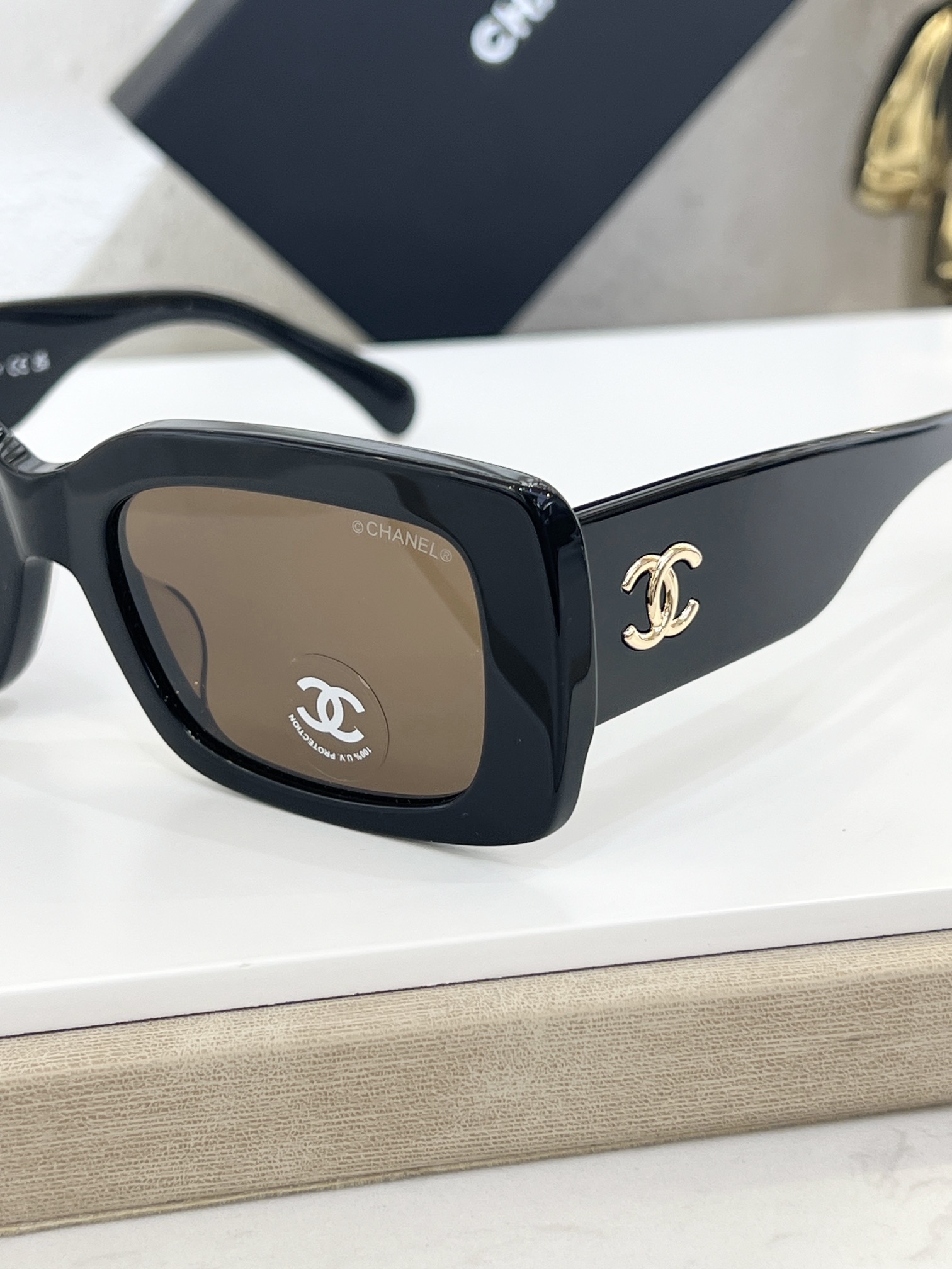 这款太阳眼镜是AAAAA 1:1 质量 (非常棒). 使用了和原版一模一样的材料. 商标部分也保持了和香奈儿/Chanel一样. 图片拍摄是实物太阳眼镜拍摄, 您所收到的实物保证和我们图片一模一样.