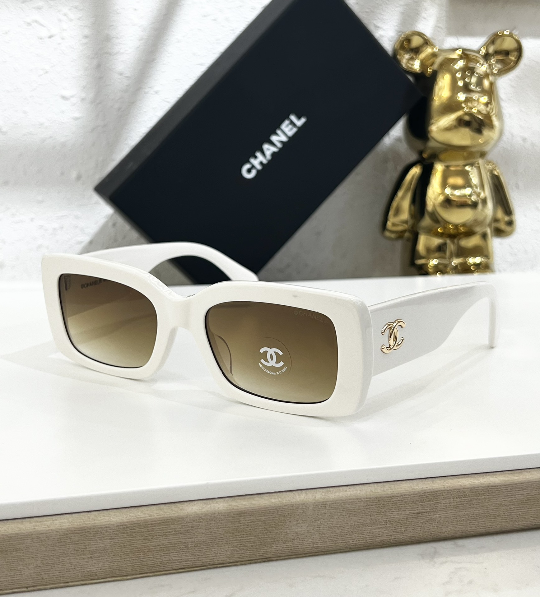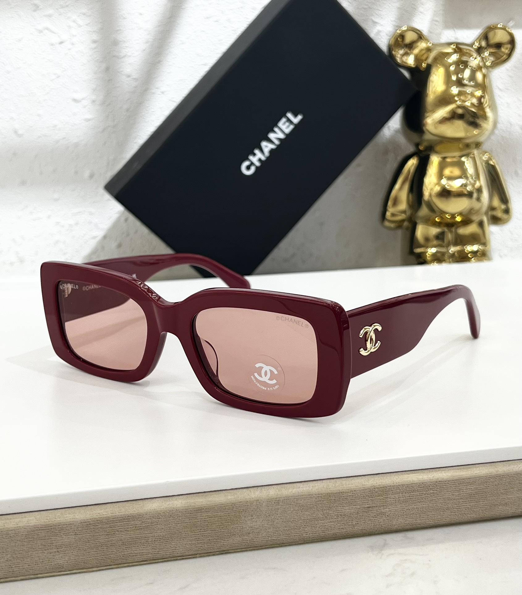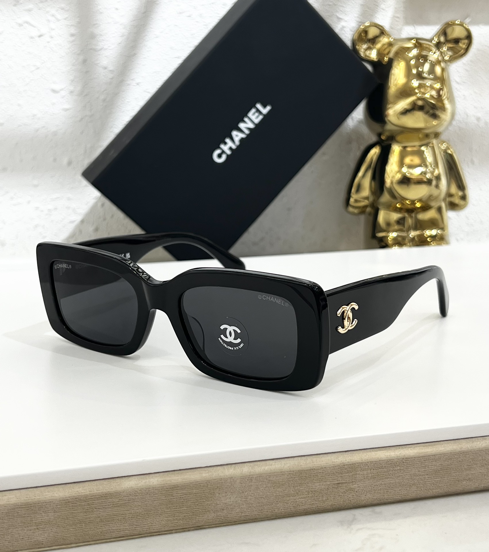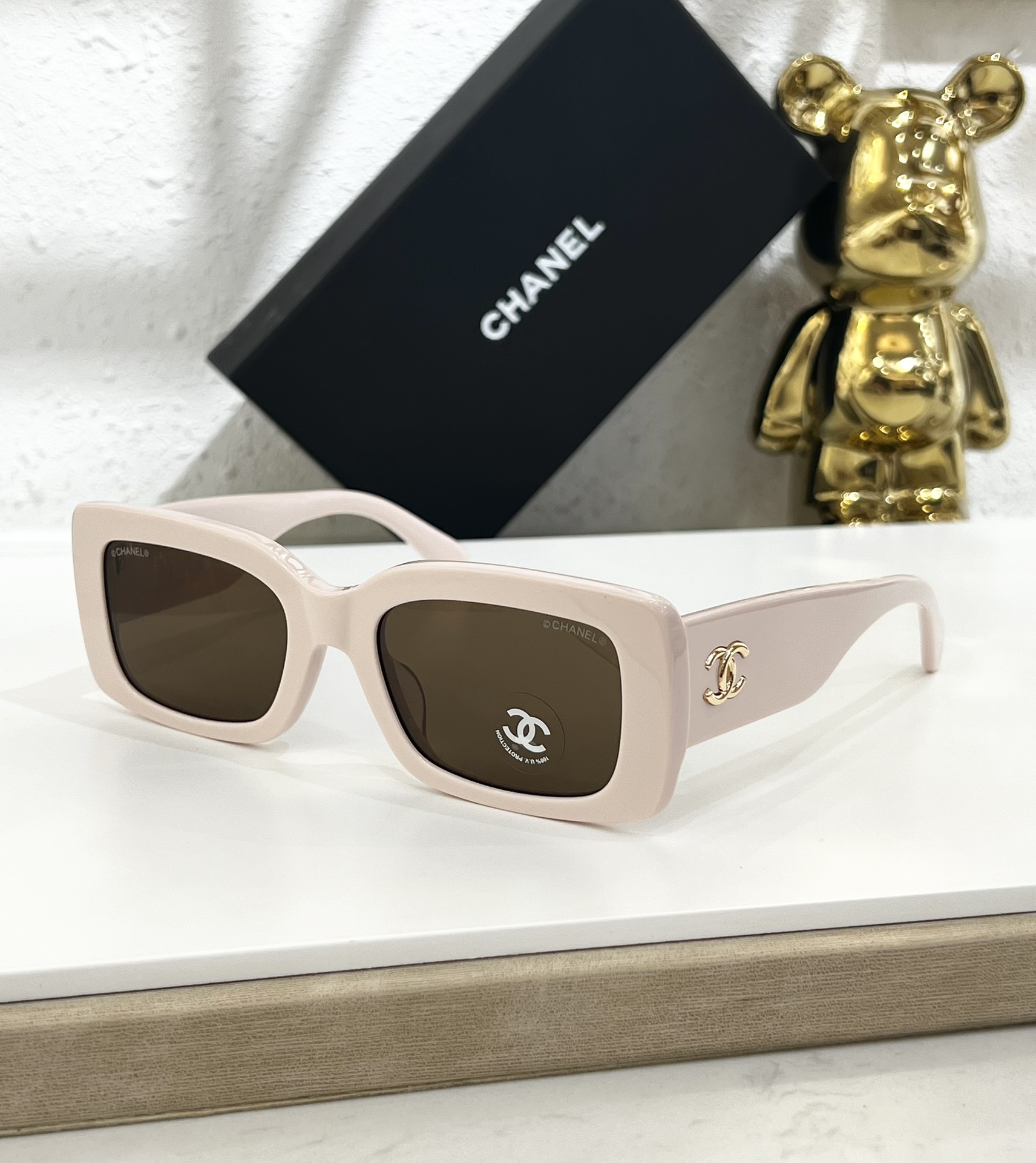 这款太阳眼镜是AAAAA 1:1 质量 (非常棒). 使用了和原版一模一样的材料. 商标部分也保持了和香奈儿/Chanel一样. 图片拍摄是实物太阳眼镜拍摄, 您所收到的实物保证和我们图片一模一样.