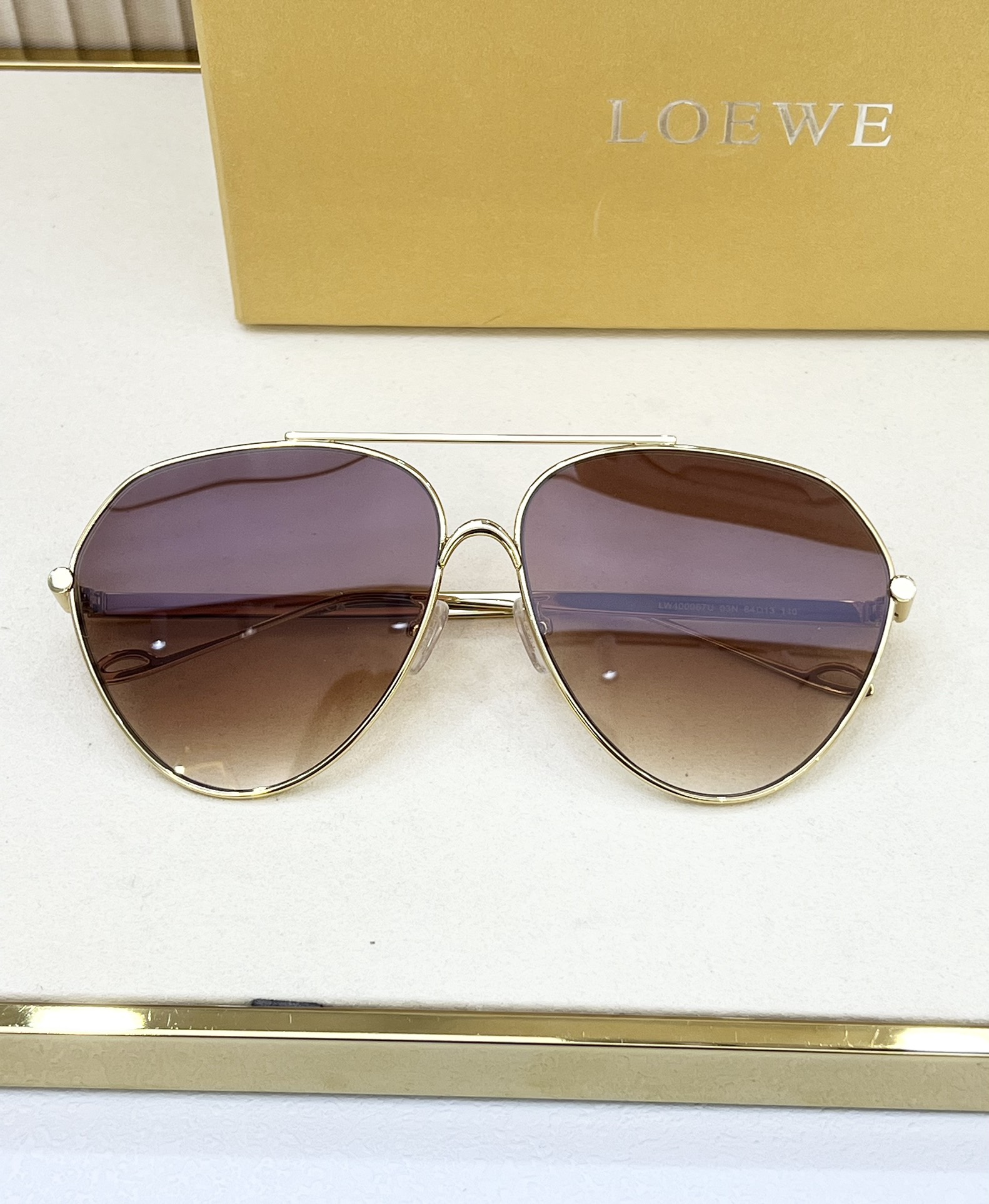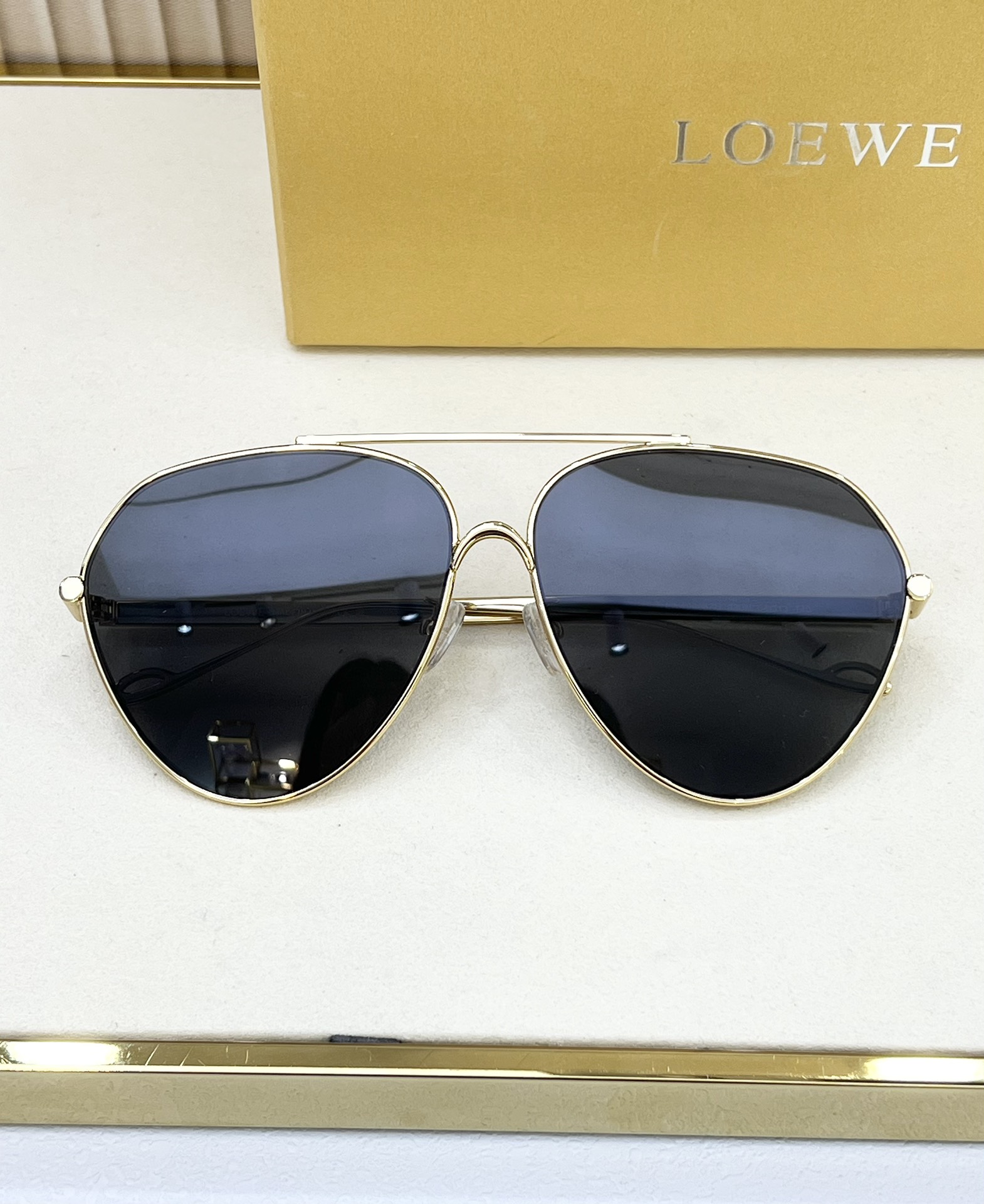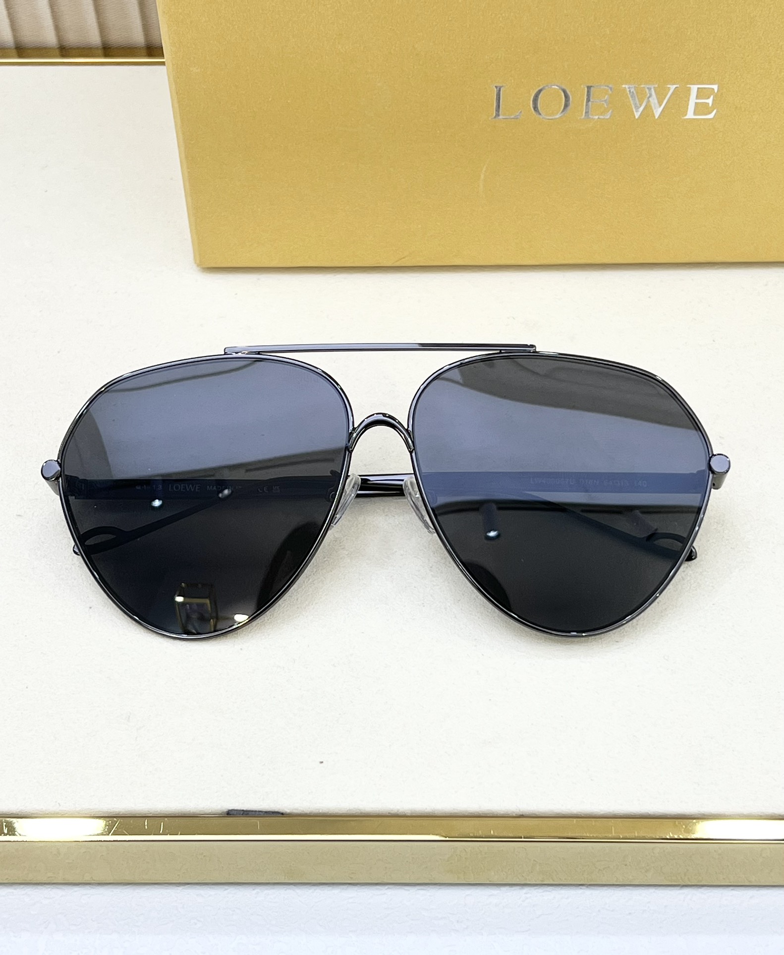 这款太阳眼镜是AAAAA 1:1 质量 (非常棒). 使用了和原版一模一样的材料. 商标部分也保持了和罗意威/Loewe一样. 图片拍摄是实物太阳眼镜拍摄, 您所收到的实物保证和我们图片一模一样.