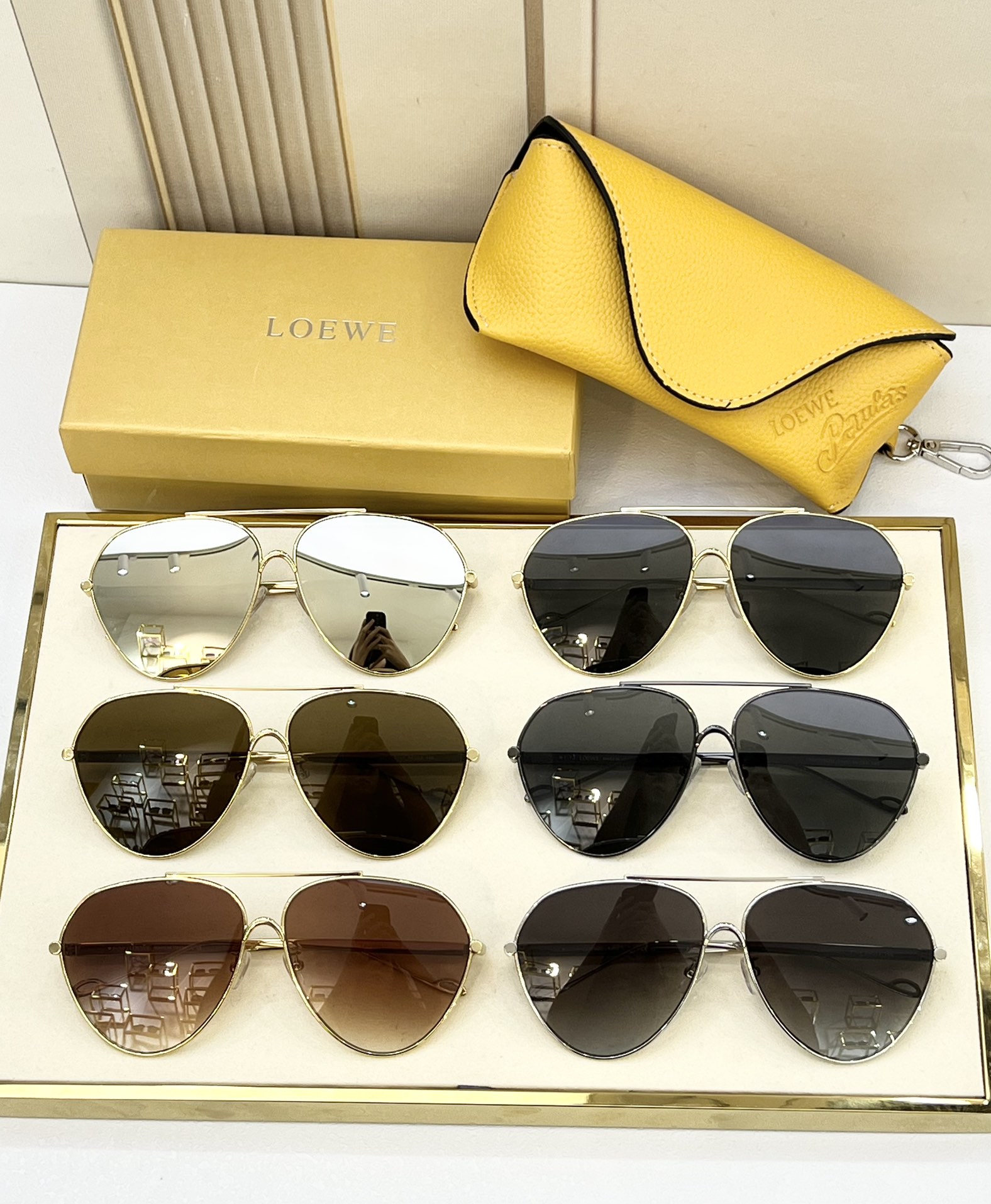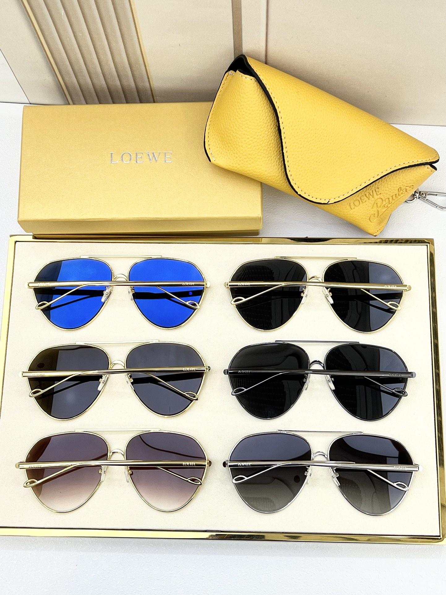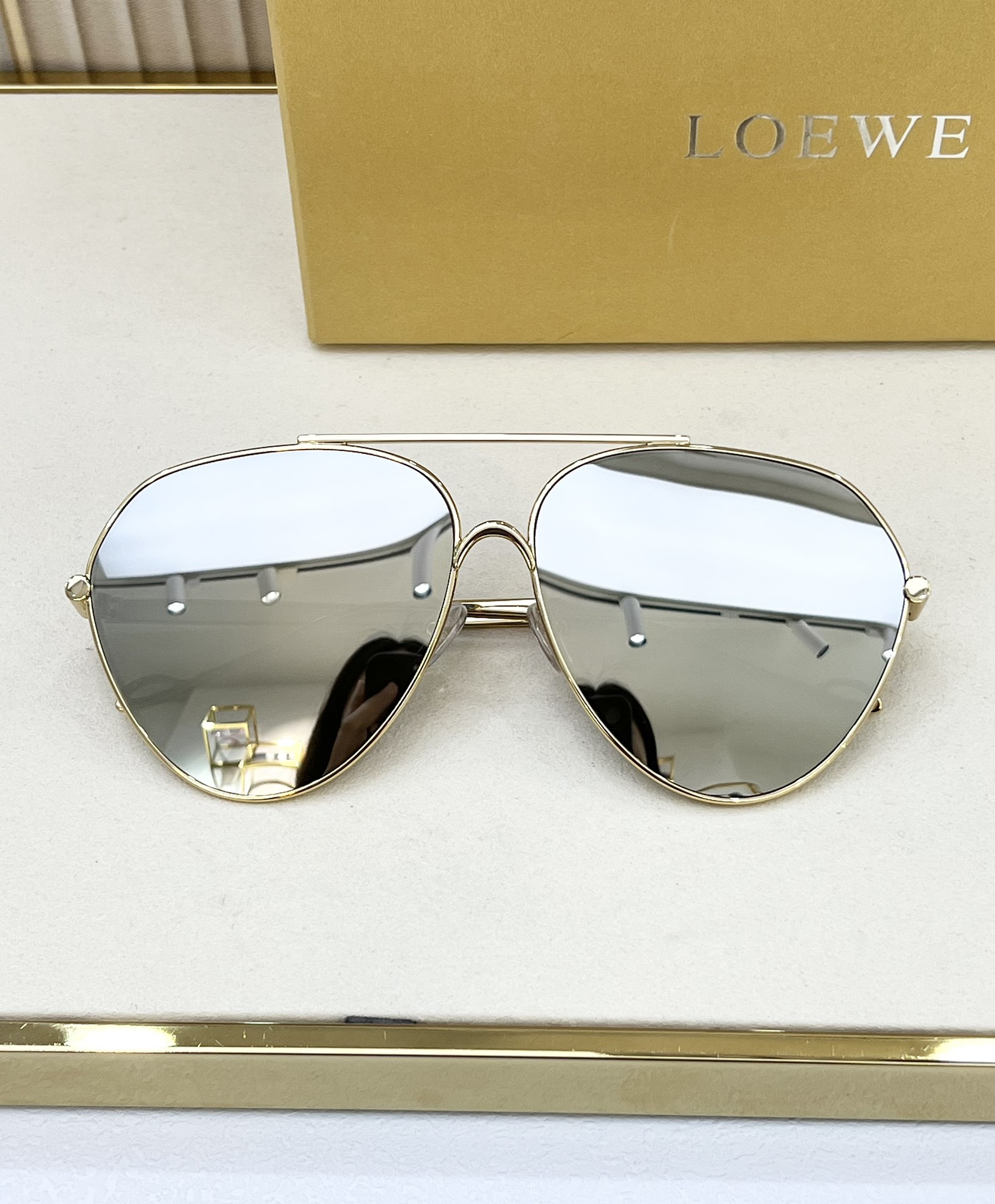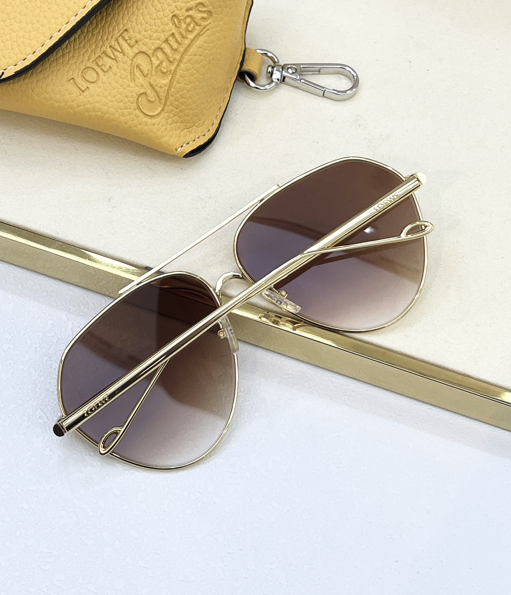 这款太阳眼镜是AAAAA 1:1 质量 (非常棒). 使用了和原版一模一样的材料. 商标部分也保持了和罗意威/Loewe一样. 图片拍摄是实物太阳眼镜拍摄, 您所收到的实物保证和我们图片一模一样.