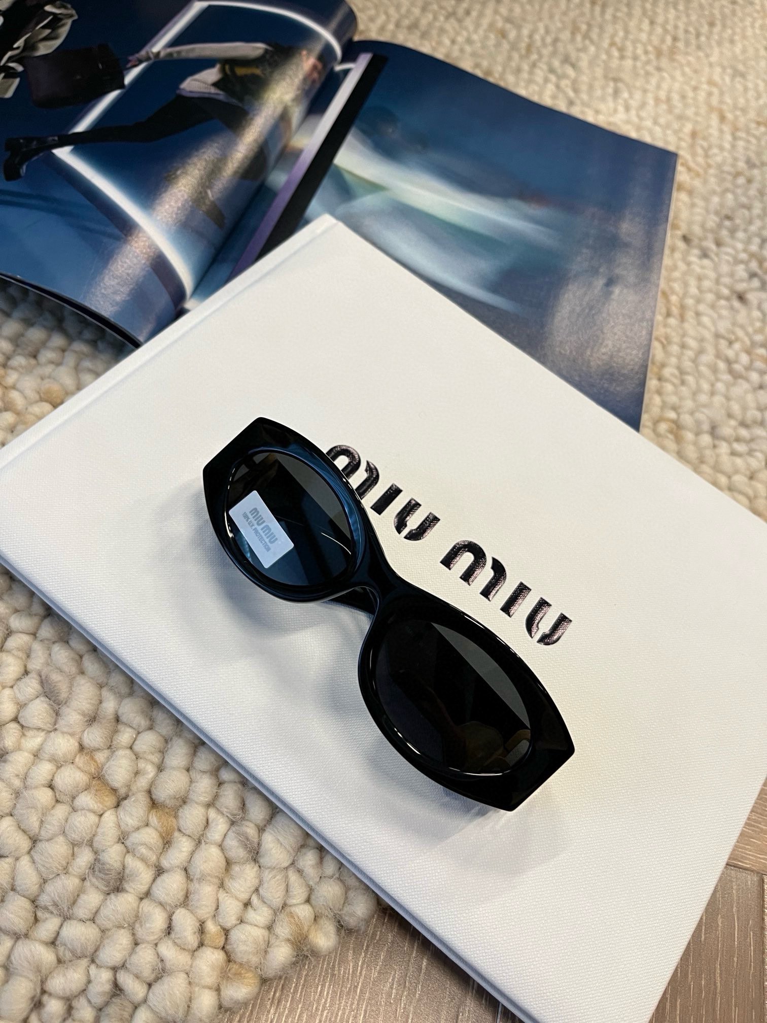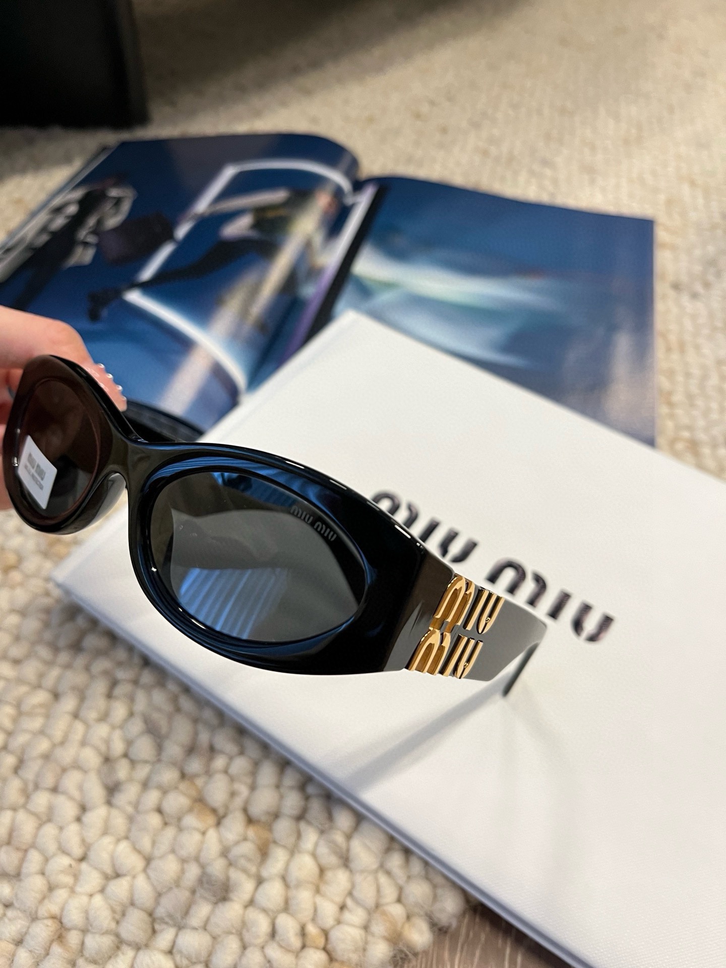 这款太阳眼镜是AAAAA 1:1 质量 (非常棒). 使用了和原版一模一样的材料. 商标部分也保持了和缪缪/Miu Miu一样. 图片拍摄是实物太阳眼镜拍摄, 您所收到的实物保证和我们图片一模一样.