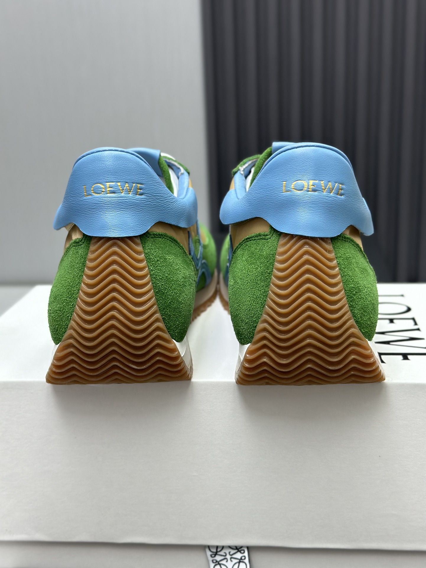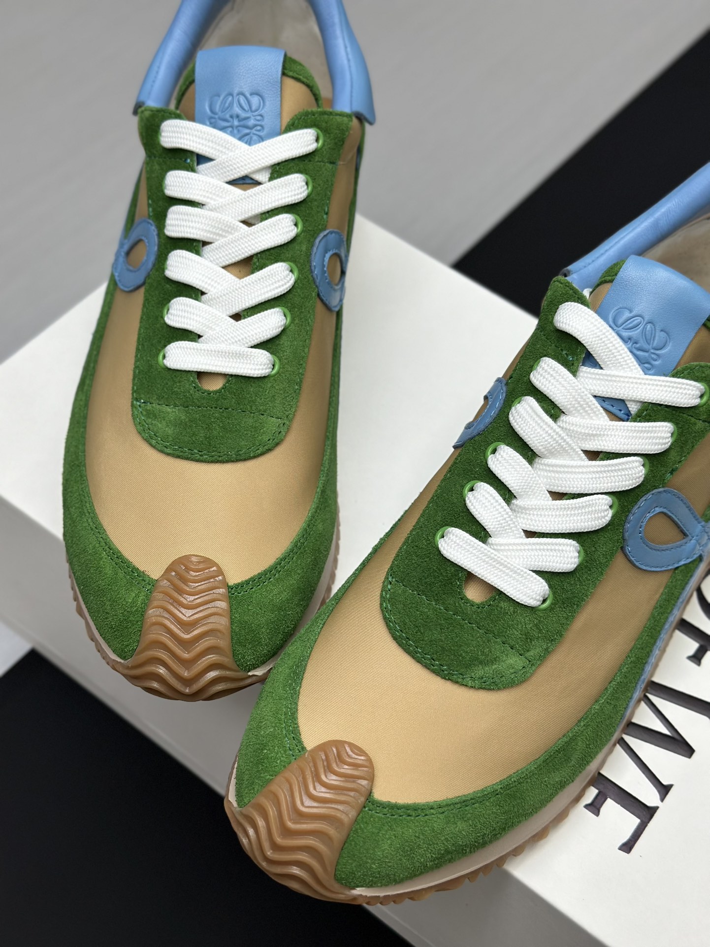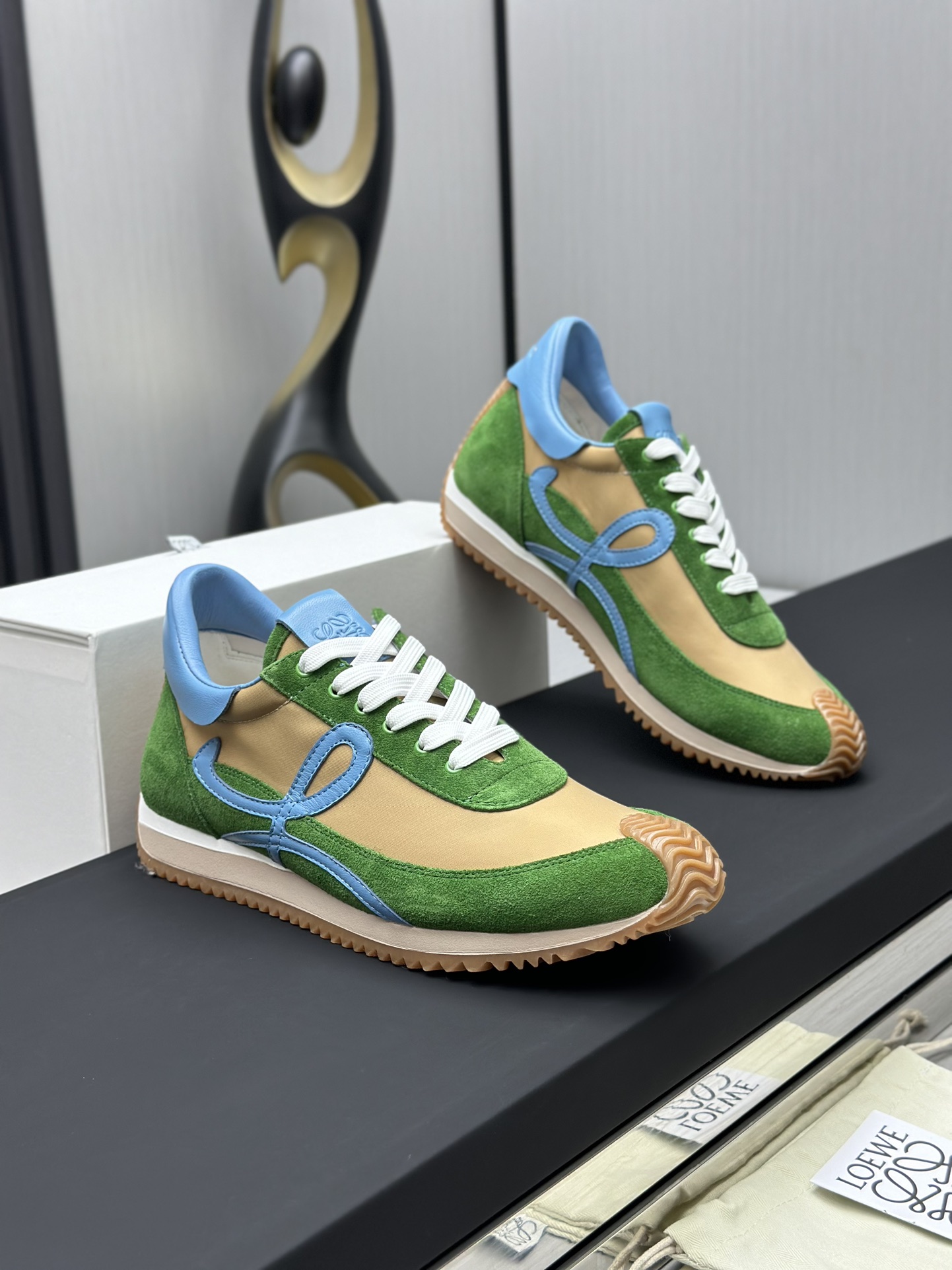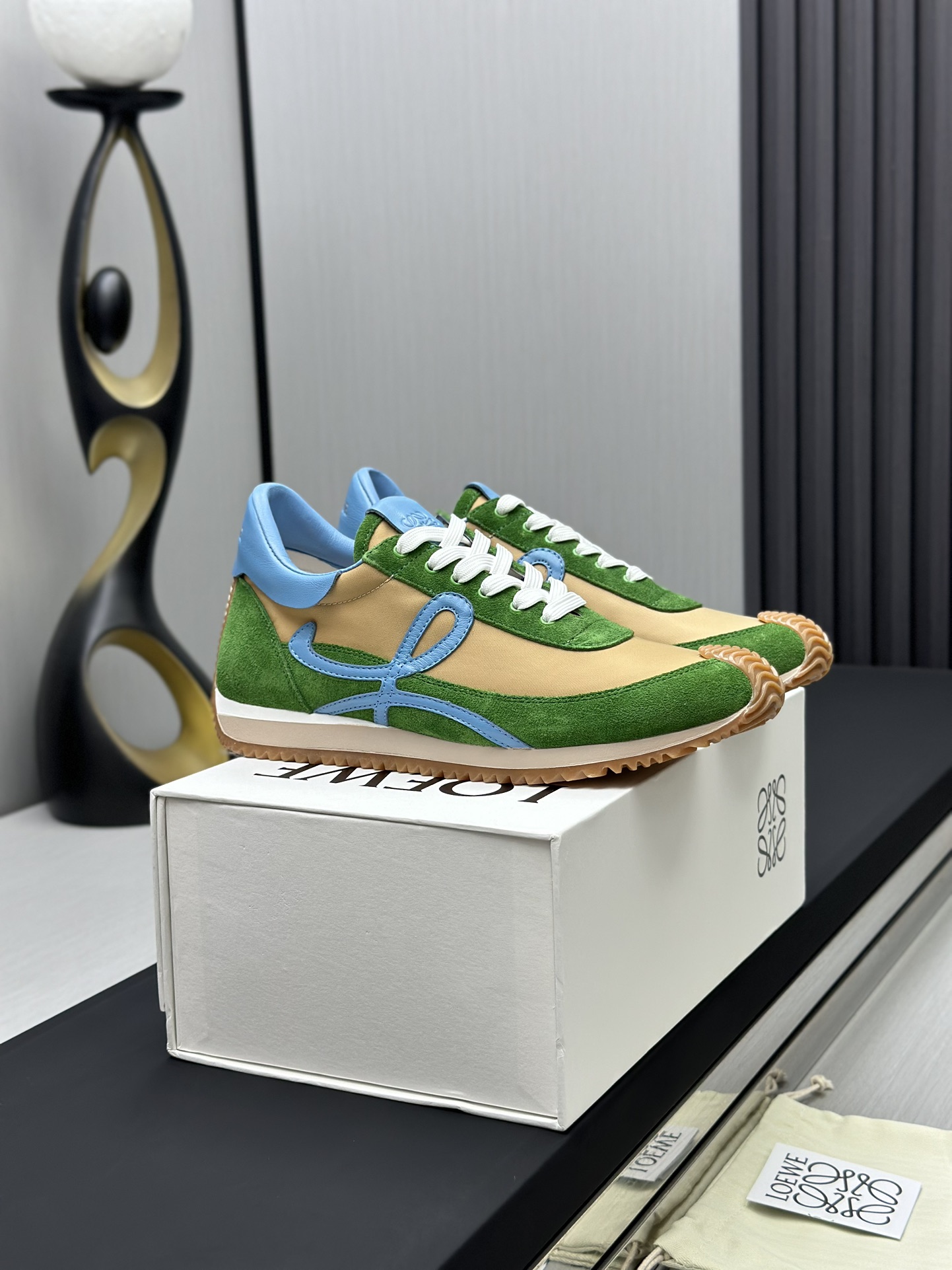 这款鞋子是AAAAA 1:1 质量 (非常棒). 使用了和原版一模一样的材料. 商标部分也保持了和罗意威/Loewe一样. 图片拍摄是实物鞋子拍摄, 您所收到的实物保证和我们图片一模一样.