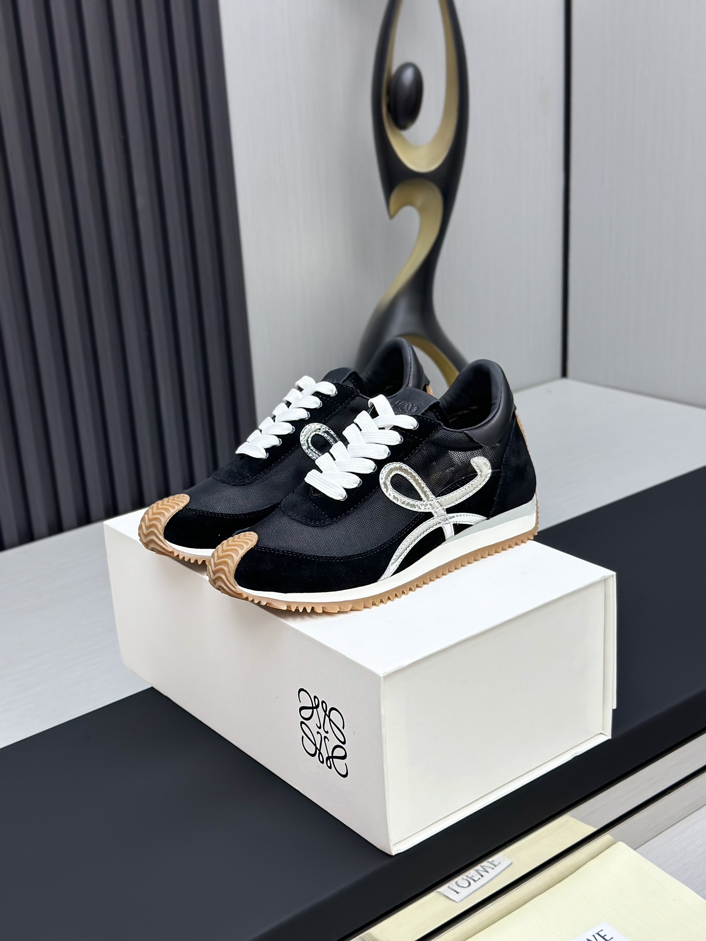 这款鞋子是AAAAA 1:1 质量 (非常棒). 使用了和原版一模一样的材料. 商标部分也保持了和罗意威/Loewe一样. 图片拍摄是实物鞋子拍摄, 您所收到的实物保证和我们图片一模一样.