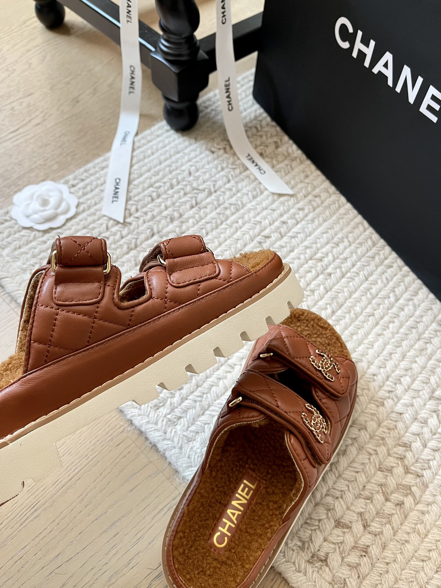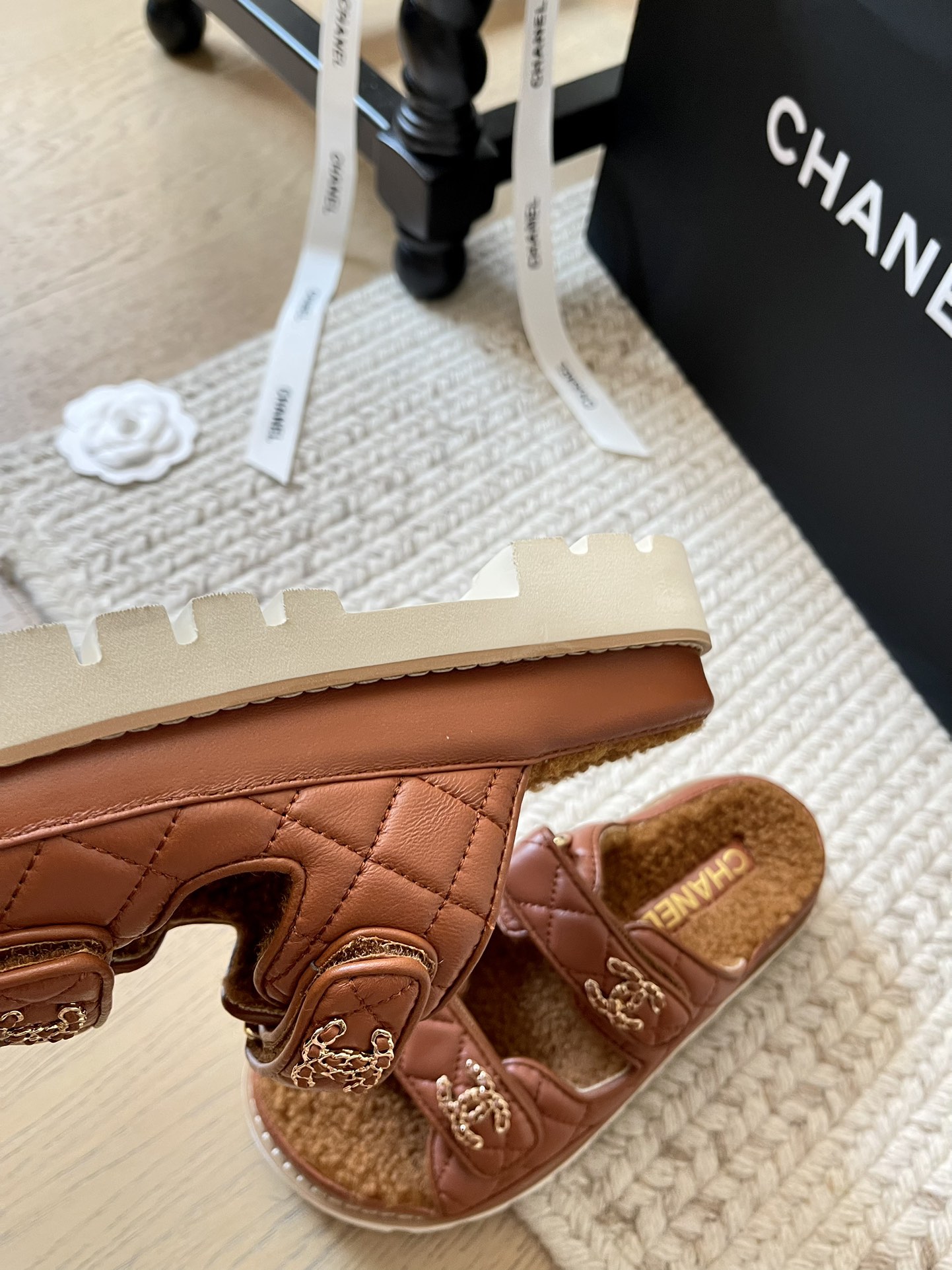 这款鞋子是AAAAA 1:1 质量 (非常棒). 使用了和原版一模一样的材料. 商标部分也保持了和香奈儿/Chanel一样. 图片拍摄是实物鞋子拍摄, 您所收到的实物保证和我们图片一模一样.