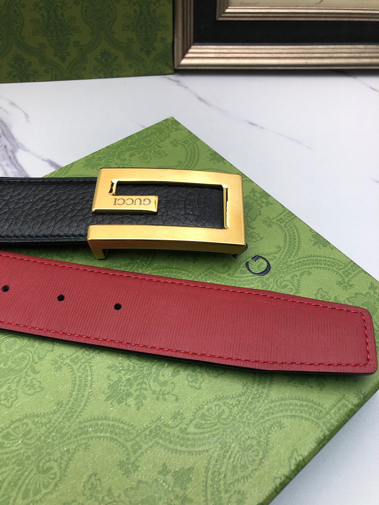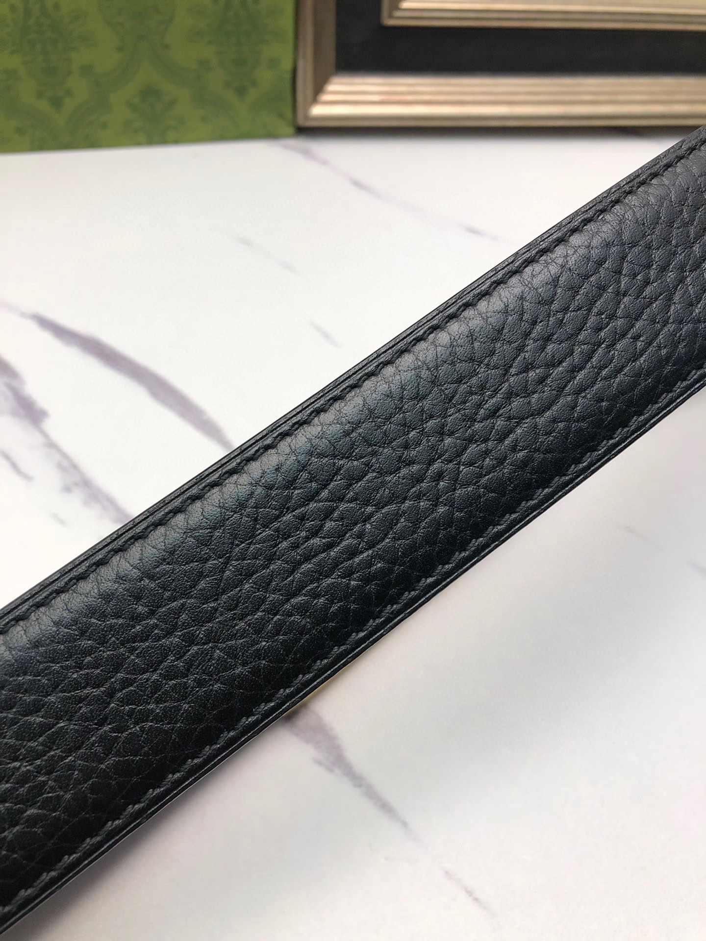 这款皮带是AAAAA 1:1 质量 (非常棒). 使用了和原版一模一样的材料. 商标部分也保持了和古奇/Gucci一样. 图片拍摄是实物皮带拍摄, 您所收到的实物保证和我们图片一模一样.