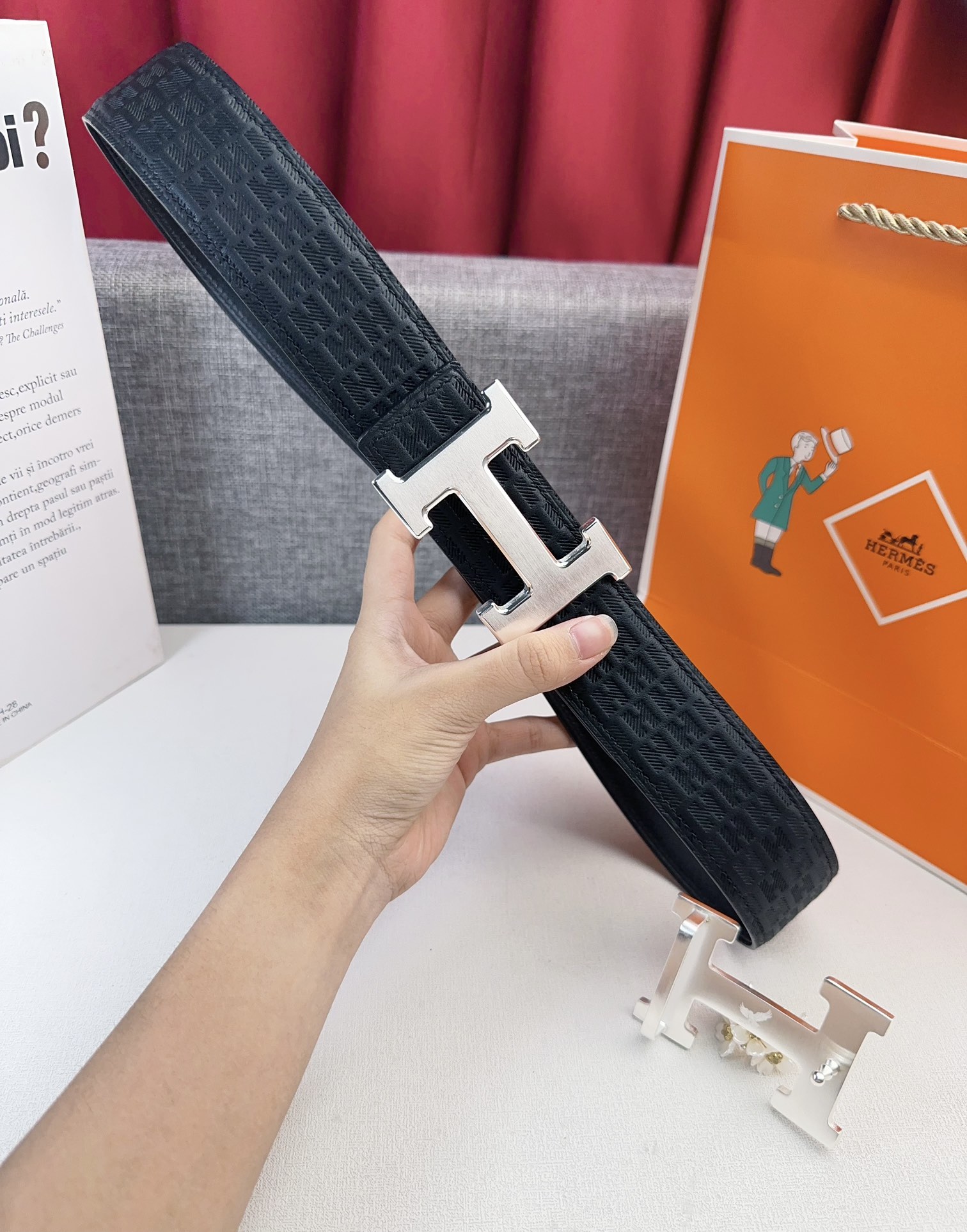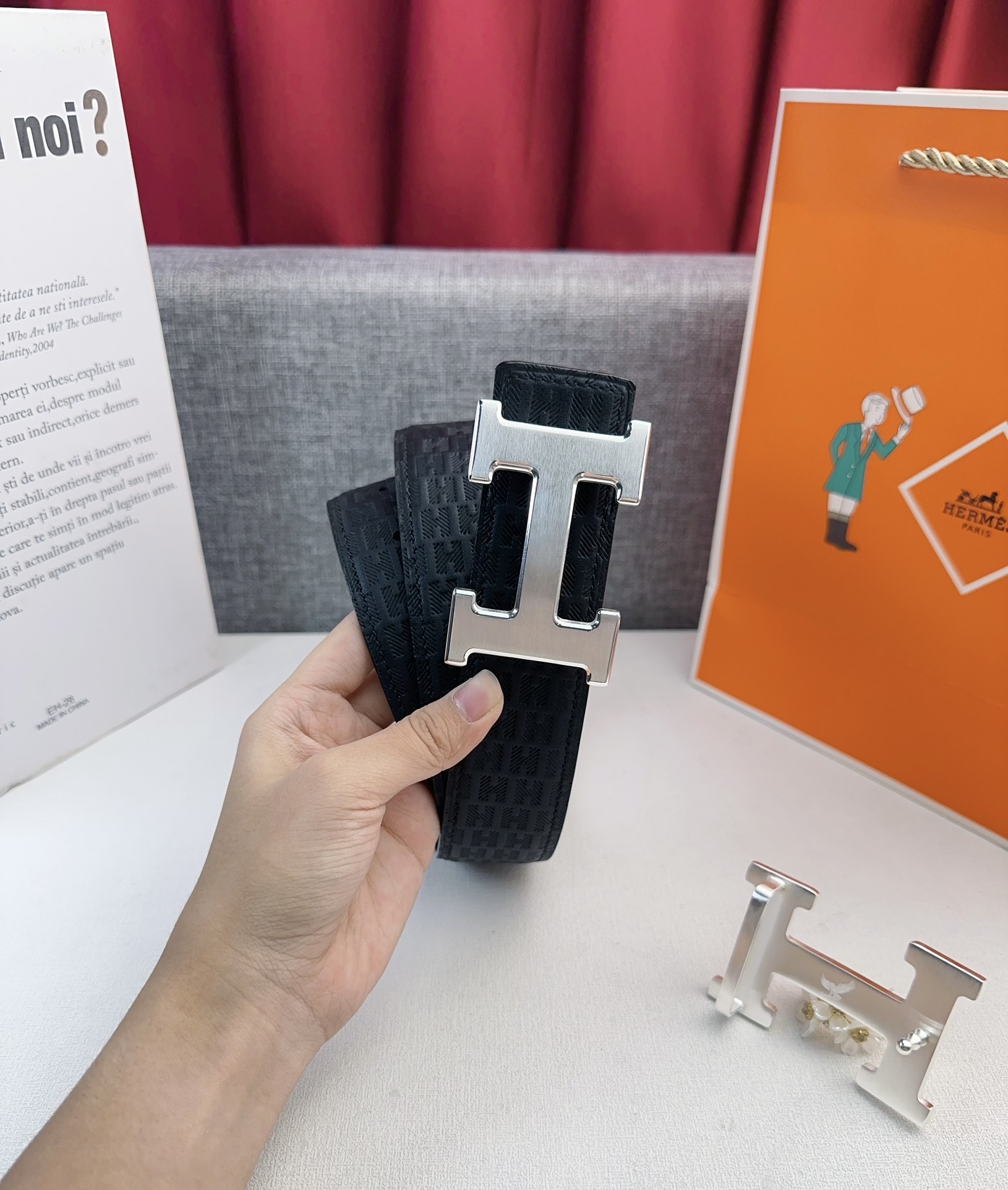 这款皮带是AAAAA 1:1 质量 (非常棒). 使用了和原版一模一样的材料. 商标部分也保持了和爱马仕/Hermes一样. 图片拍摄是实物皮带拍摄, 您所收到的实物保证和我们图片一模一样.