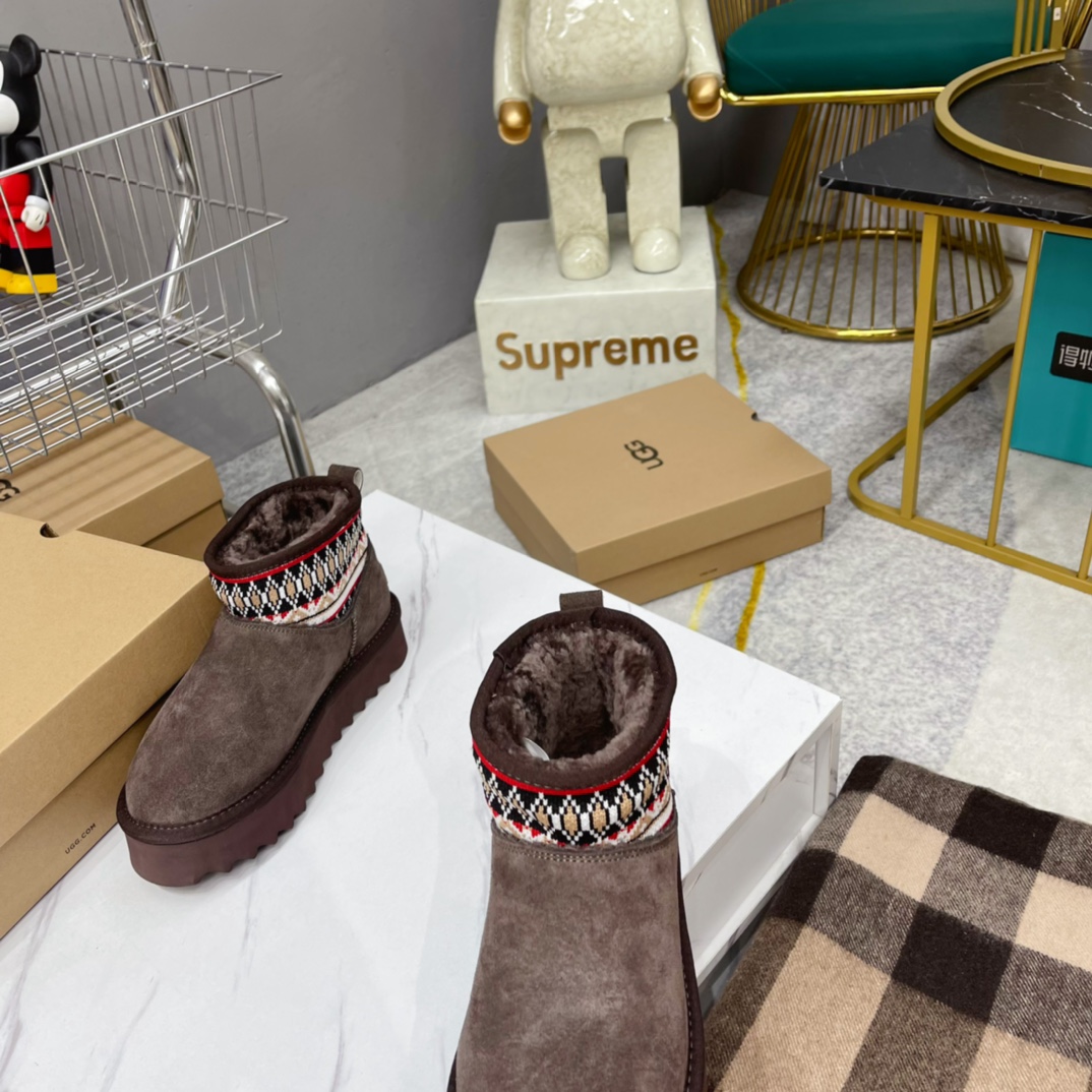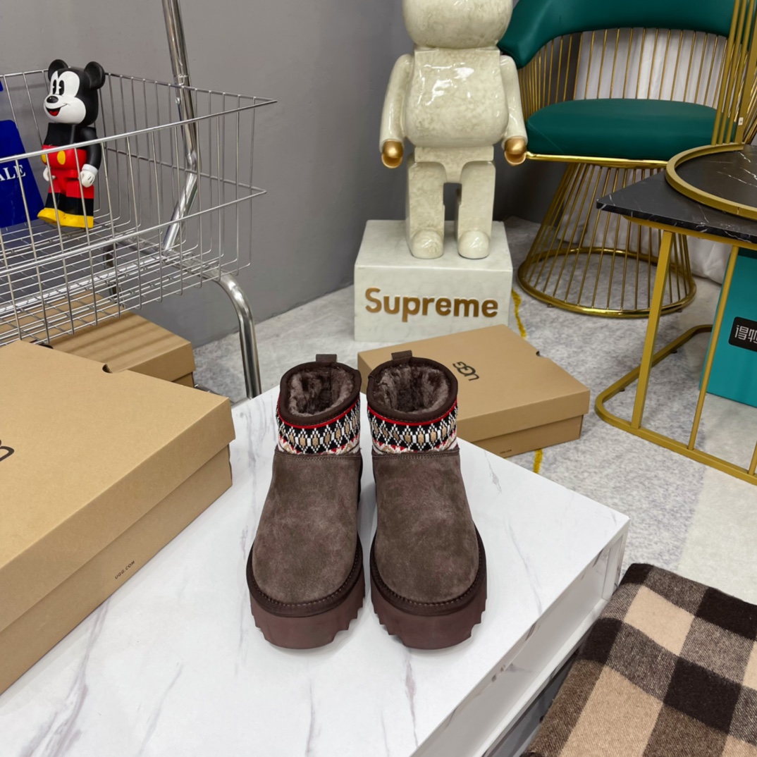 这款鞋子是AAAAA 1:1 质量 (非常棒). 使用了和原版一模一样的材料. 商标部分也保持了和UGG雪地靴一样. 图片拍摄是实物鞋子拍摄, 您所收到的实物保证和我们图片一模一样.