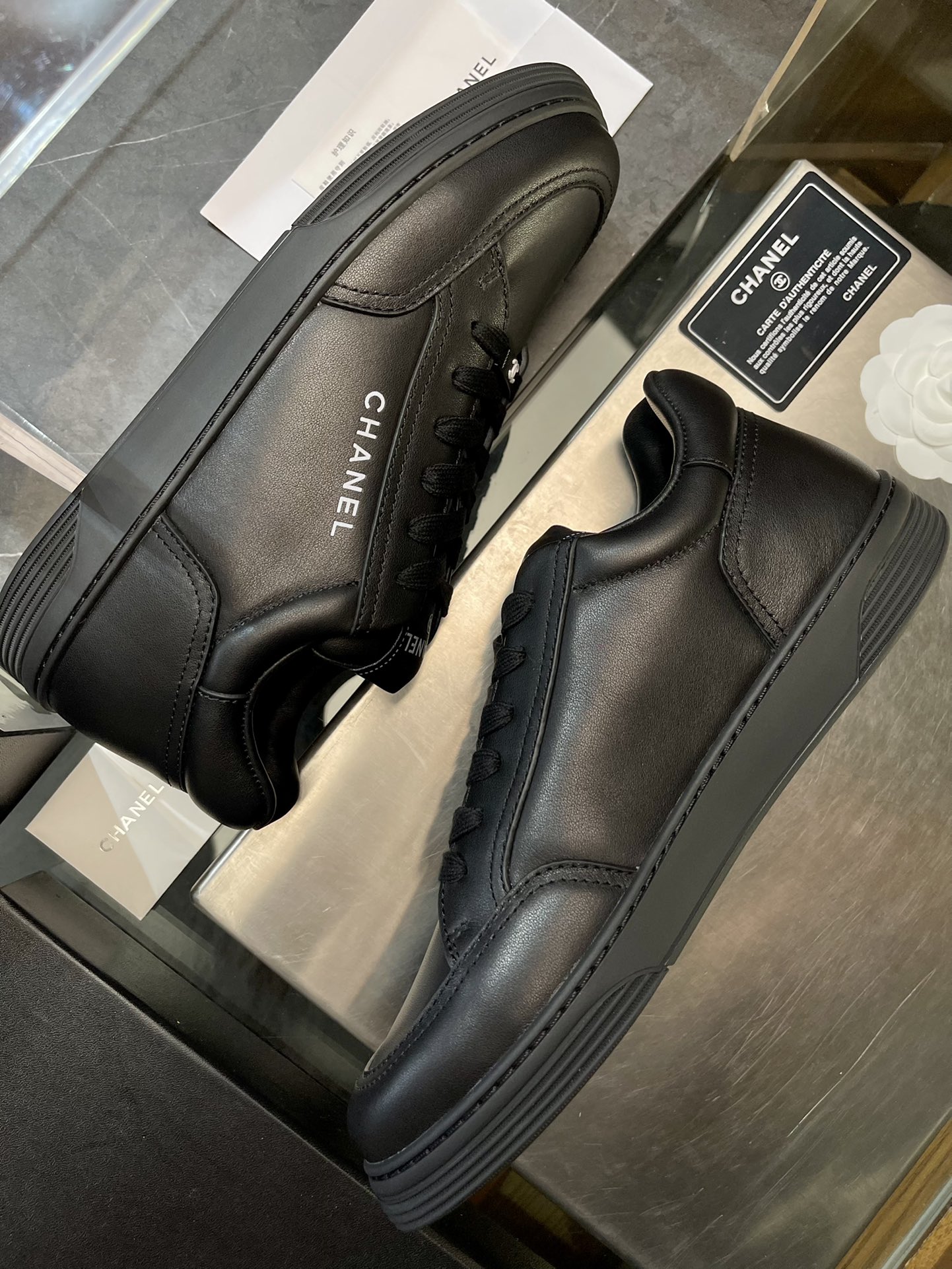 这款鞋子是AAAAA 1:1 质量 (非常棒). 使用了和原版一模一样的材料. 商标部分也保持了和香奈儿/Chanel一样. 图片拍摄是实物鞋子拍摄, 您所收到的实物保证和我们图片一模一样.