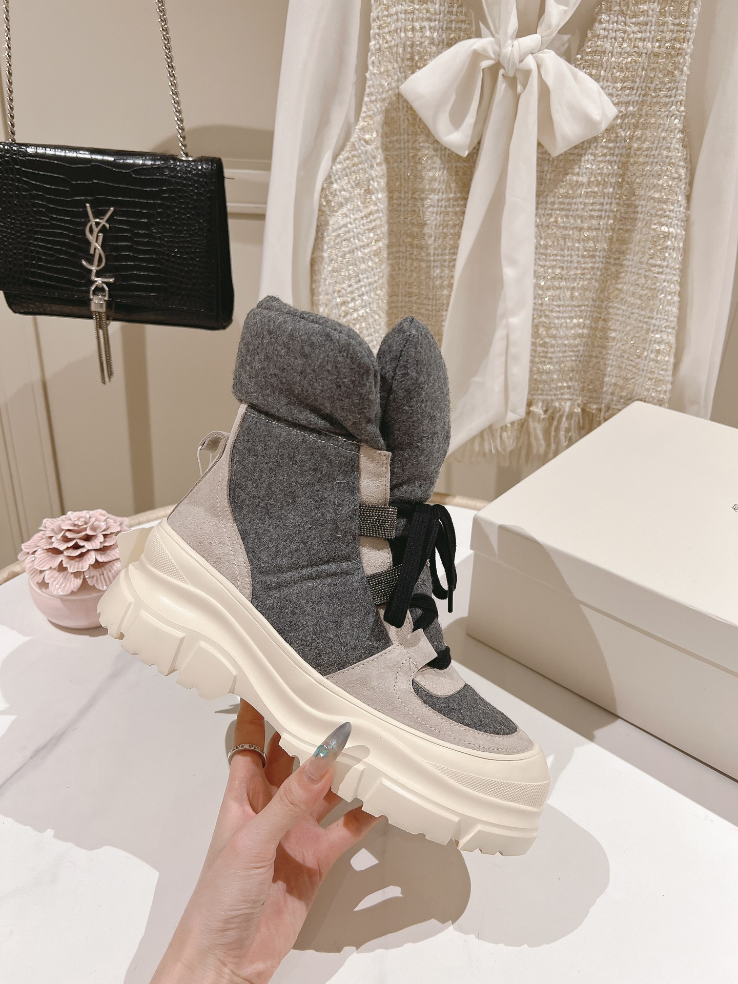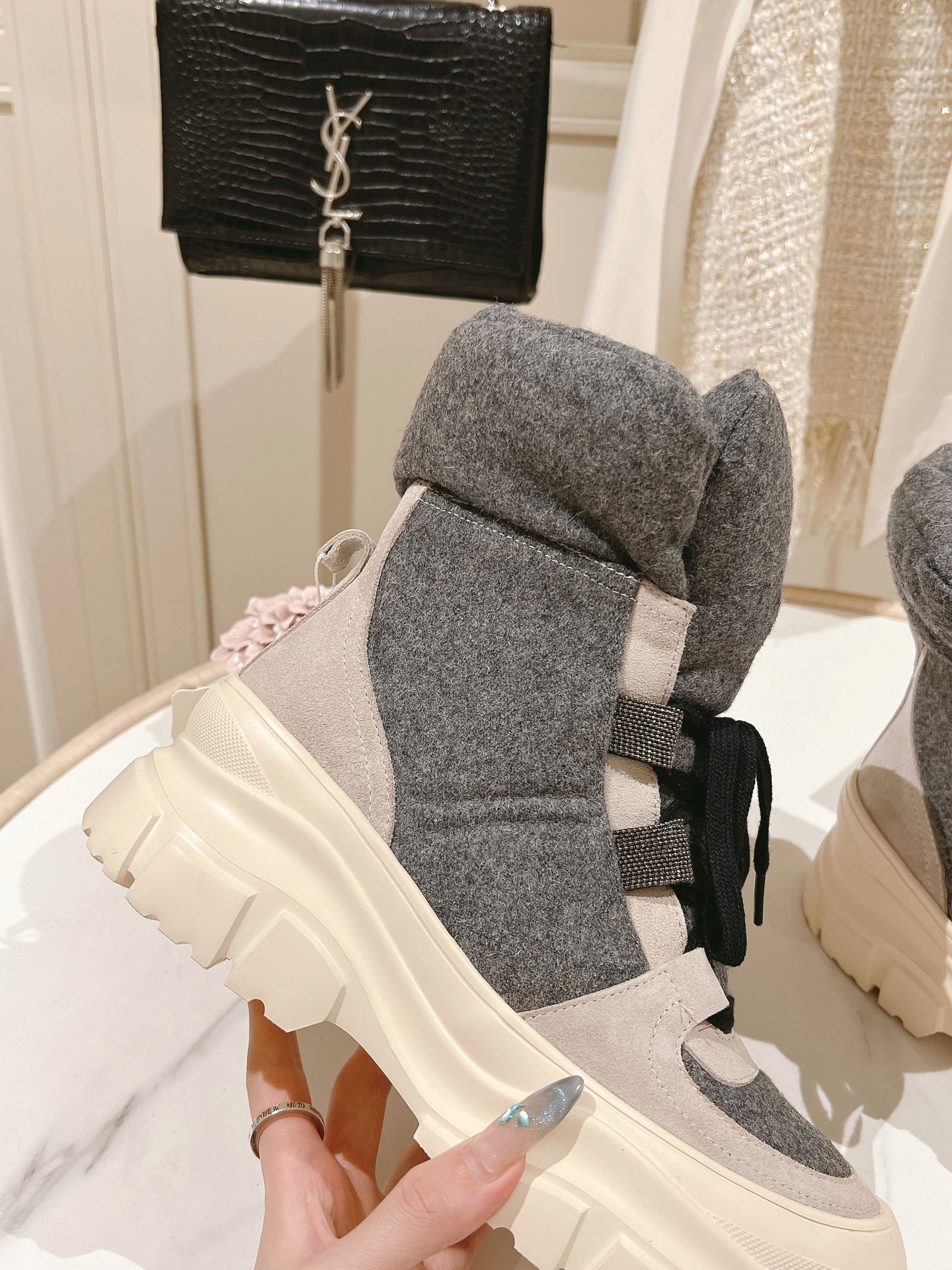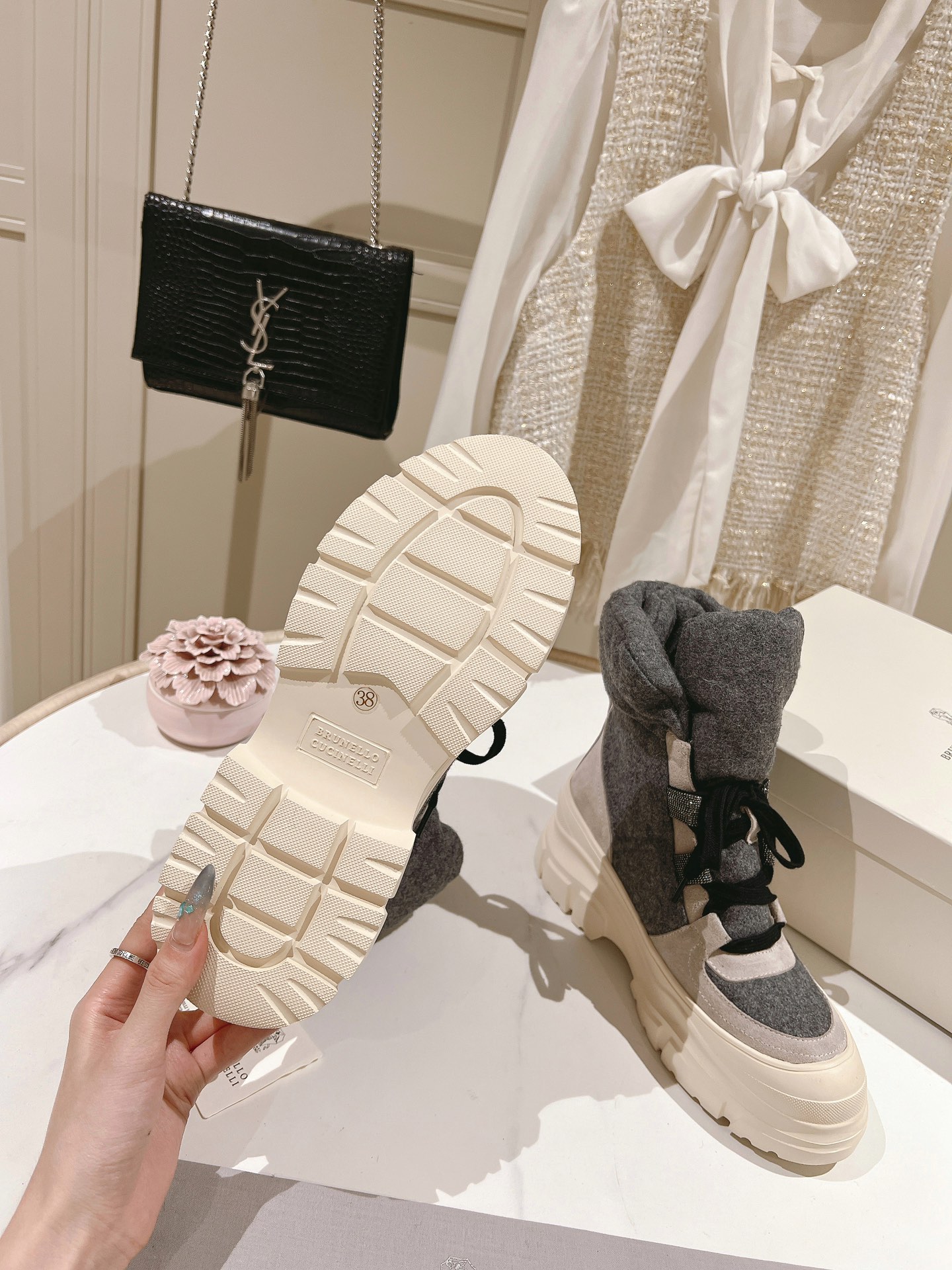 这款鞋子是AAAAA 1:1 质量 (非常棒). 使用了和原版一模一样的材料. 商标部分也保持了和Brunello Cucinelli一样. 图片拍摄是实物鞋子拍摄, 您所收到的实物保证和我们图片一模一样.