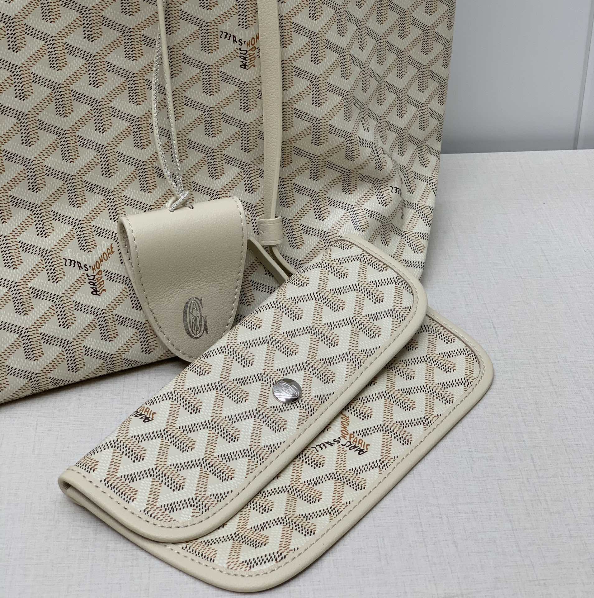 这款包包是AAAAA 1:1 质量 (非常棒). 使用了和原版一模一样的材料. 商标部分也保持了和Goyard一样. 图片拍摄是实物包包拍摄, 您所收到的实物保证和我们图片一模一样.