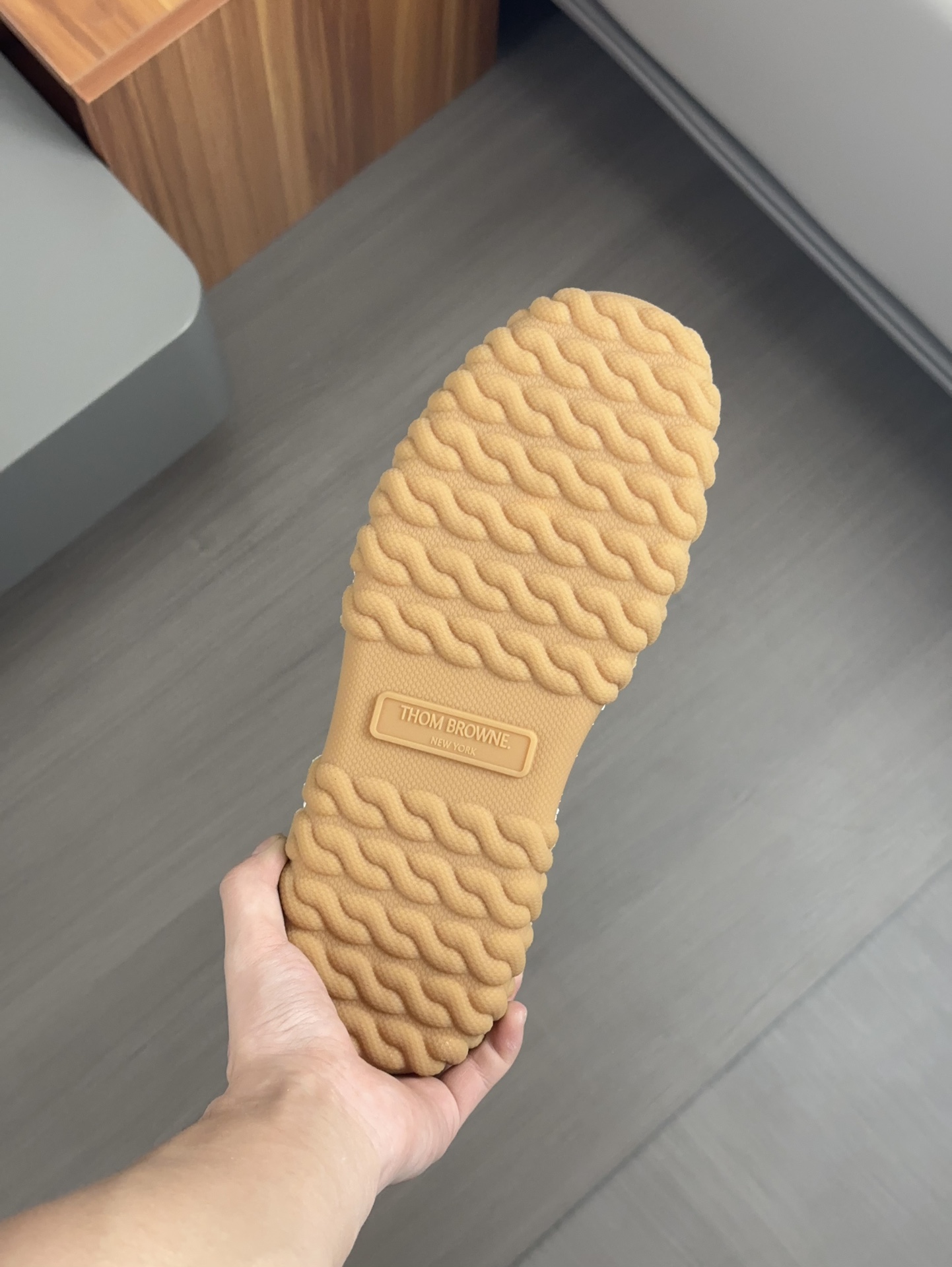 这款鞋子是AAAAA 1:1 质量 (非常棒). 使用了和原版一模一样的材料. 商标部分也保持了和汤姆布朗/Thom Browne一样. 图片拍摄是实物鞋子拍摄, 您所收到的实物保证和我们图片一模一样.