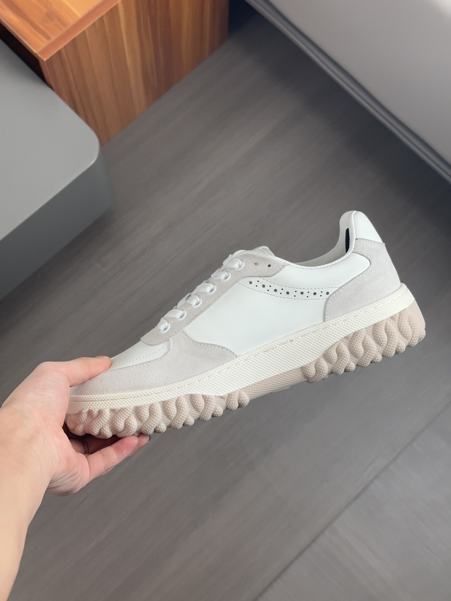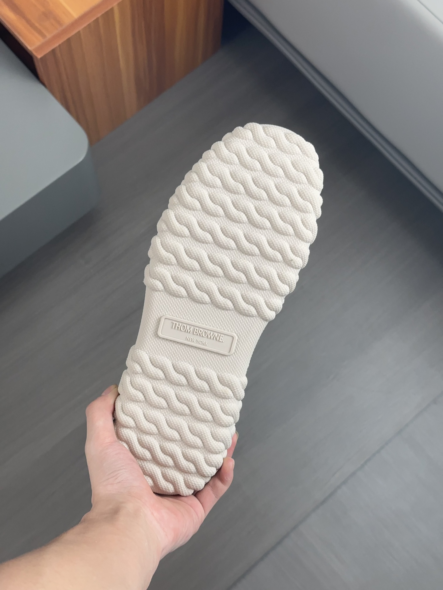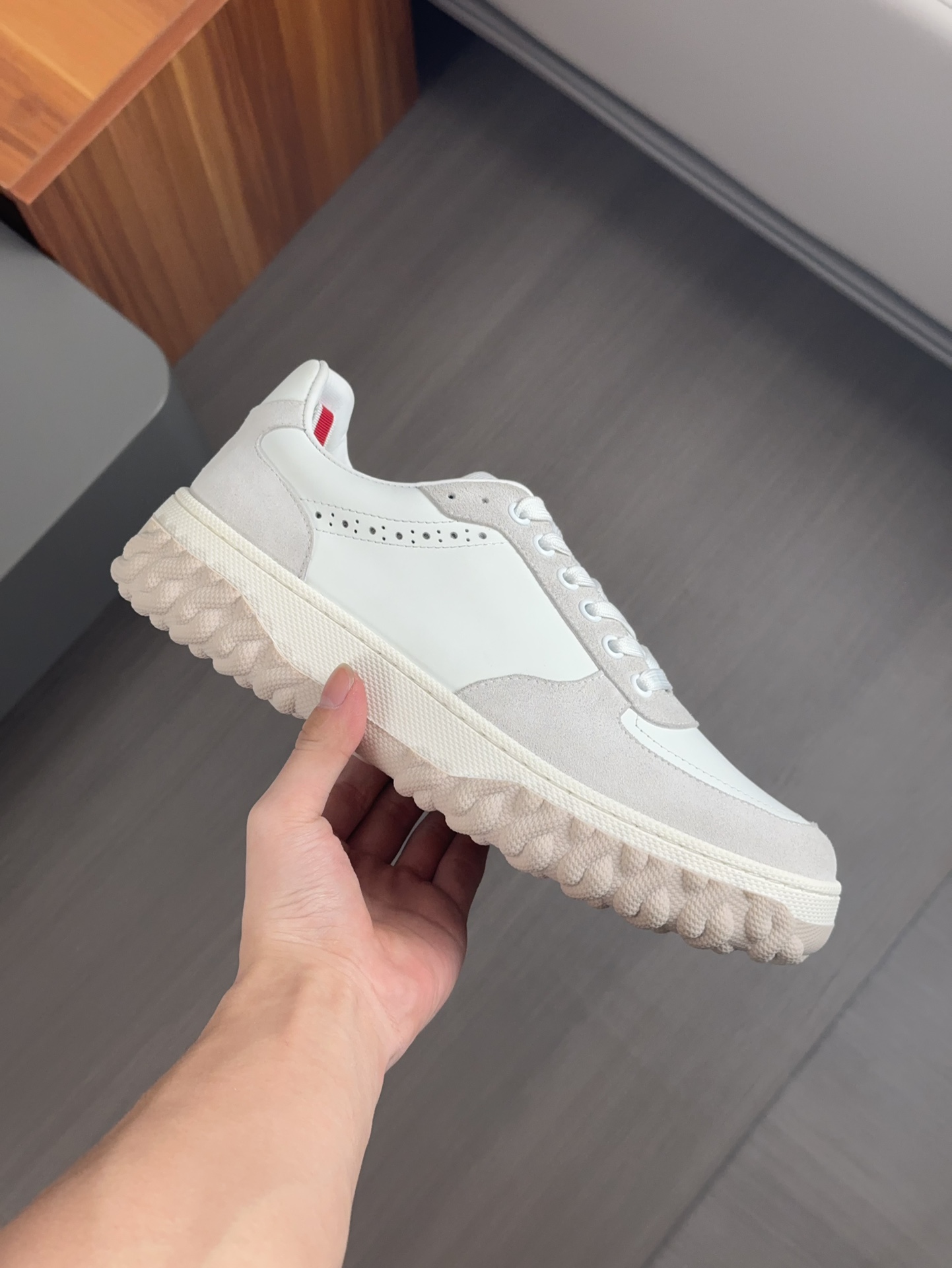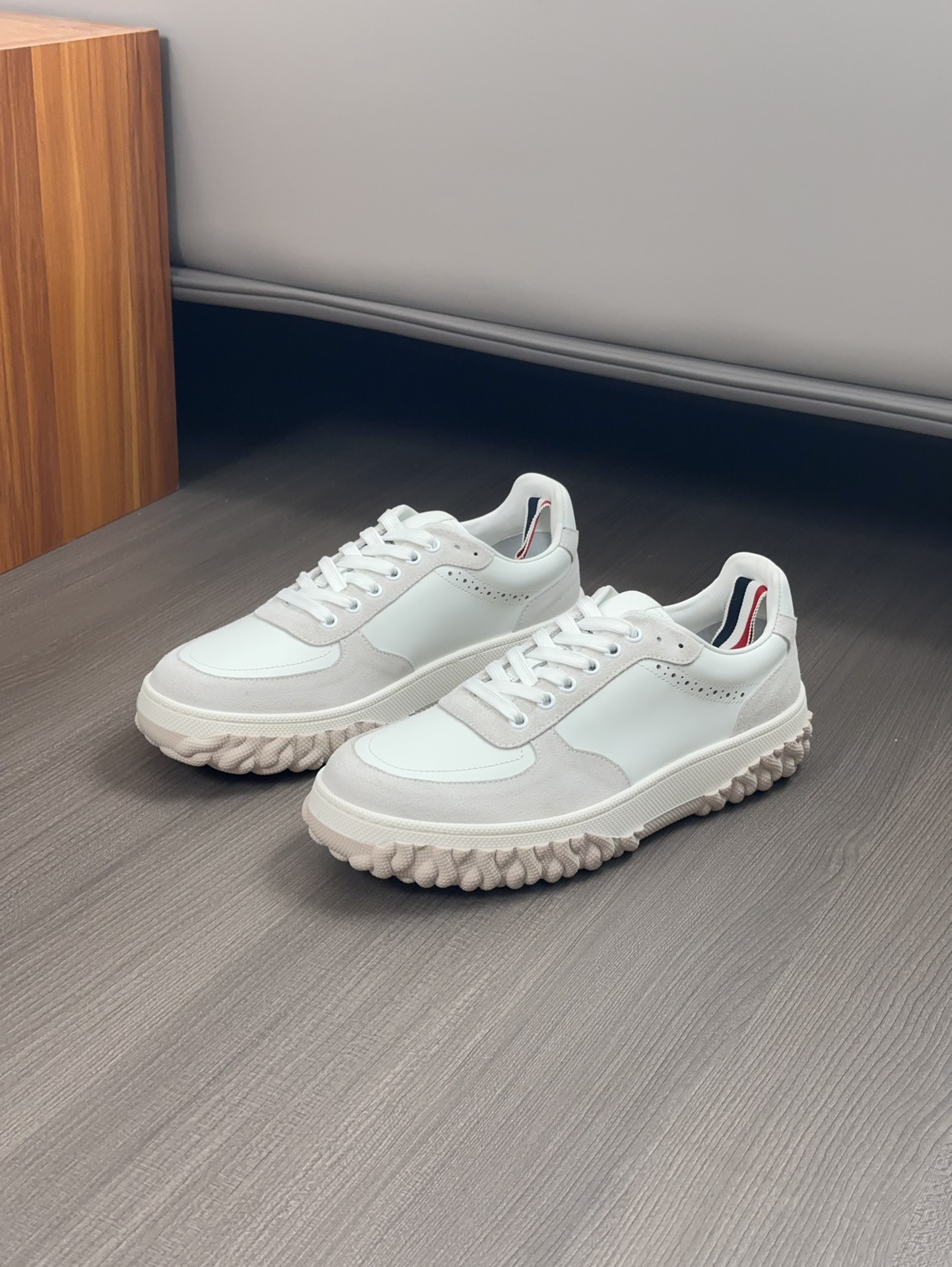 这款鞋子是AAAAA 1:1 质量 (非常棒). 使用了和原版一模一样的材料. 商标部分也保持了和汤姆布朗/Thom Browne一样. 图片拍摄是实物鞋子拍摄, 您所收到的实物保证和我们图片一模一样.