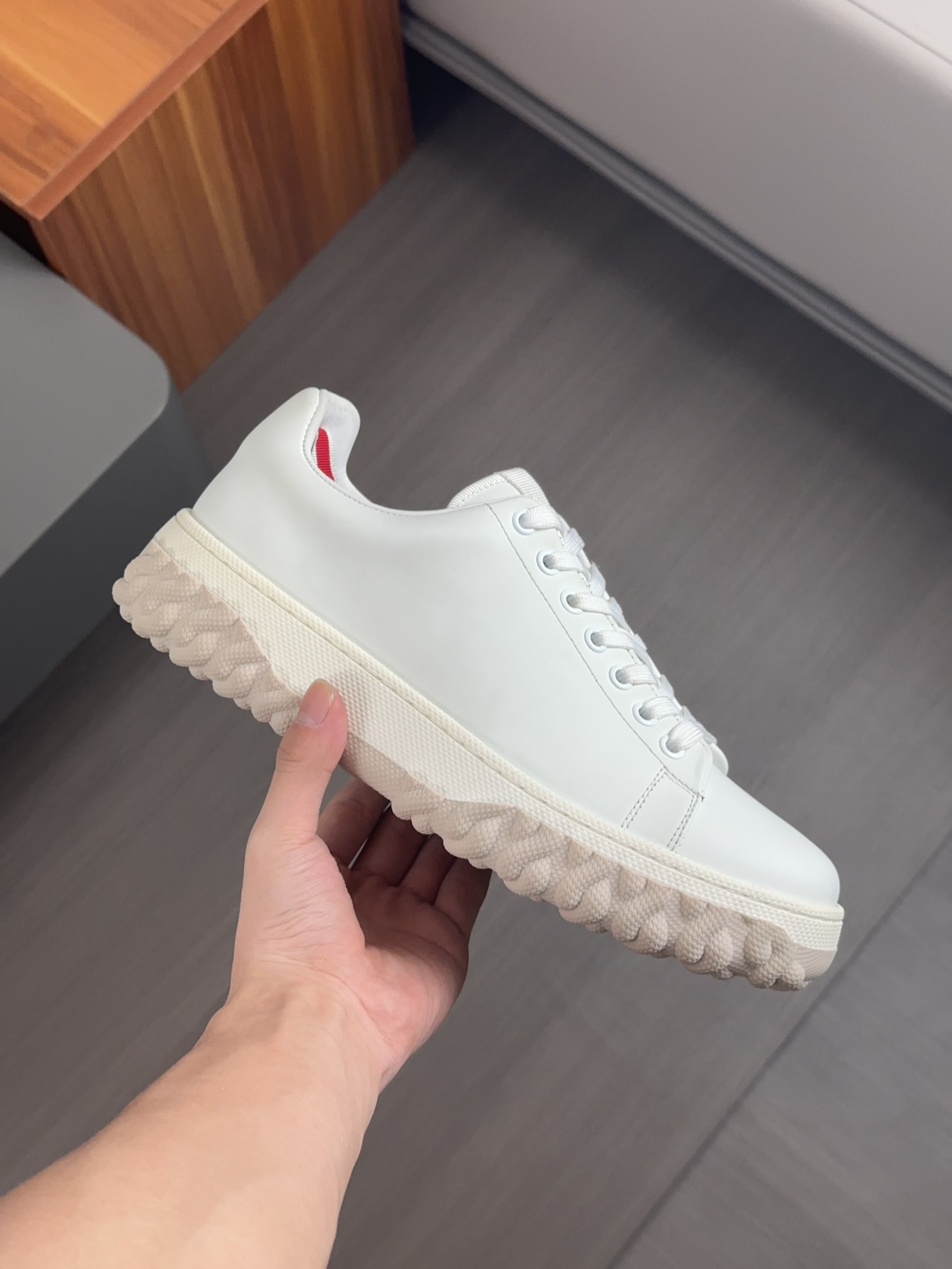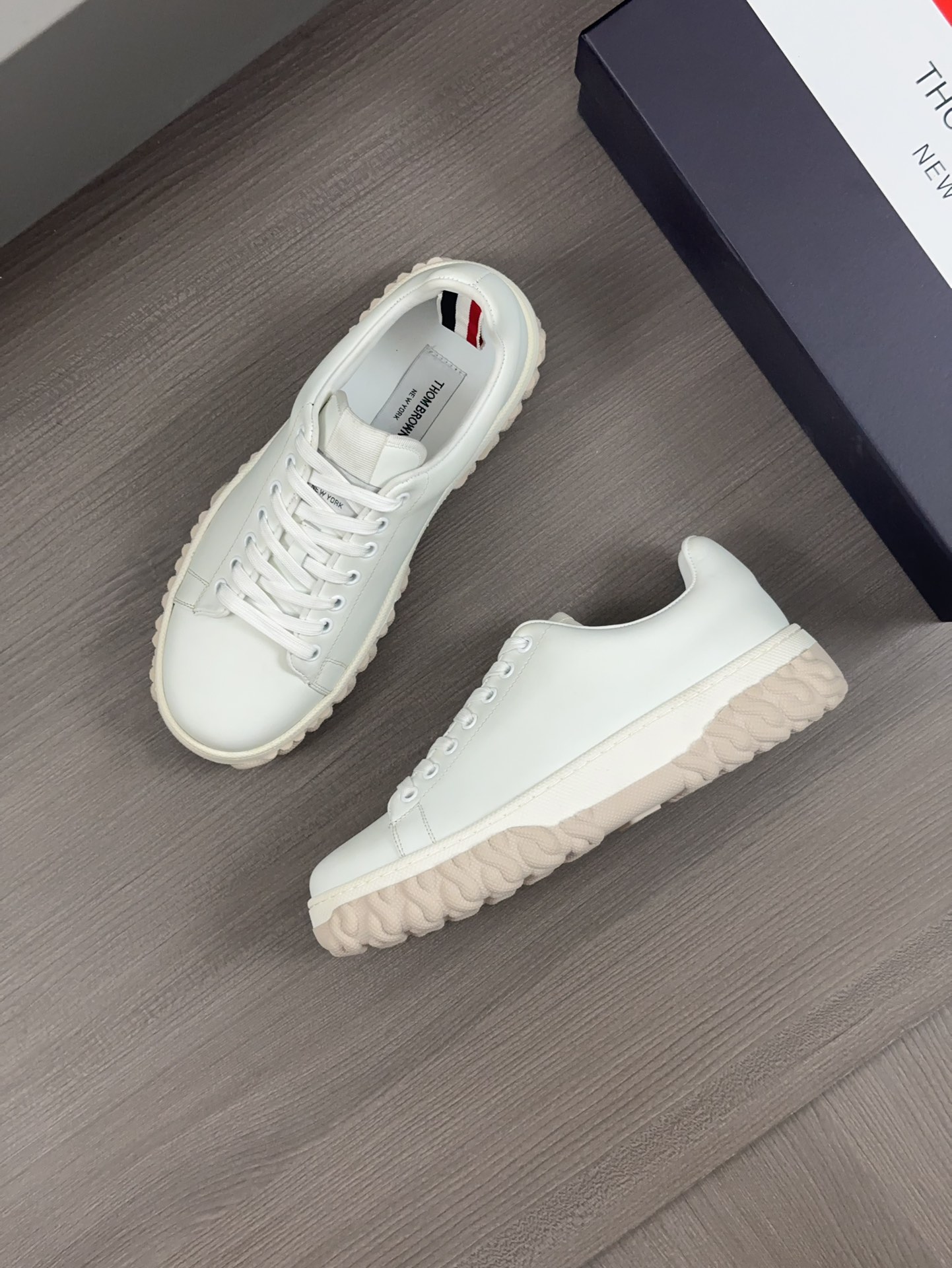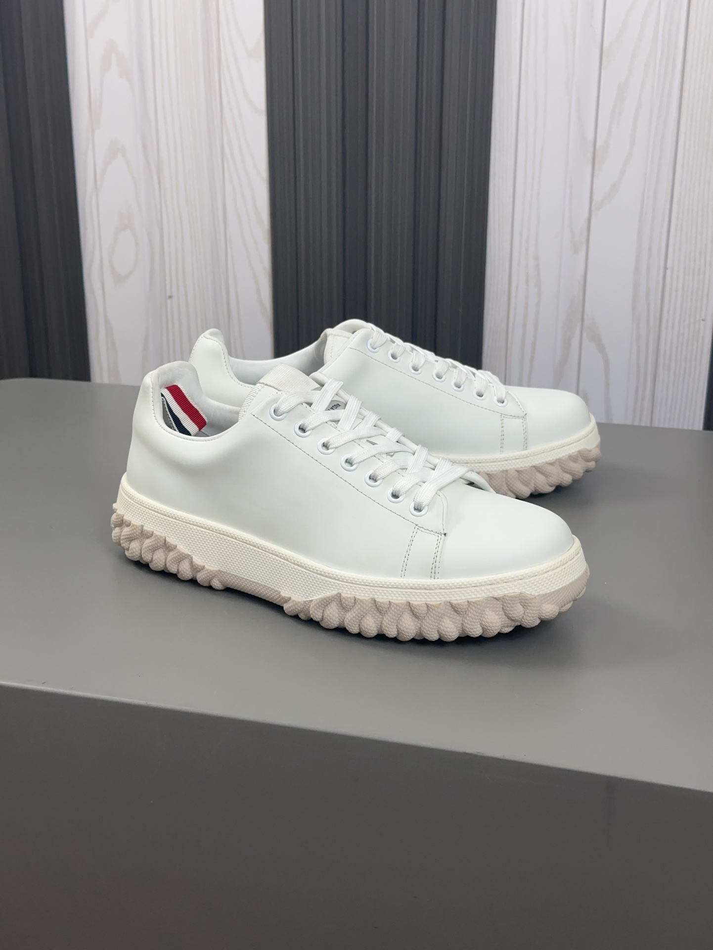这款鞋子是AAAAA 1:1 质量 (非常棒). 使用了和原版一模一样的材料. 商标部分也保持了和汤姆布朗/Thom Browne一样. 图片拍摄是实物鞋子拍摄, 您所收到的实物保证和我们图片一模一样.