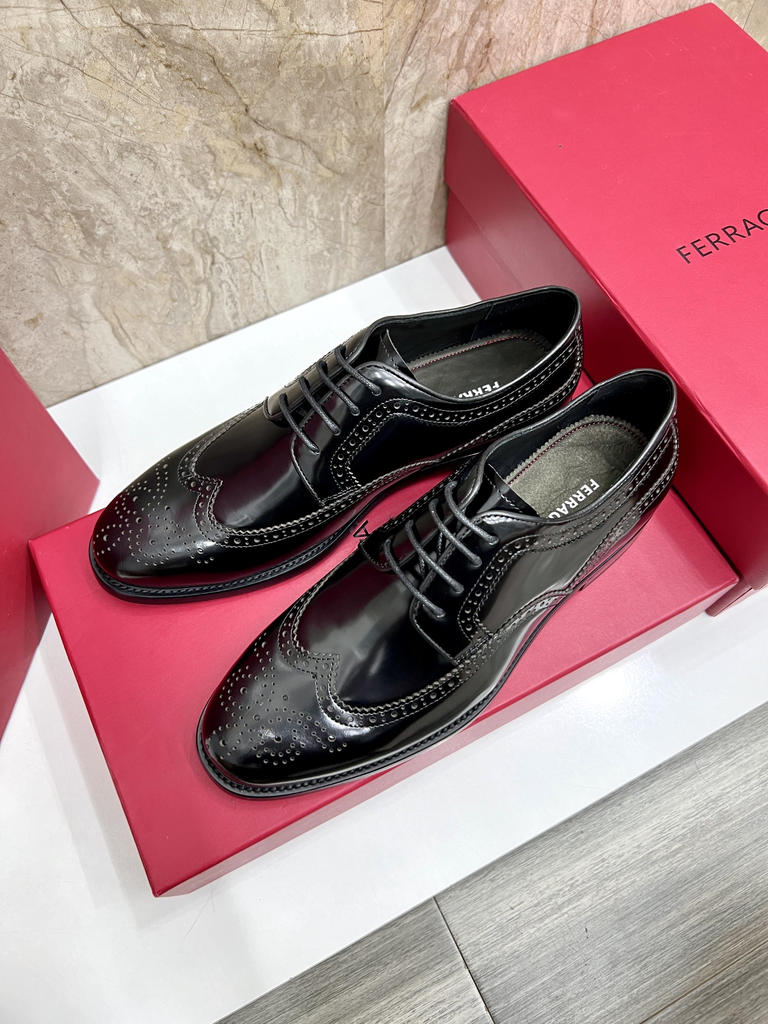 这款鞋子是AAAAA 1:1 质量 (非常棒). 使用了和原版一模一样的材料. 商标部分也保持了和菲拉格慕/Salvatore Ferragamo一样. 图片拍摄是实物鞋子拍摄, 您所收到的实物保证和我们图片一模一样.