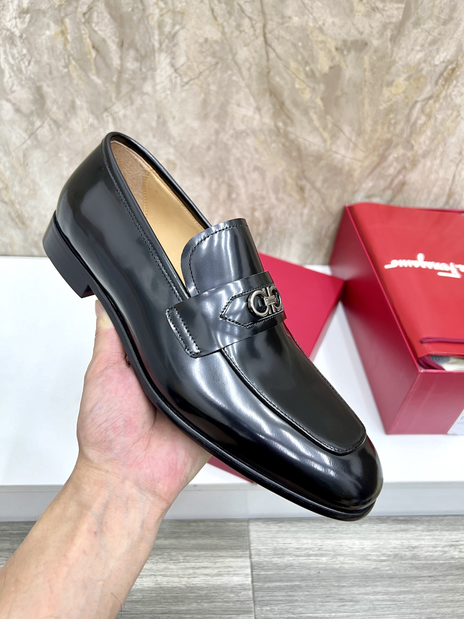 这款鞋子是AAAAA 1:1 质量 (非常棒). 使用了和原版一模一样的材料. 商标部分也保持了和菲拉格慕/Salvatore Ferragamo一样. 图片拍摄是实物鞋子拍摄, 您所收到的实物保证和我们图片一模一样.