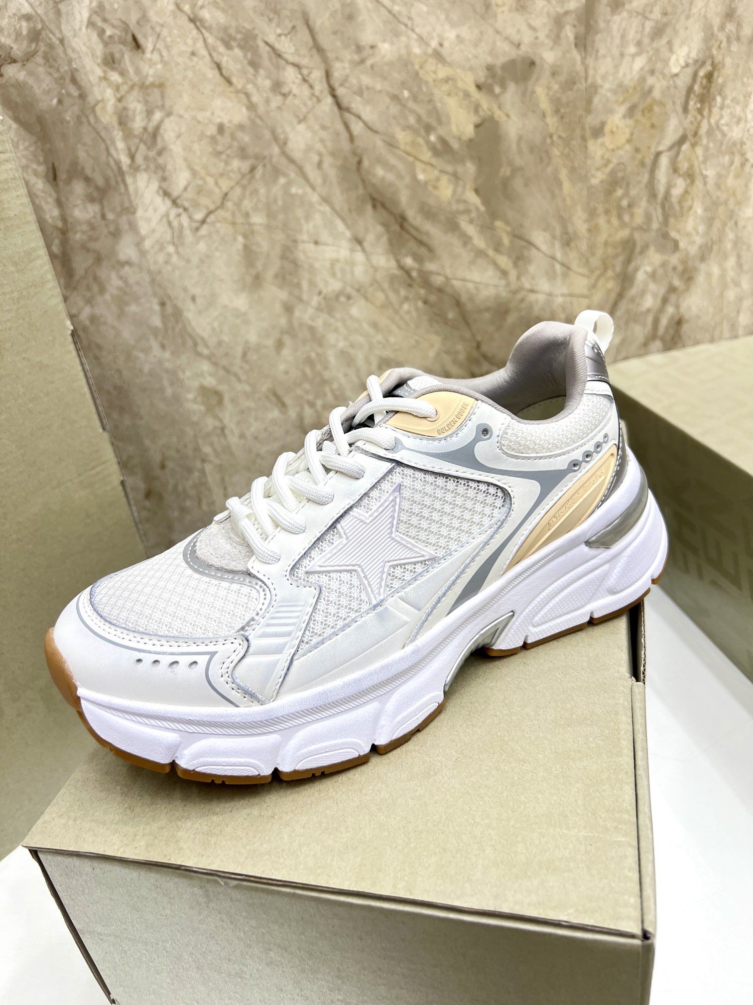 这款鞋子是AAAAA 1:1 质量 (非常棒). 使用了和原版一模一样的材料. 商标部分也保持了和Golden Goose一样. 图片拍摄是实物鞋子拍摄, 您所收到的实物保证和我们图片一模一样.