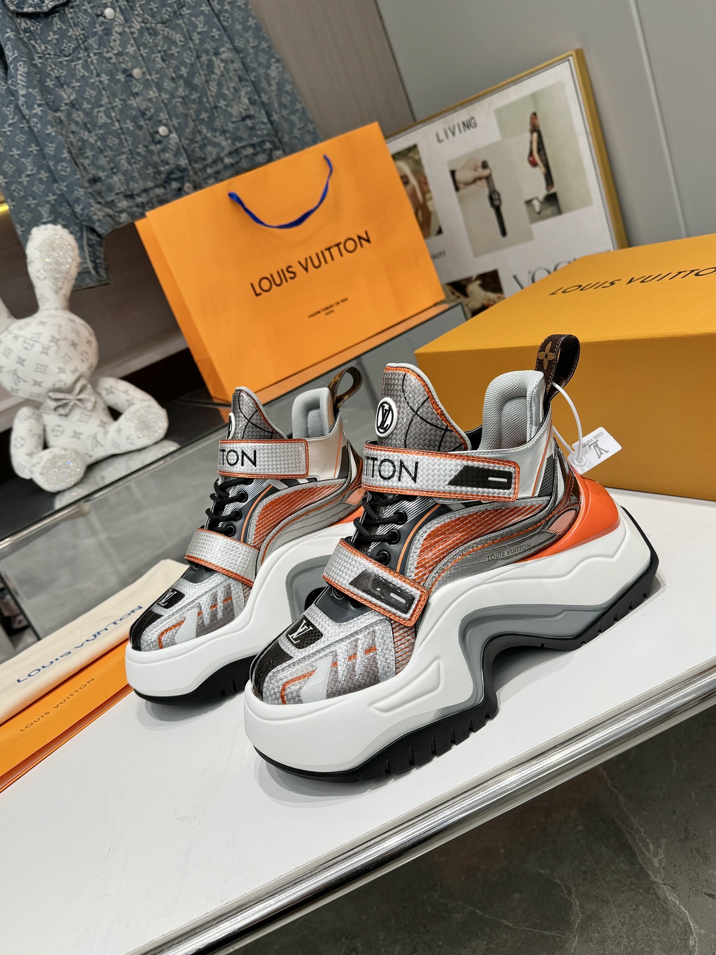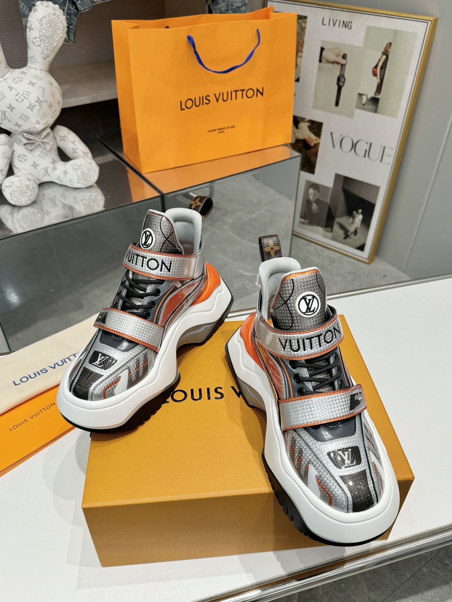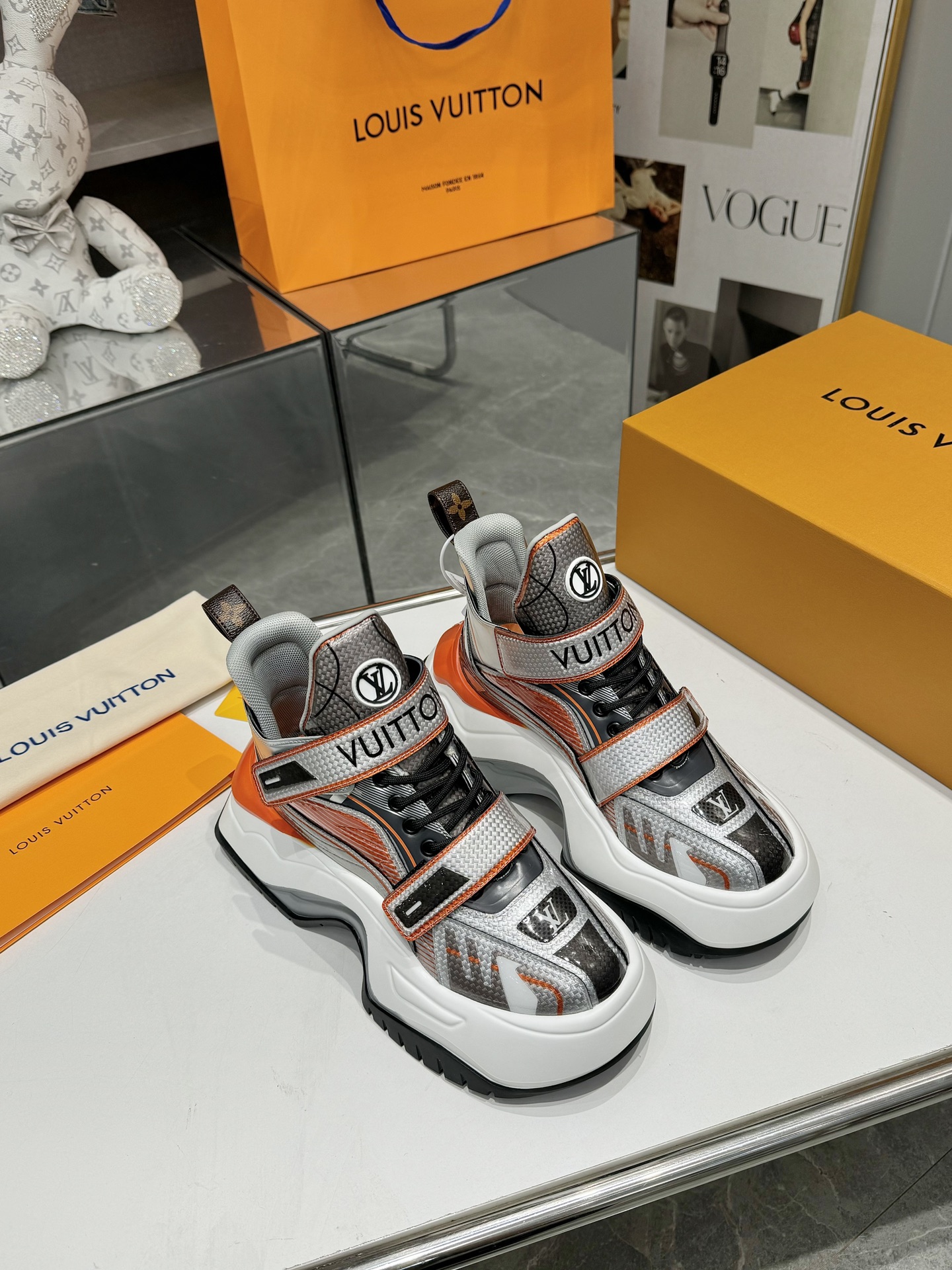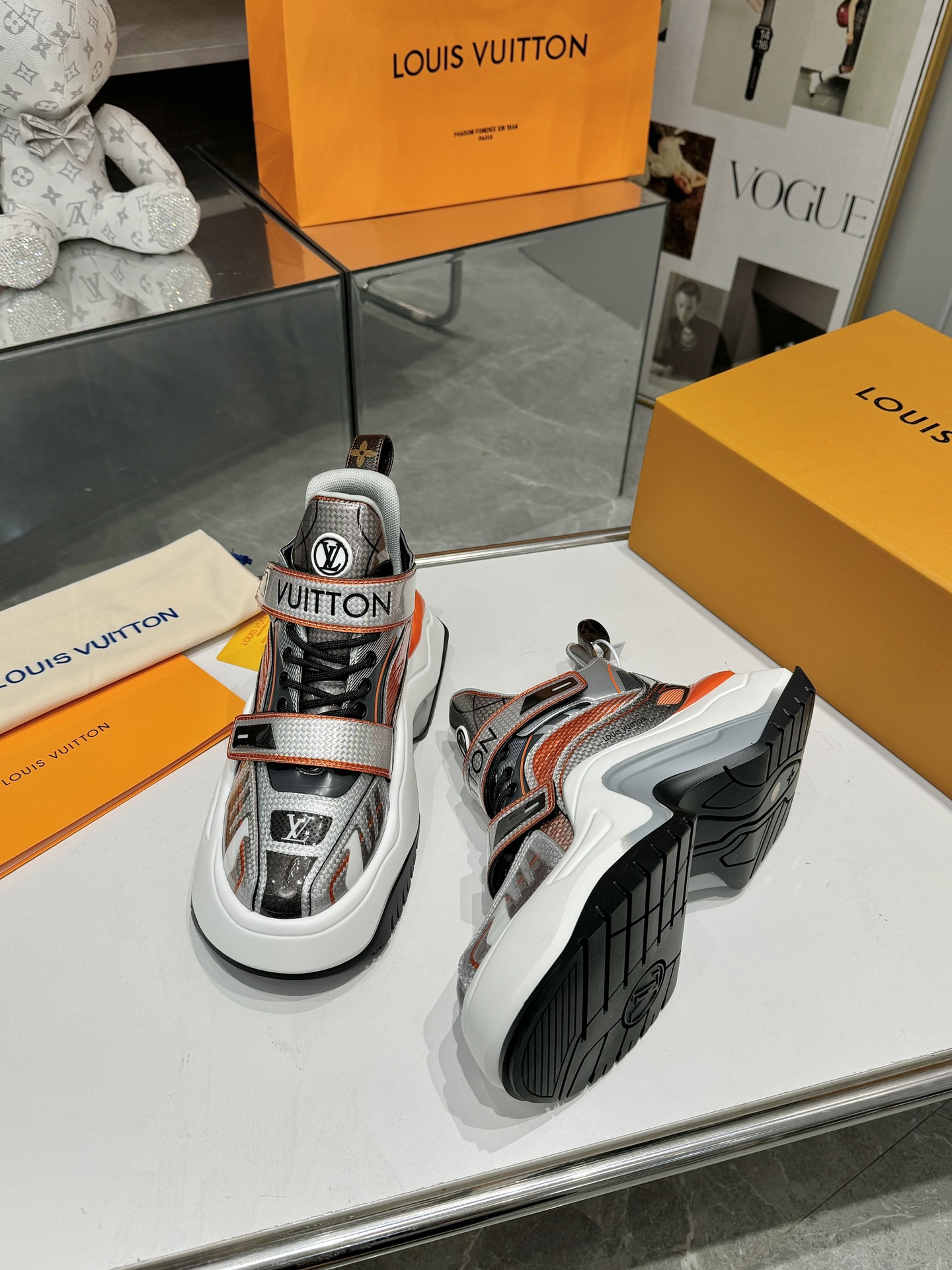 这款鞋子是AAAAA 1:1 质量 (非常棒). 使用了和原版一模一样的材料. 商标部分也保持了和路易威登/Louis Vuitton一样. 图片拍摄是实物鞋子拍摄, 您所收到的实物保证和我们图片一模一样.