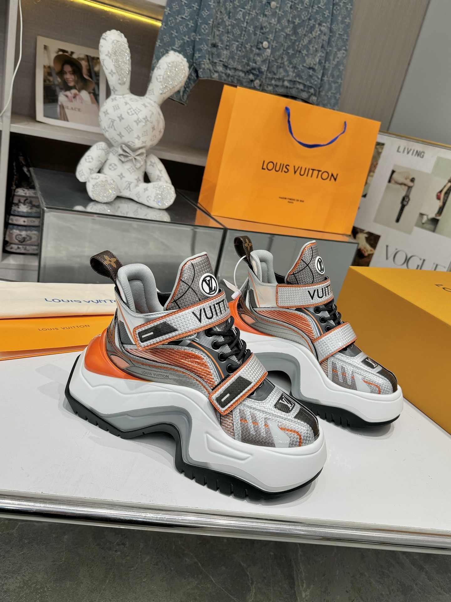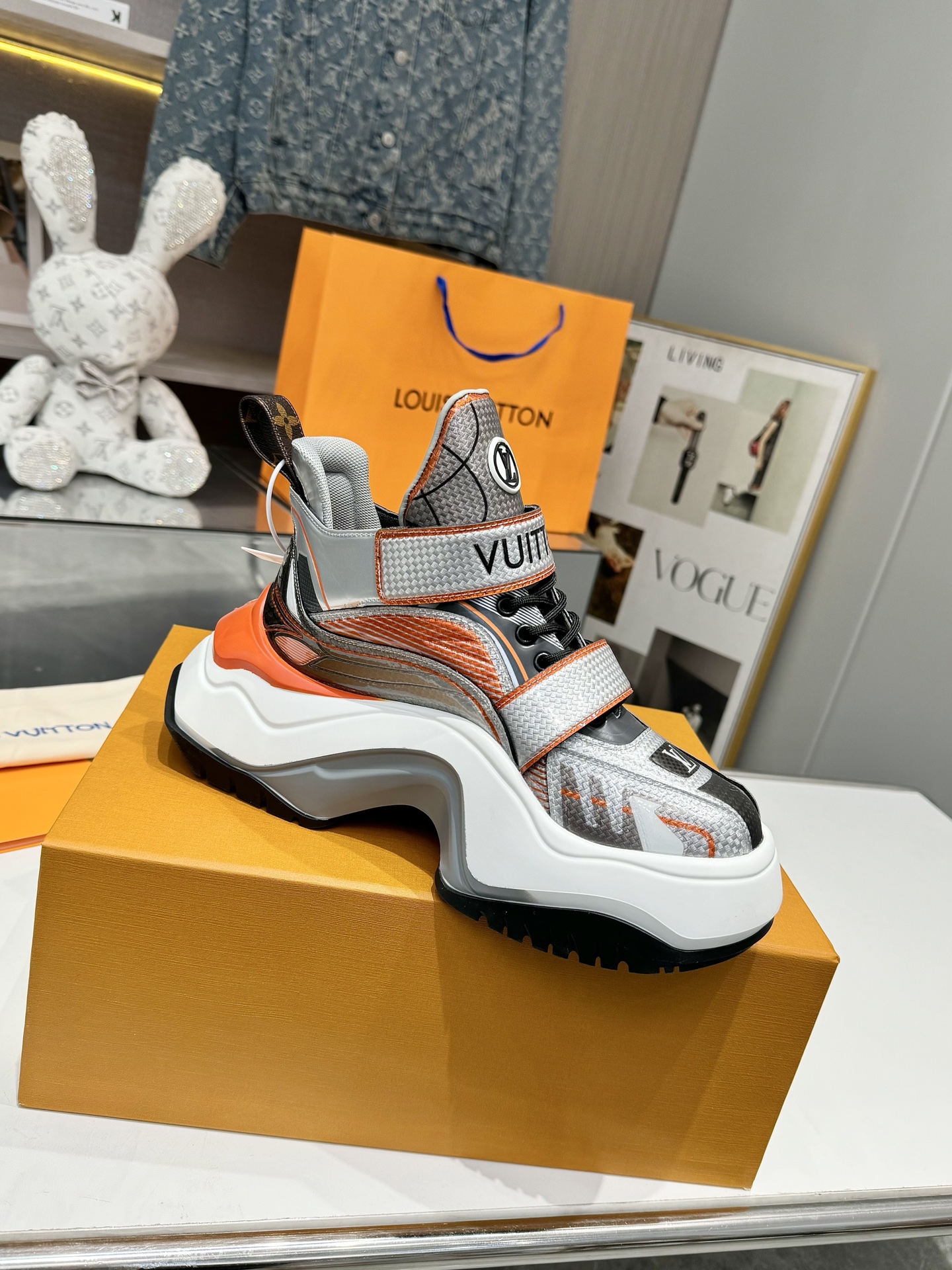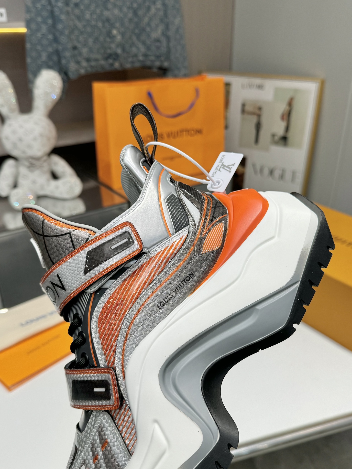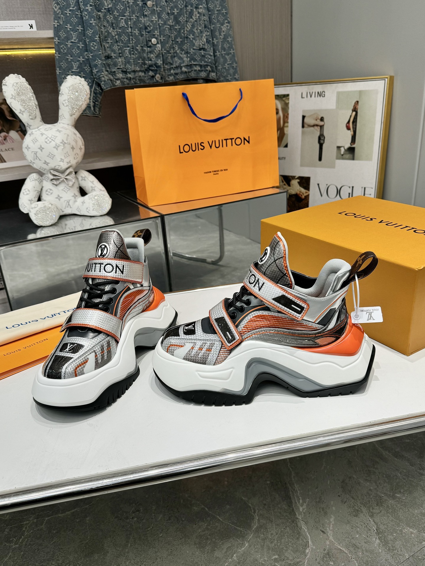 这款鞋子是AAAAA 1:1 质量 (非常棒). 使用了和原版一模一样的材料. 商标部分也保持了和路易威登/Louis Vuitton一样. 图片拍摄是实物鞋子拍摄, 您所收到的实物保证和我们图片一模一样.