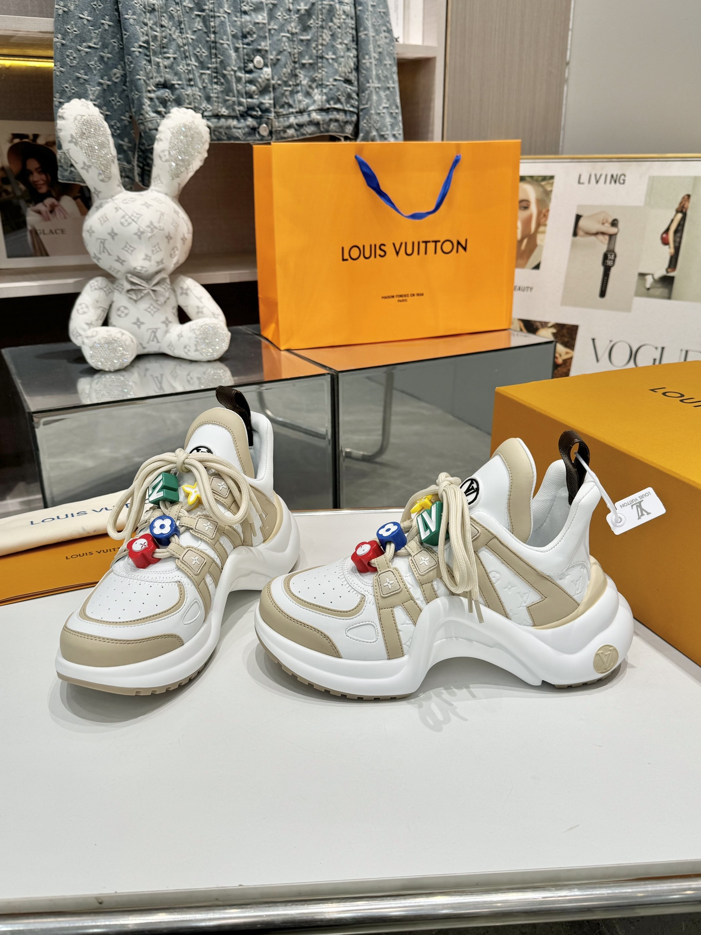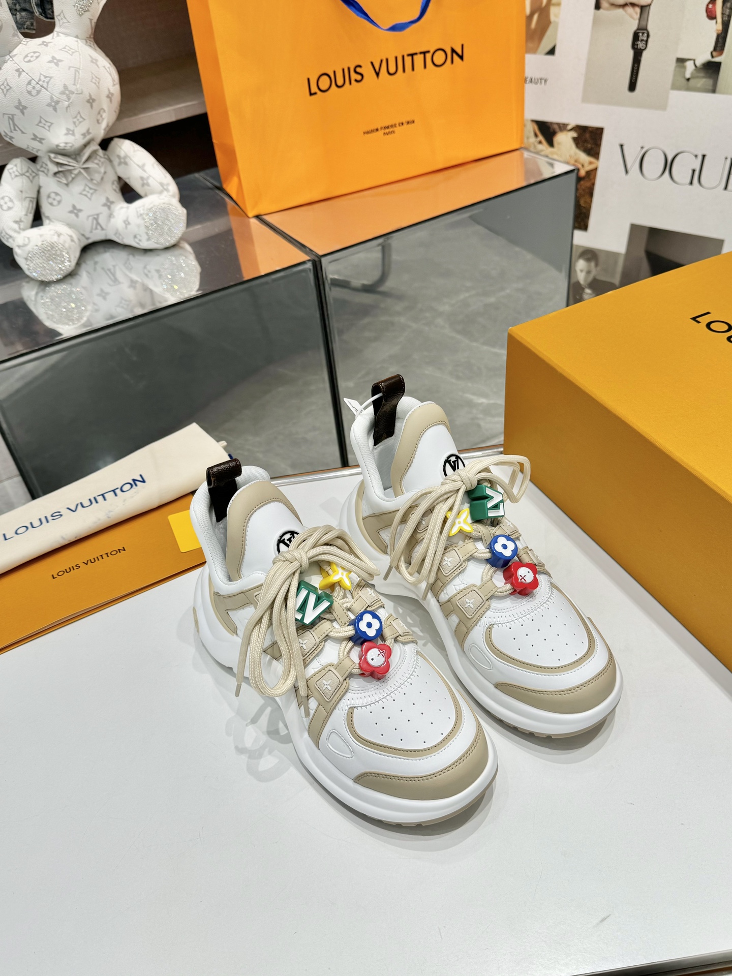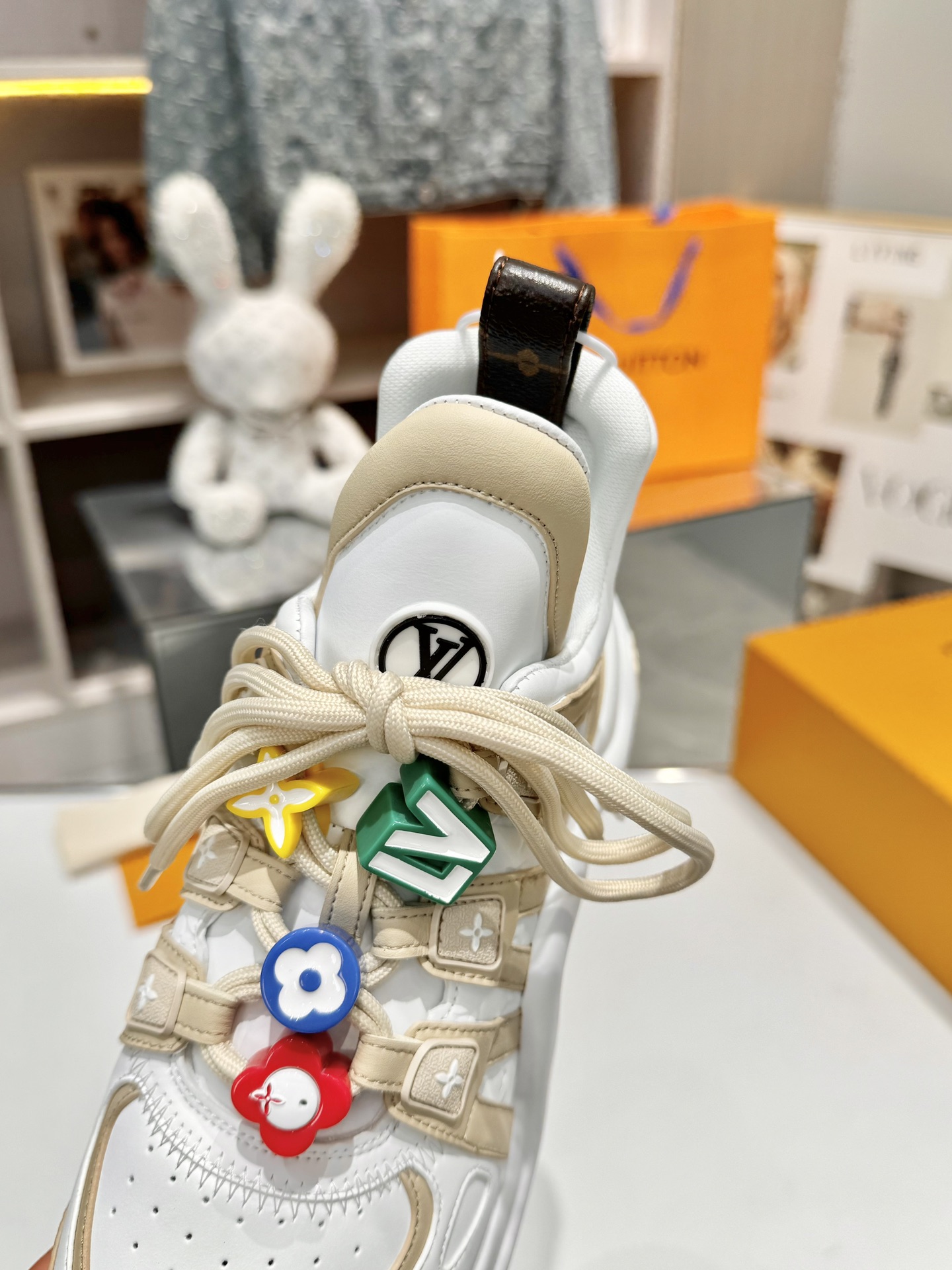 这款鞋子是AAAAA 1:1 质量 (非常棒). 使用了和原版一模一样的材料. 商标部分也保持了和路易威登/Louis Vuitton一样. 图片拍摄是实物鞋子拍摄, 您所收到的实物保证和我们图片一模一样.