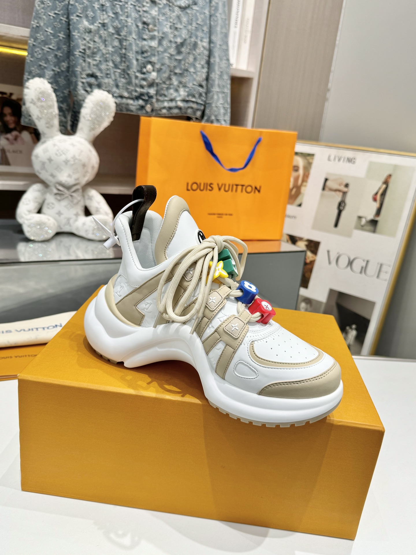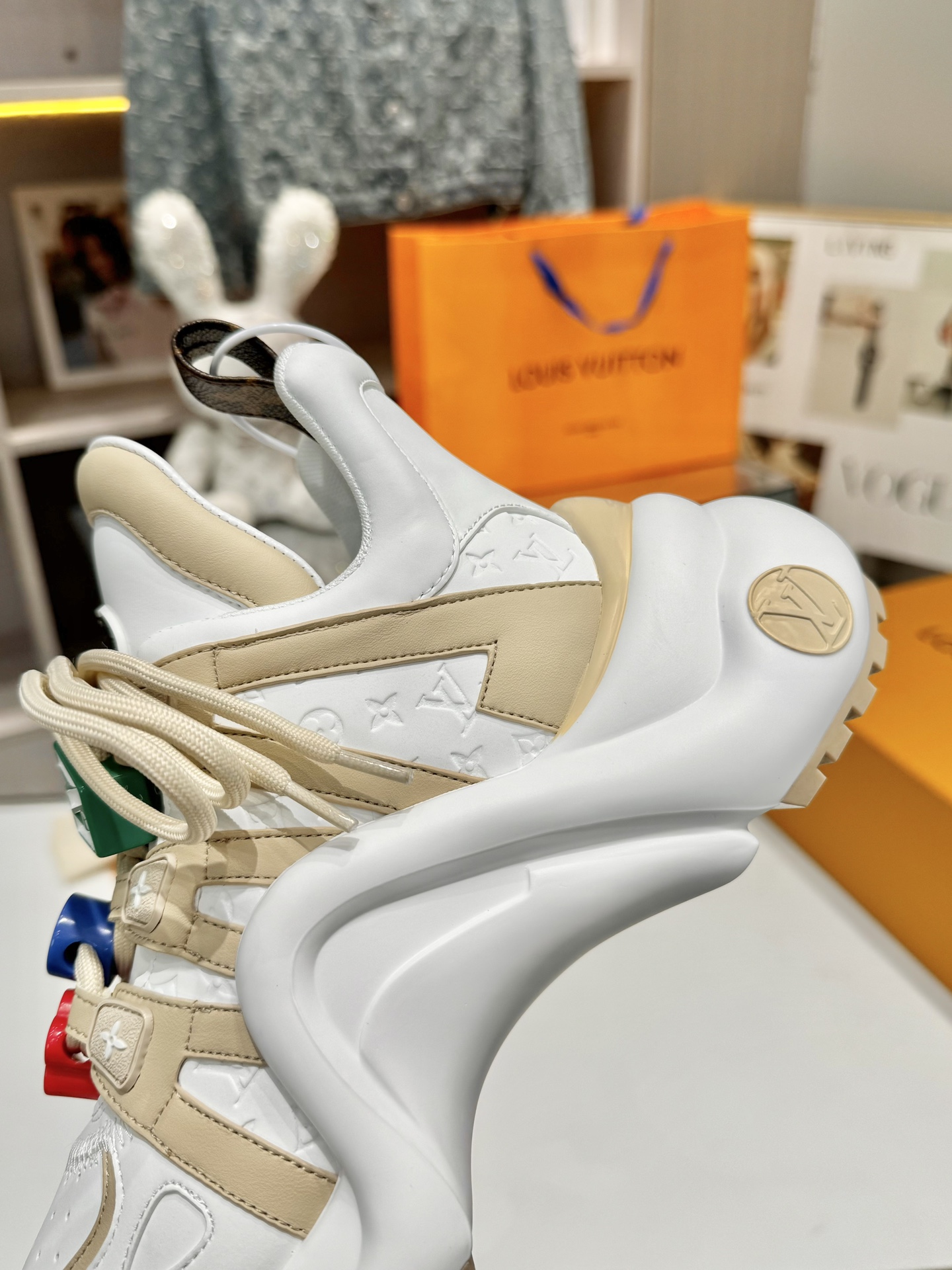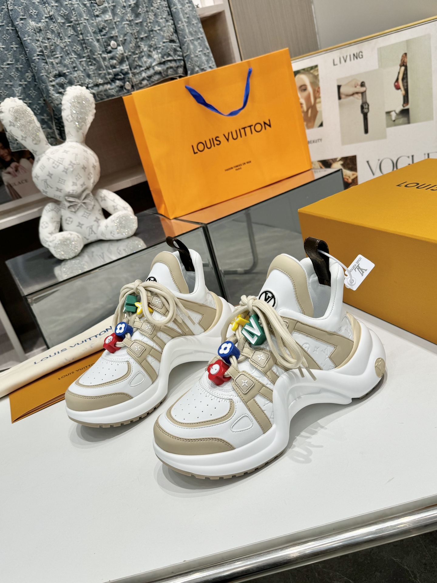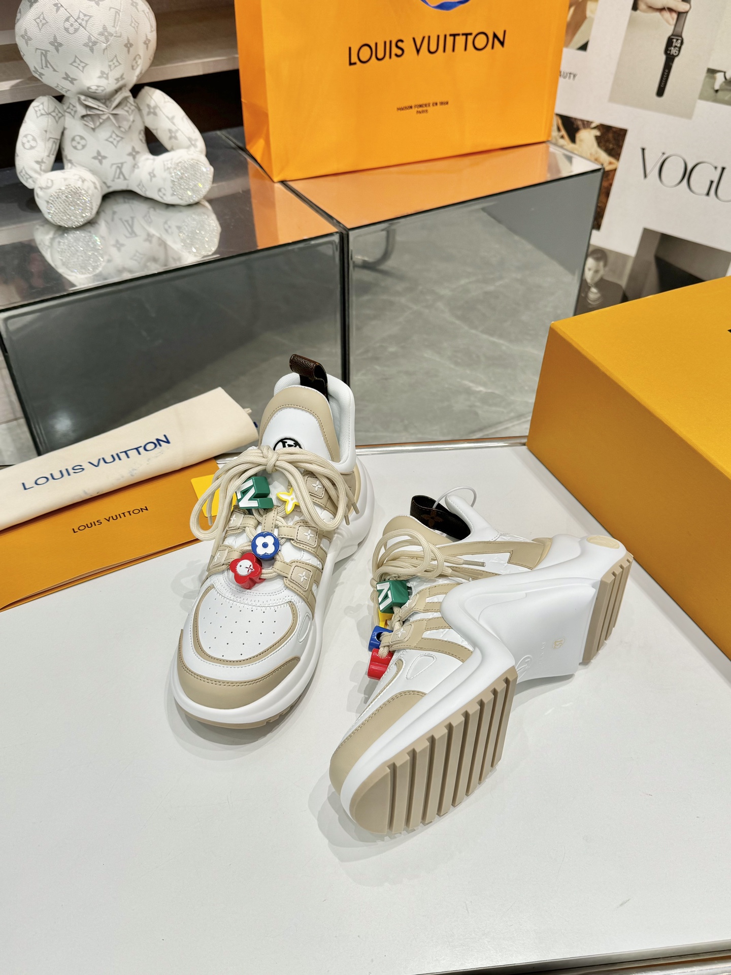 这款鞋子是AAAAA 1:1 质量 (非常棒). 使用了和原版一模一样的材料. 商标部分也保持了和路易威登/Louis Vuitton一样. 图片拍摄是实物鞋子拍摄, 您所收到的实物保证和我们图片一模一样.
