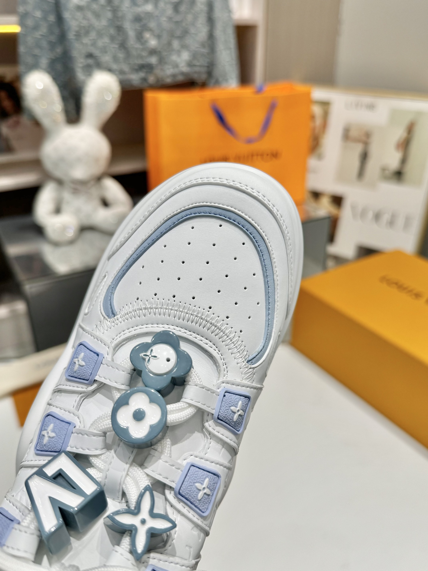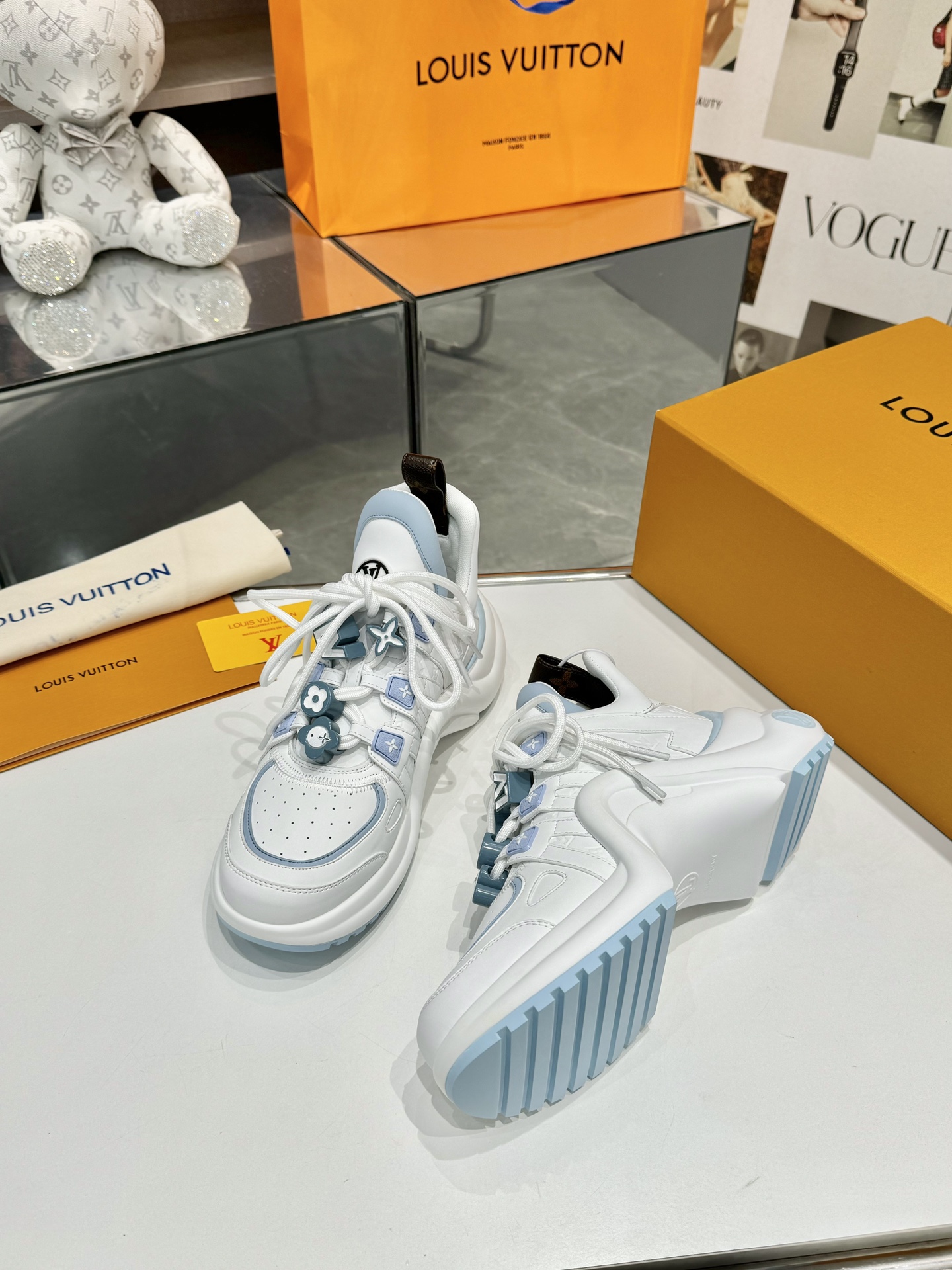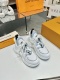 这款鞋子是AAAAA 1:1 质量 (非常棒). 使用了和原版一模一样的材料. 商标部分也保持了和路易威登/Louis Vuitton一样. 图片拍摄是实物鞋子拍摄, 您所收到的实物保证和我们图片一模一样.