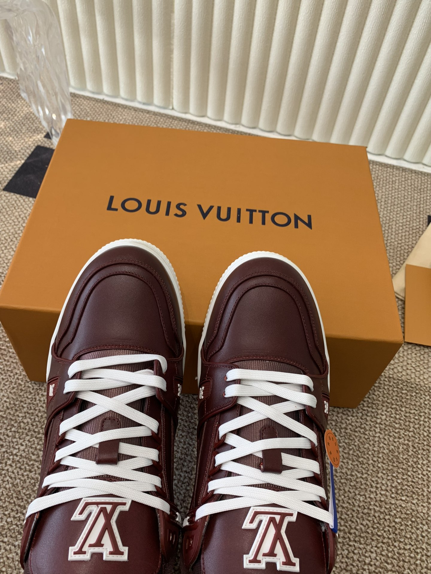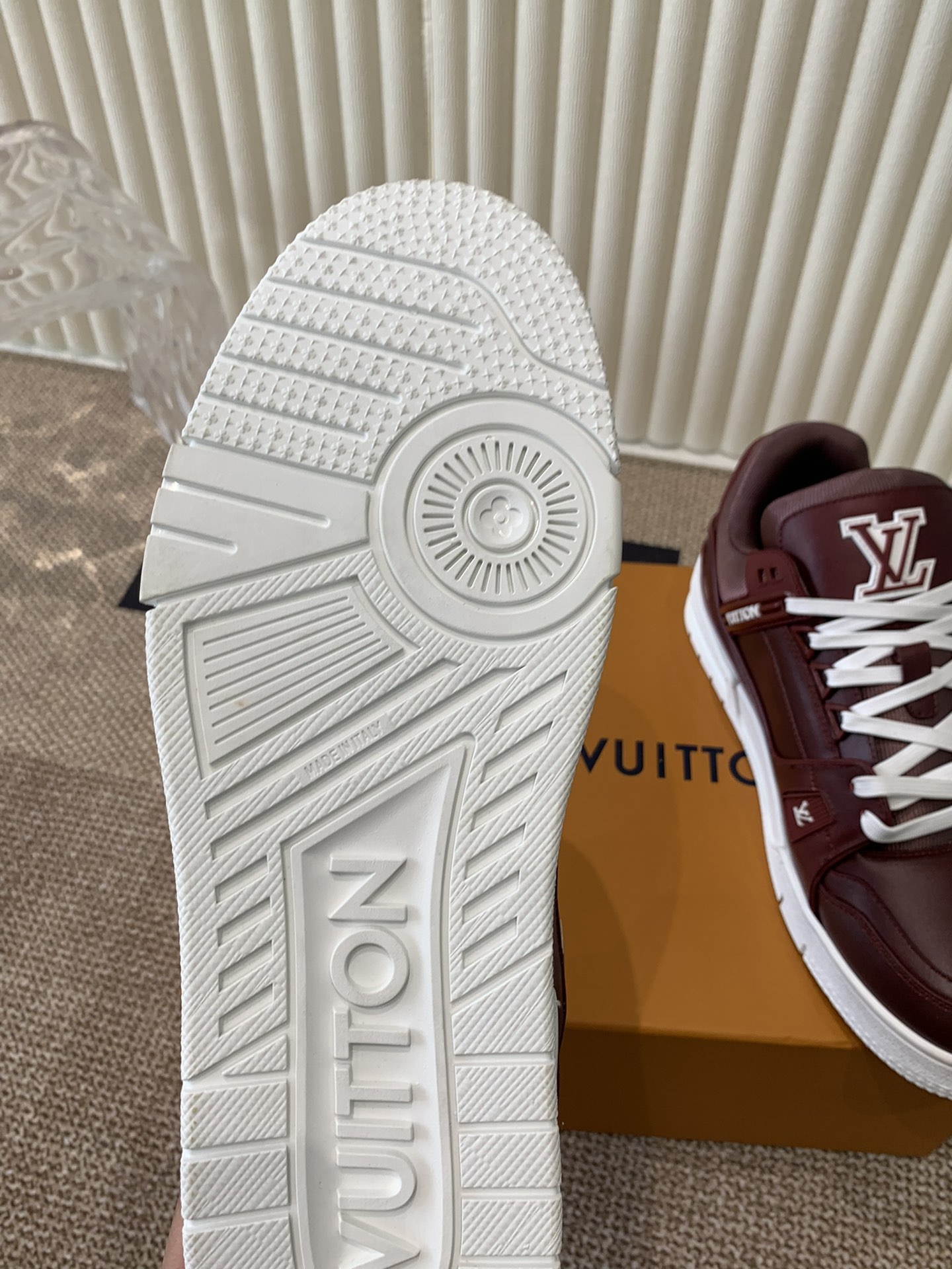 这款鞋子是AAAAA 1:1 质量 (非常棒). 使用了和原版一模一样的材料. 商标部分也保持了和路易威登/Louis Vuitton一样. 图片拍摄是实物鞋子拍摄, 您所收到的实物保证和我们图片一模一样.