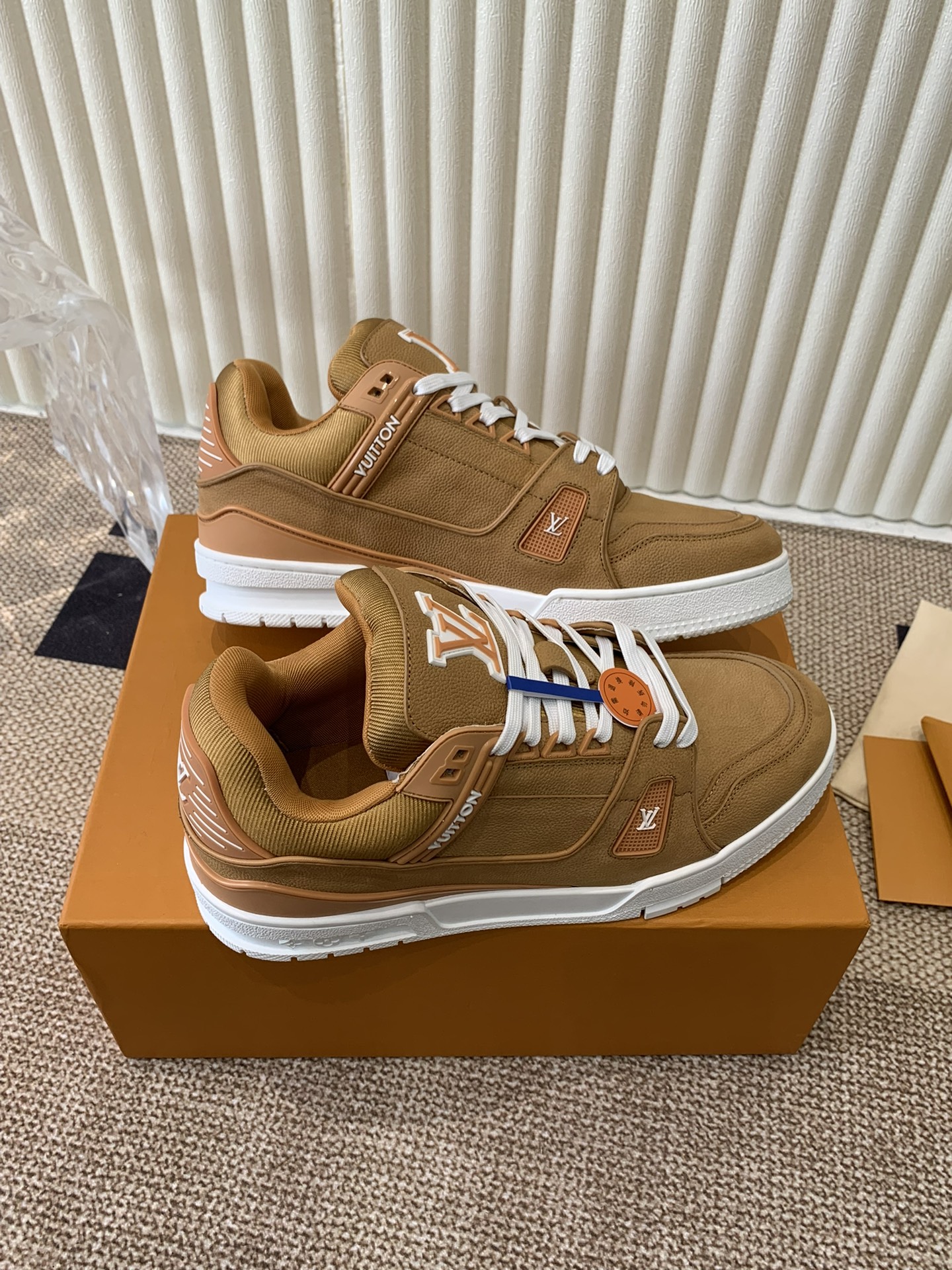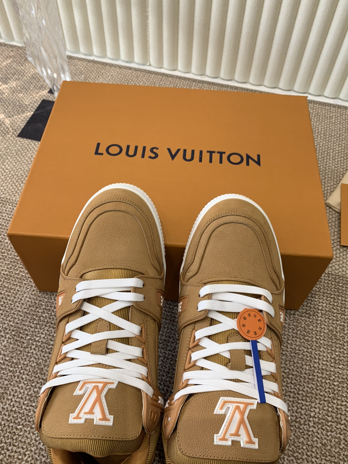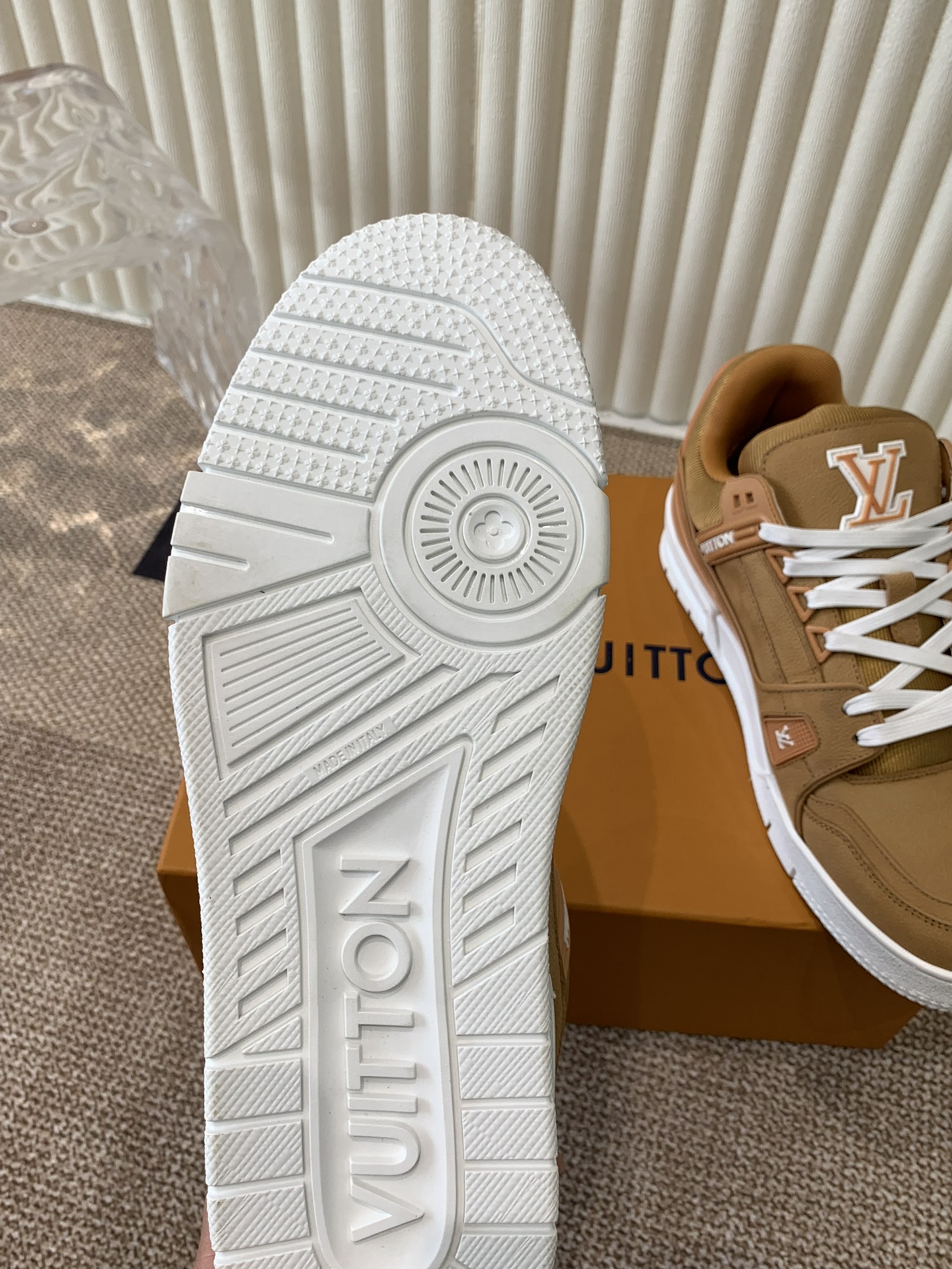 这款鞋子是AAAAA 1:1 质量 (非常棒). 使用了和原版一模一样的材料. 商标部分也保持了和路易威登/Louis Vuitton一样. 图片拍摄是实物鞋子拍摄, 您所收到的实物保证和我们图片一模一样.