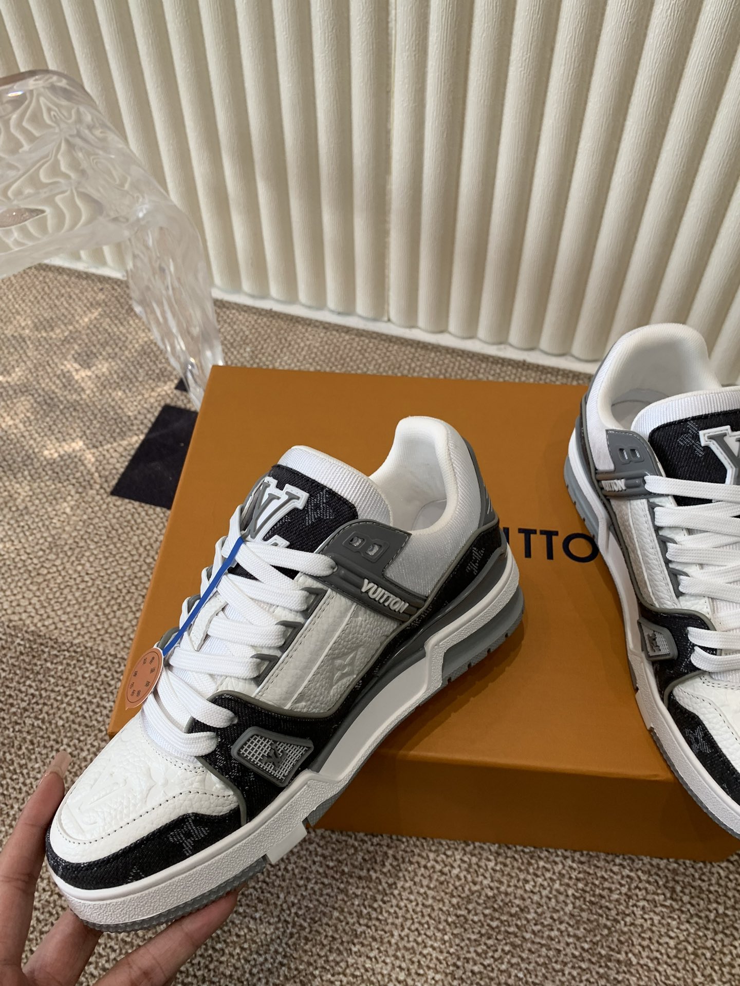 这款鞋子是AAAAA 1:1 质量 (非常棒). 使用了和原版一模一样的材料. 商标部分也保持了和路易威登/Louis Vuitton一样. 图片拍摄是实物鞋子拍摄, 您所收到的实物保证和我们图片一模一样.