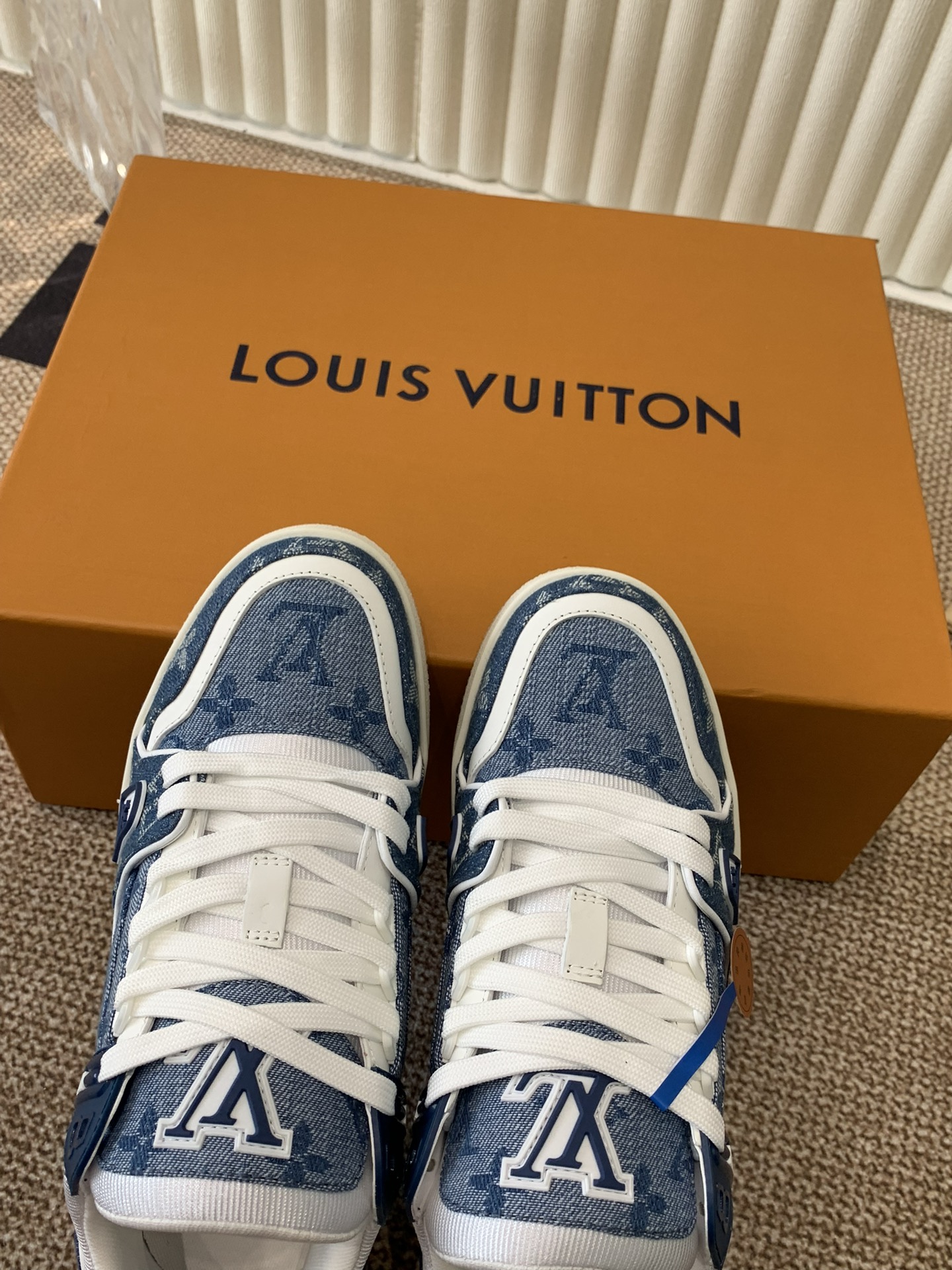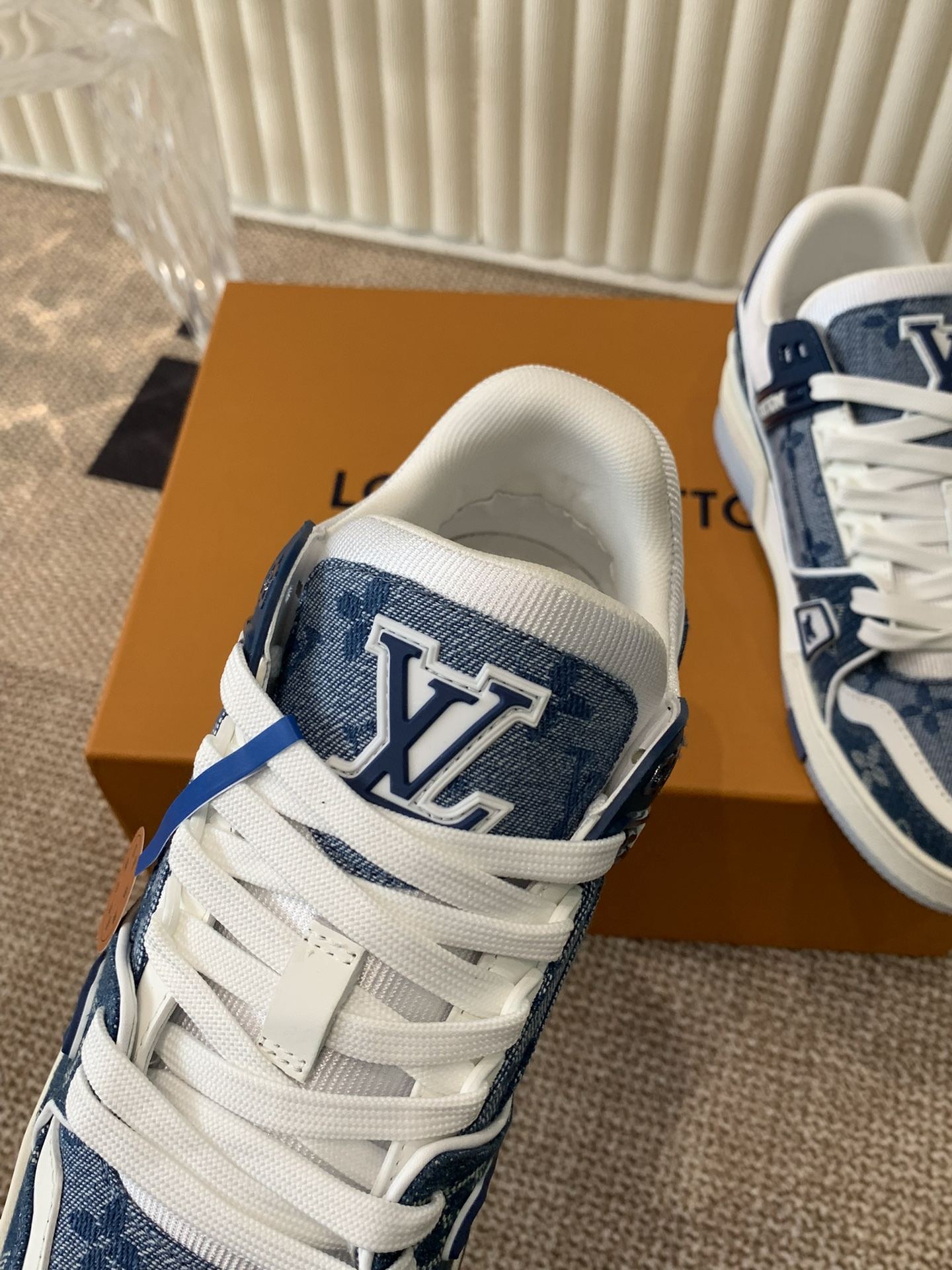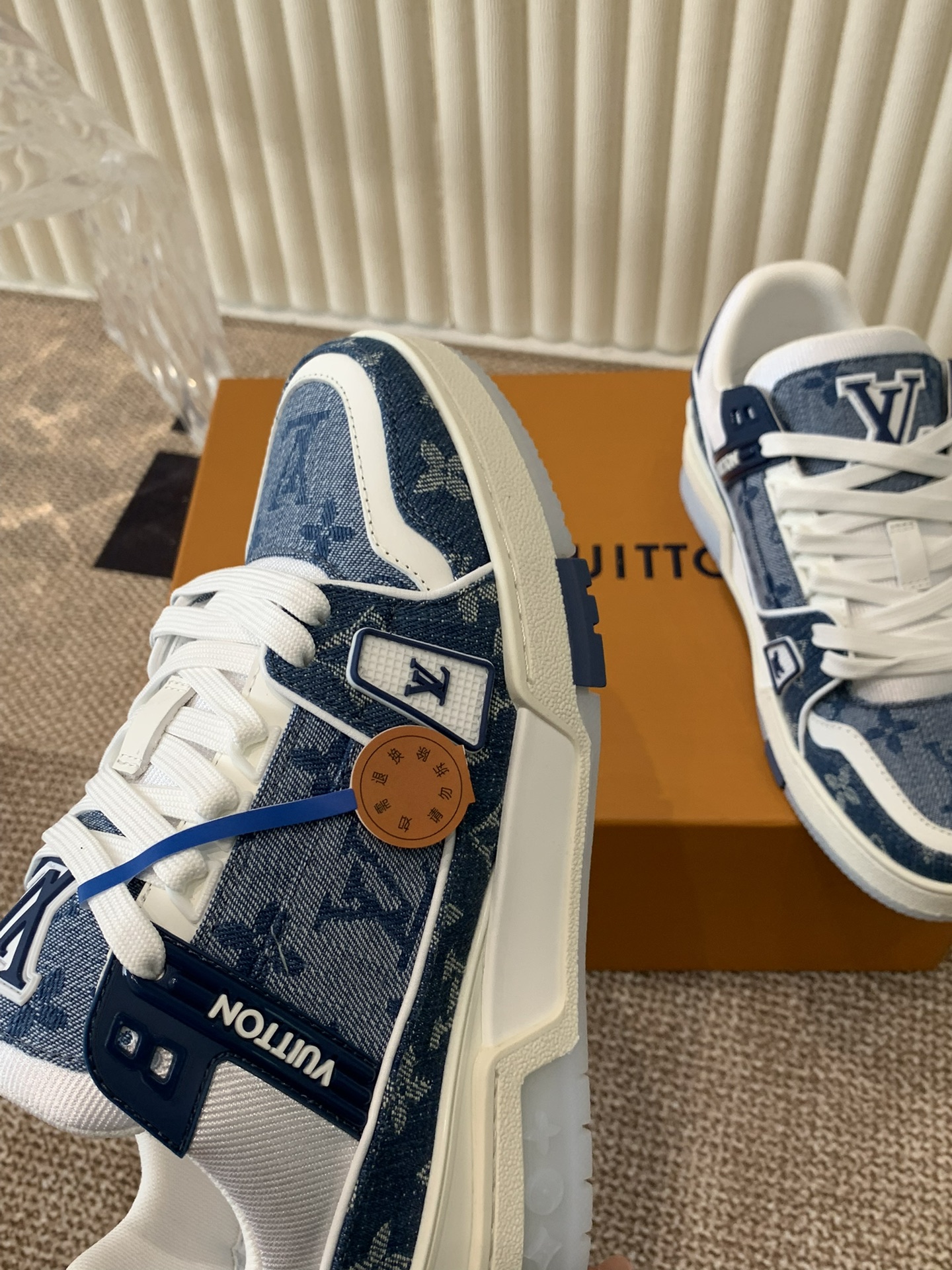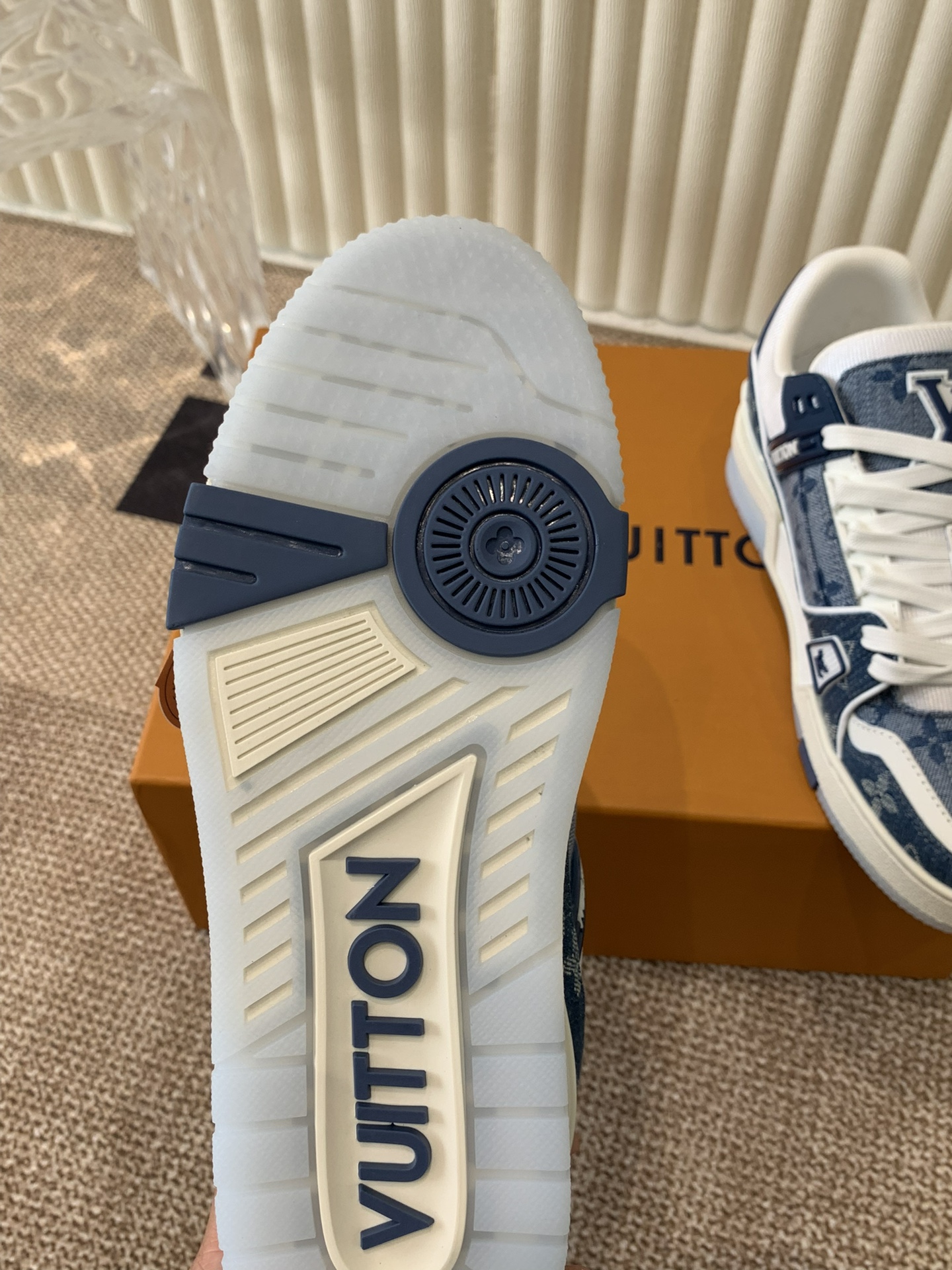 这款鞋子是AAAAA 1:1 质量 (非常棒). 使用了和原版一模一样的材料. 商标部分也保持了和路易威登/Louis Vuitton一样. 图片拍摄是实物鞋子拍摄, 您所收到的实物保证和我们图片一模一样.