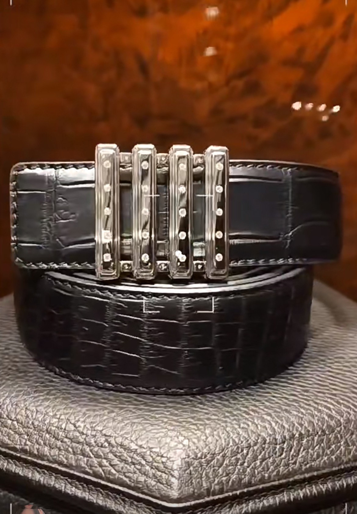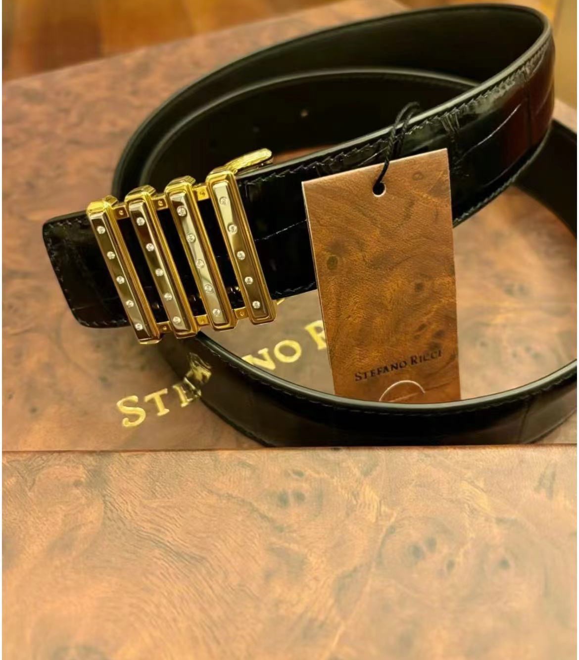 这款皮带是AAAAA 1:1 质量 (非常棒). 使用了和原版一模一样的材料. 商标部分也保持了和史蒂芬劳.尼治/Stefano Ricci一样. 图片拍摄是实物皮带拍摄, 您所收到的实物保证和我们图片一模一样.