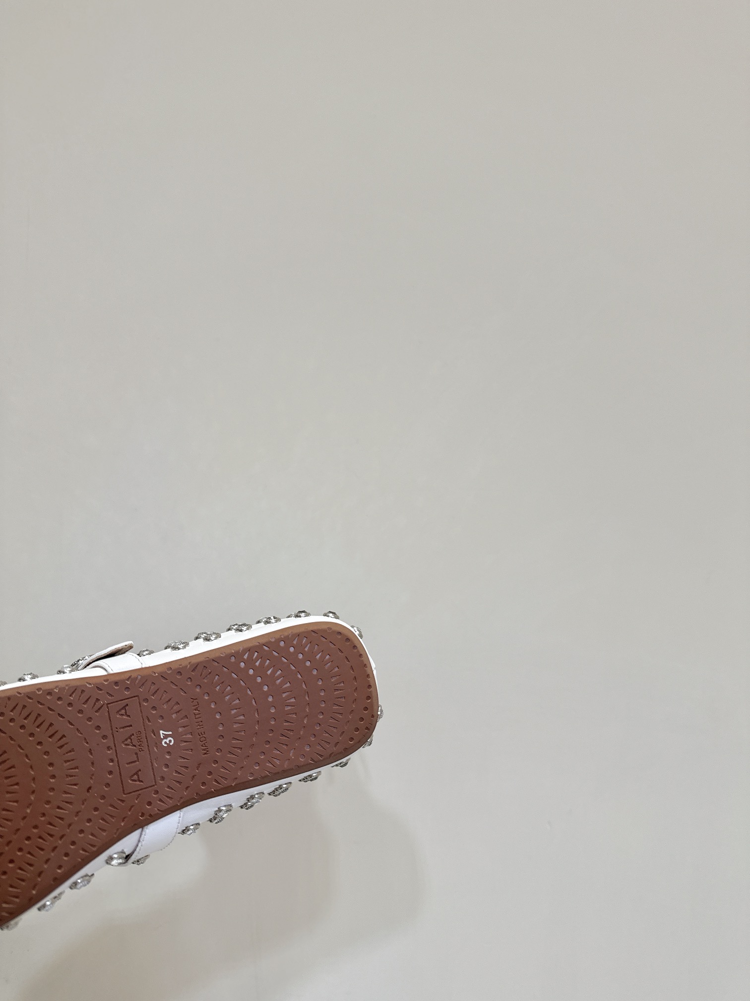 这款鞋子是AAAAA 1:1 质量 (非常棒). 使用了和原版一模一样的材料. 商标部分也保持了和Alaia一样. 图片拍摄是实物鞋子拍摄, 您所收到的实物保证和我们图片一模一样.