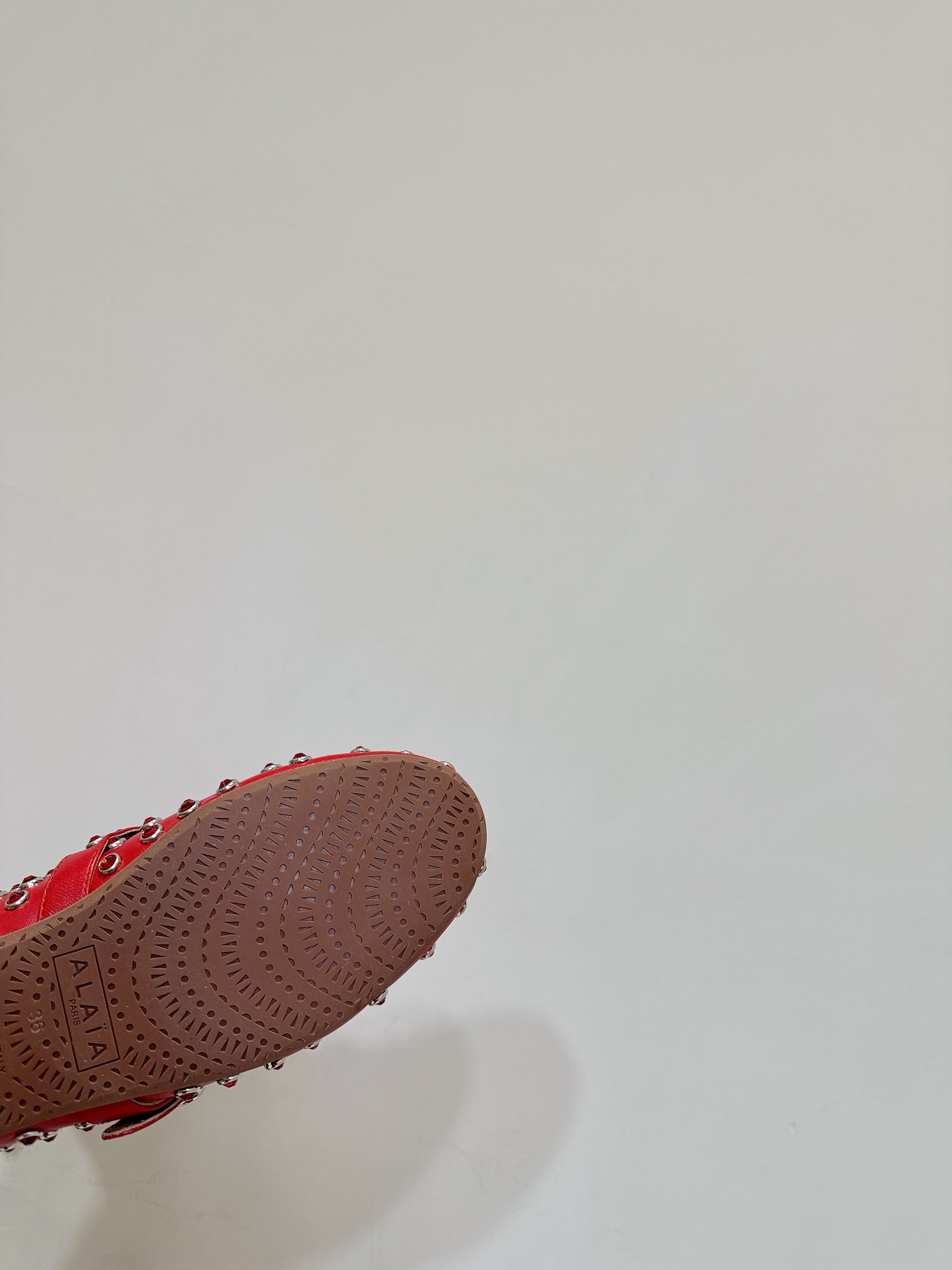 这款鞋子是AAAAA 1:1 质量 (非常棒). 使用了和原版一模一样的材料. 商标部分也保持了和Alaia一样. 图片拍摄是实物鞋子拍摄, 您所收到的实物保证和我们图片一模一样.