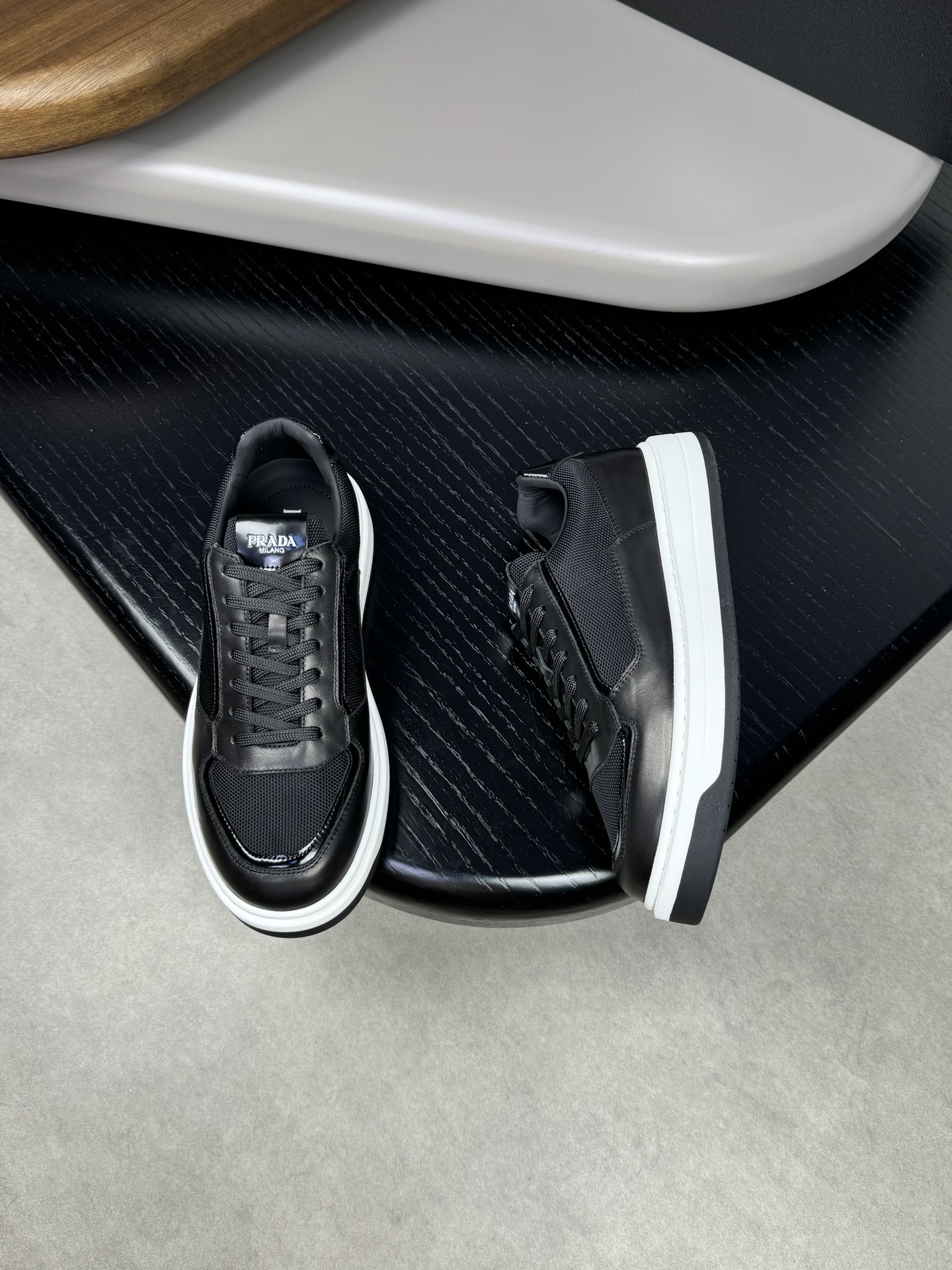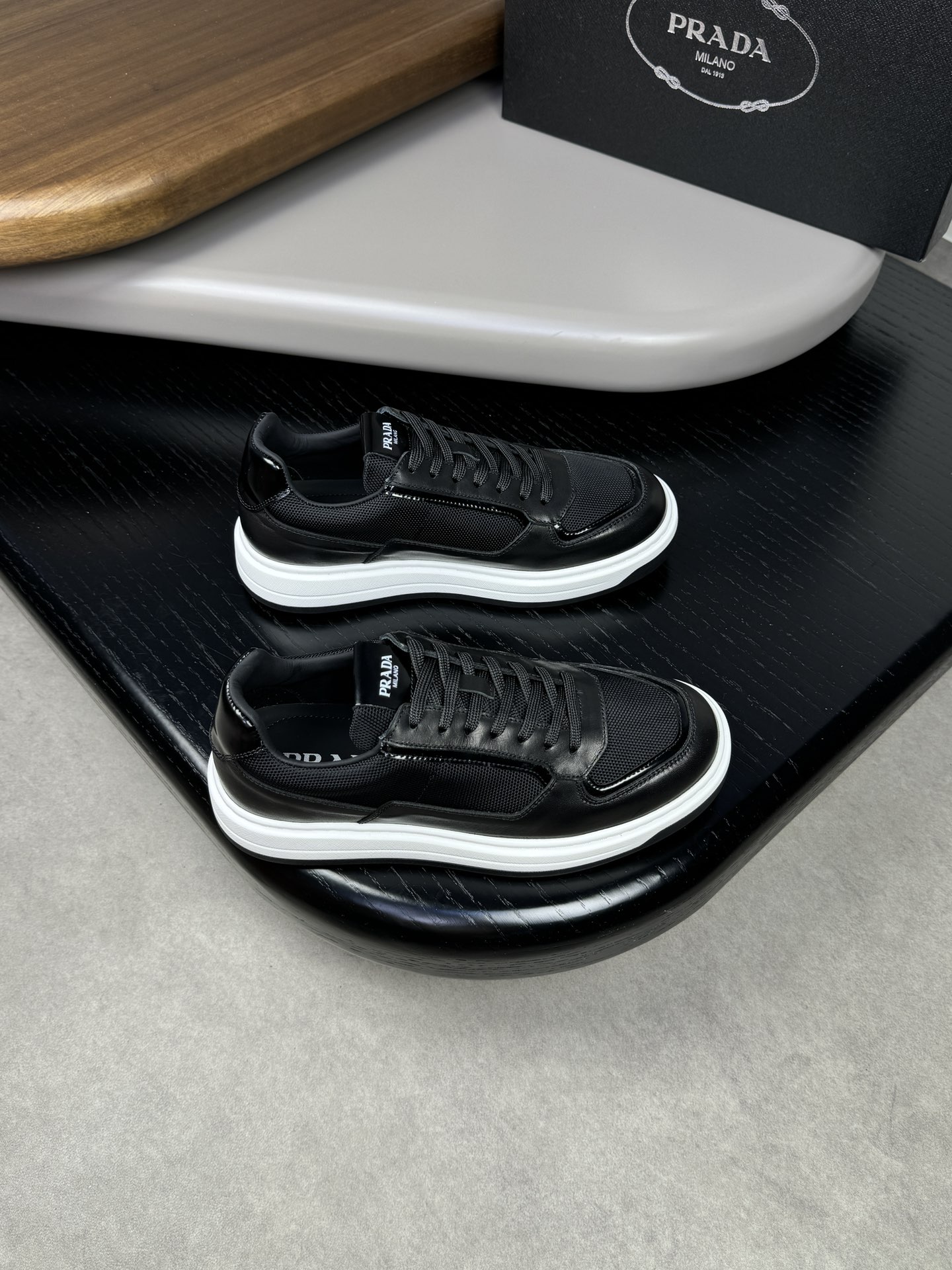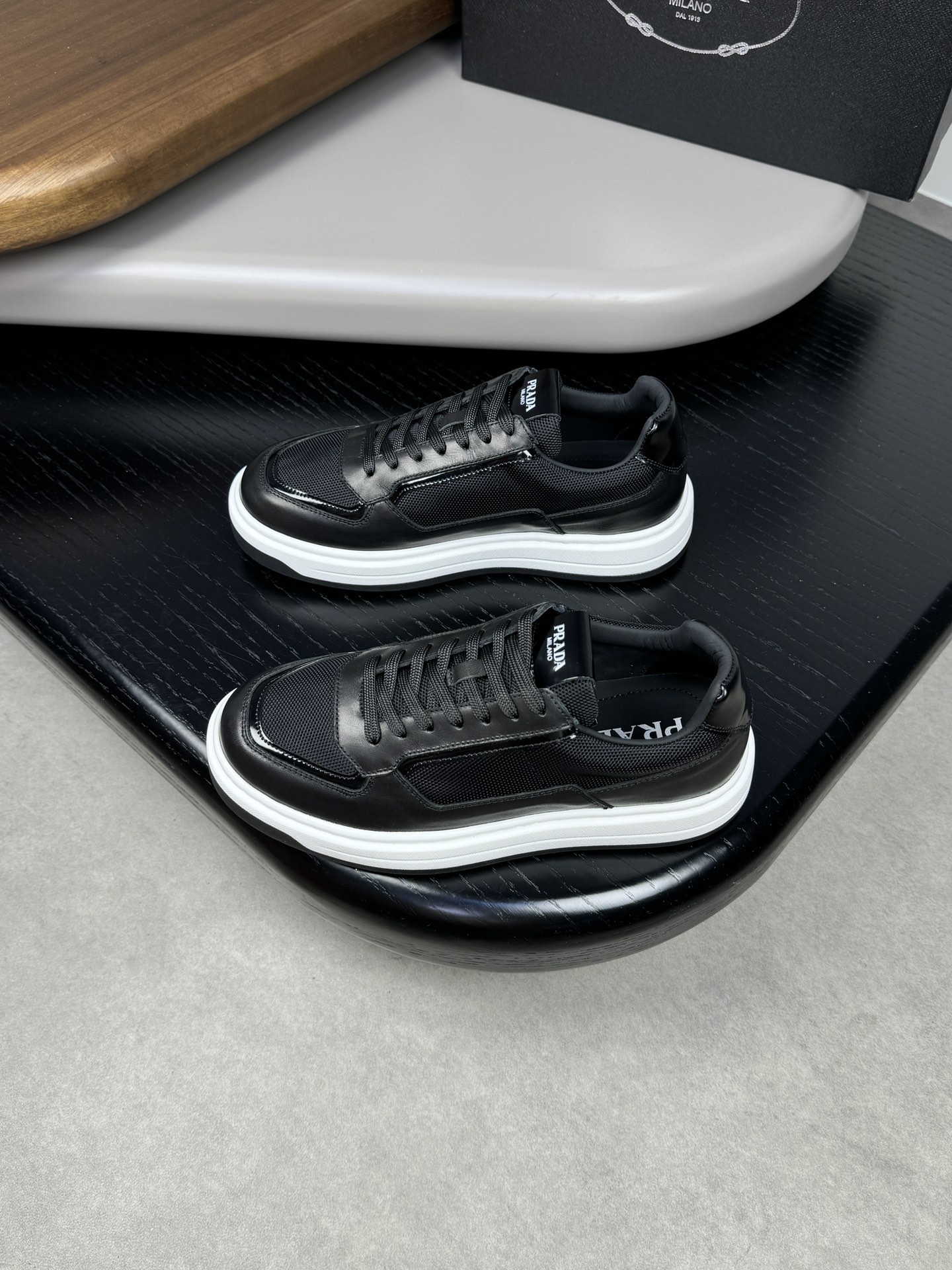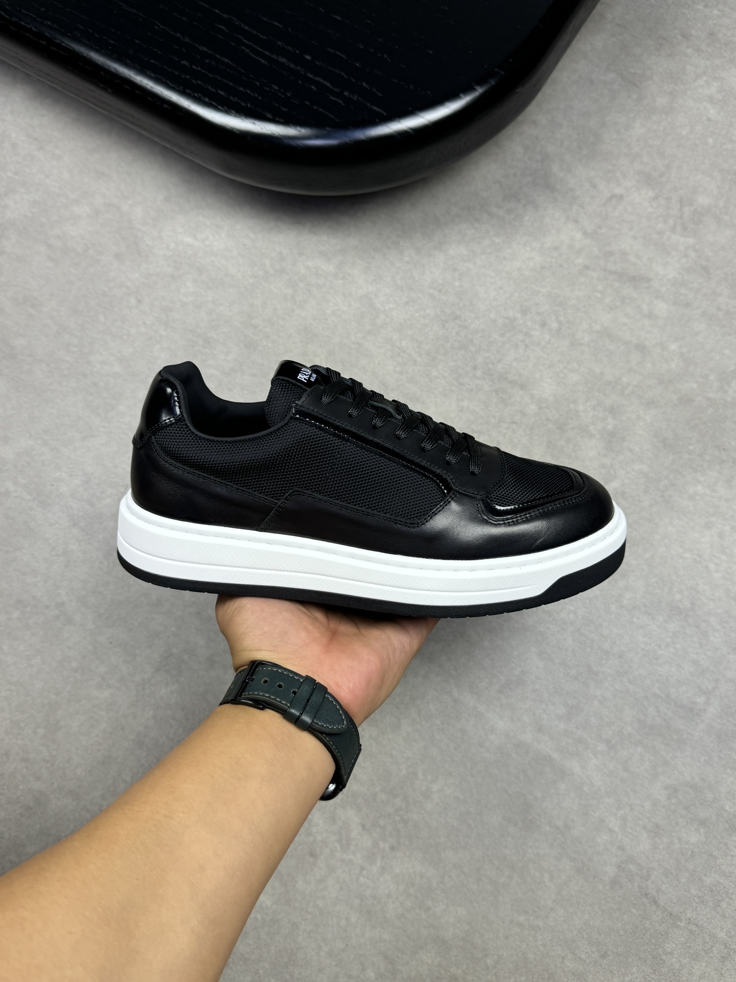 这款鞋子是AAAAA 1:1 质量 (非常棒). 使用了和原版一模一样的材料. 商标部分也保持了和普拉达/Prada一样. 图片拍摄是实物鞋子拍摄, 您所收到的实物保证和我们图片一模一样.
