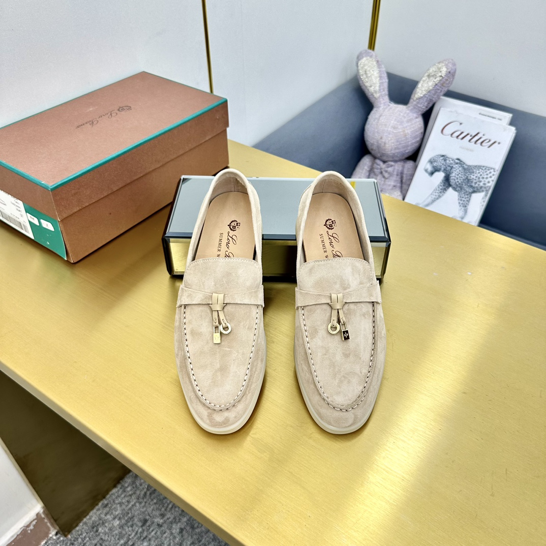 这款鞋子是AAAAA 1:1 质量 (非常棒). 使用了和原版一模一样的材料. 商标部分也保持了和洛罗皮亚纳/Loro Piana一样. 图片拍摄是实物鞋子拍摄, 您所收到的实物保证和我们图片一模一样.