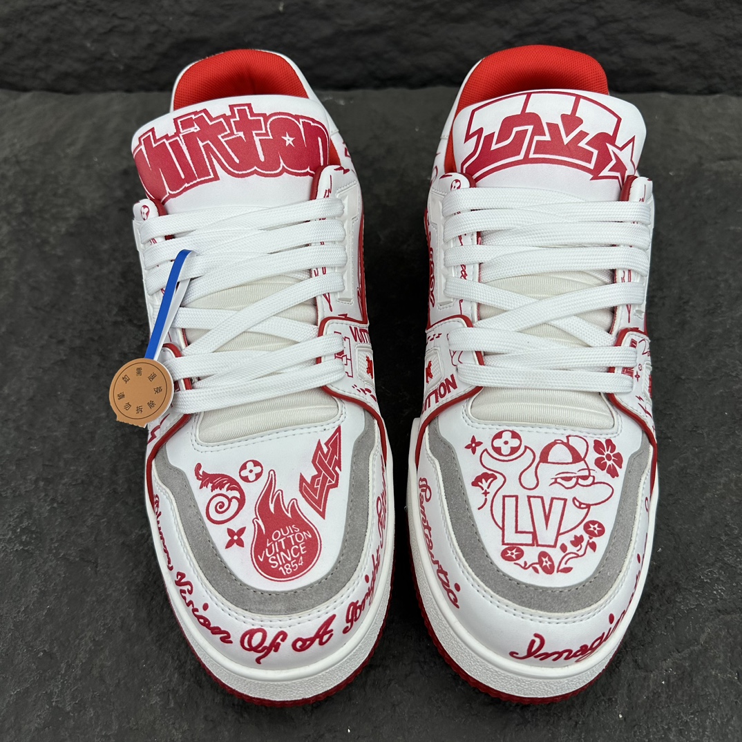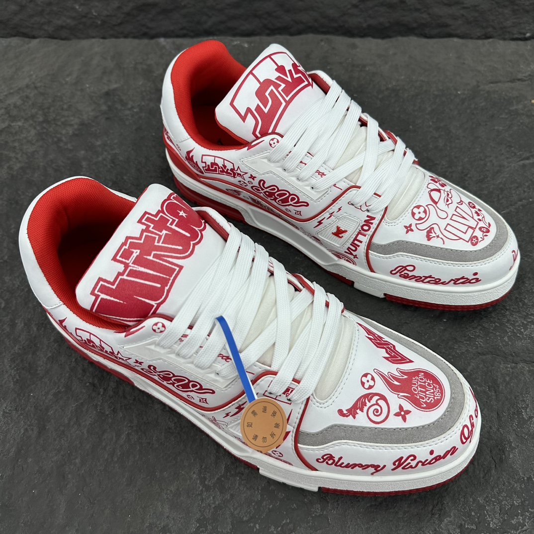 这款鞋子是AAAAA 1:1 质量 (非常棒). 使用了和原版一模一样的材料. 商标部分也保持了和路易威登/Louis Vuitton一样. 图片拍摄是实物鞋子拍摄, 您所收到的实物保证和我们图片一模一样.