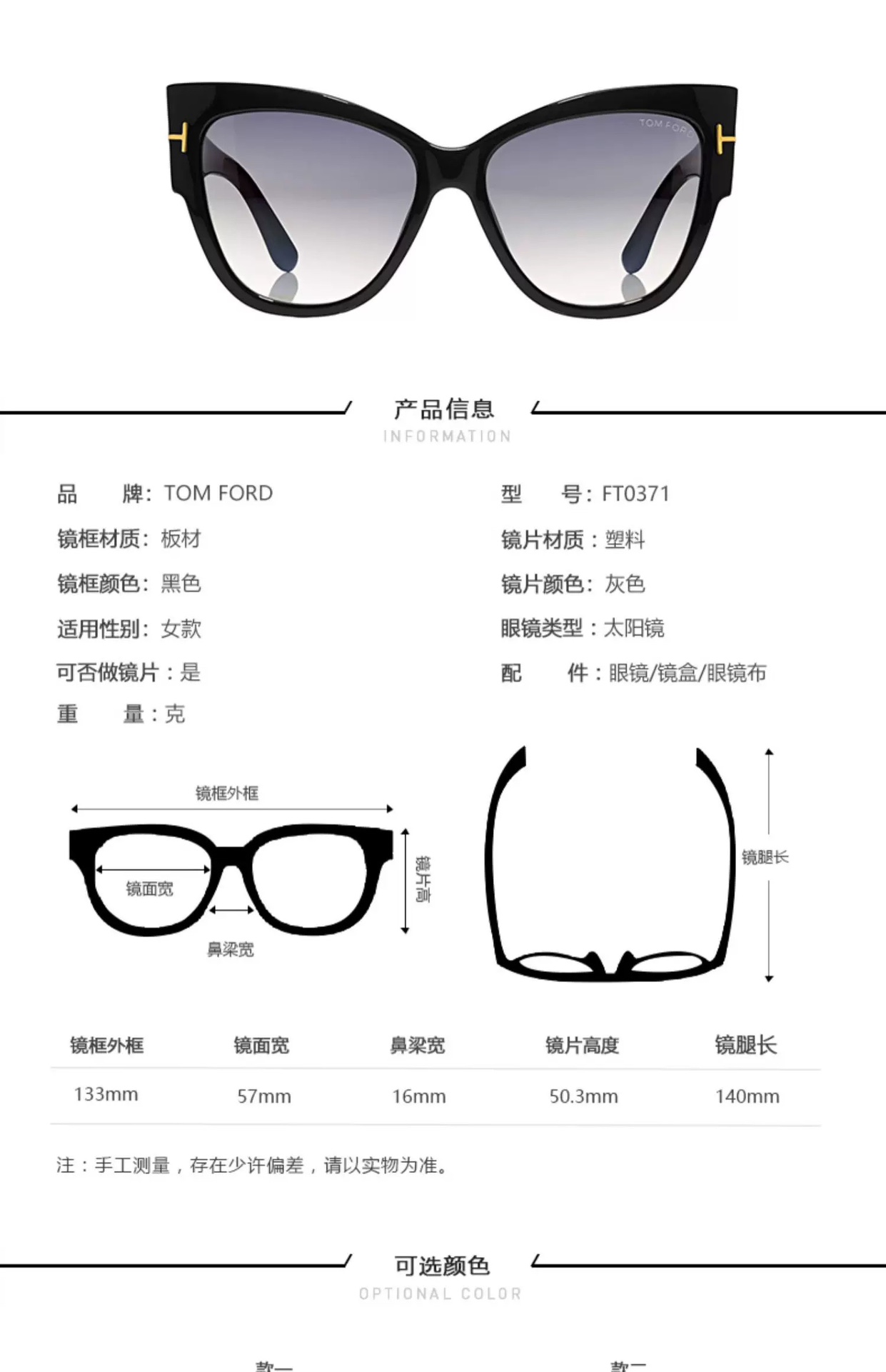 这款太阳眼镜是AAAAA 1:1 质量 (非常棒). 使用了和原版一模一样的材料. 商标部分也保持了和汤姆福特/Tom Ford一样. 图片拍摄是实物太阳眼镜拍摄, 您所收到的实物保证和我们图片一模一样.