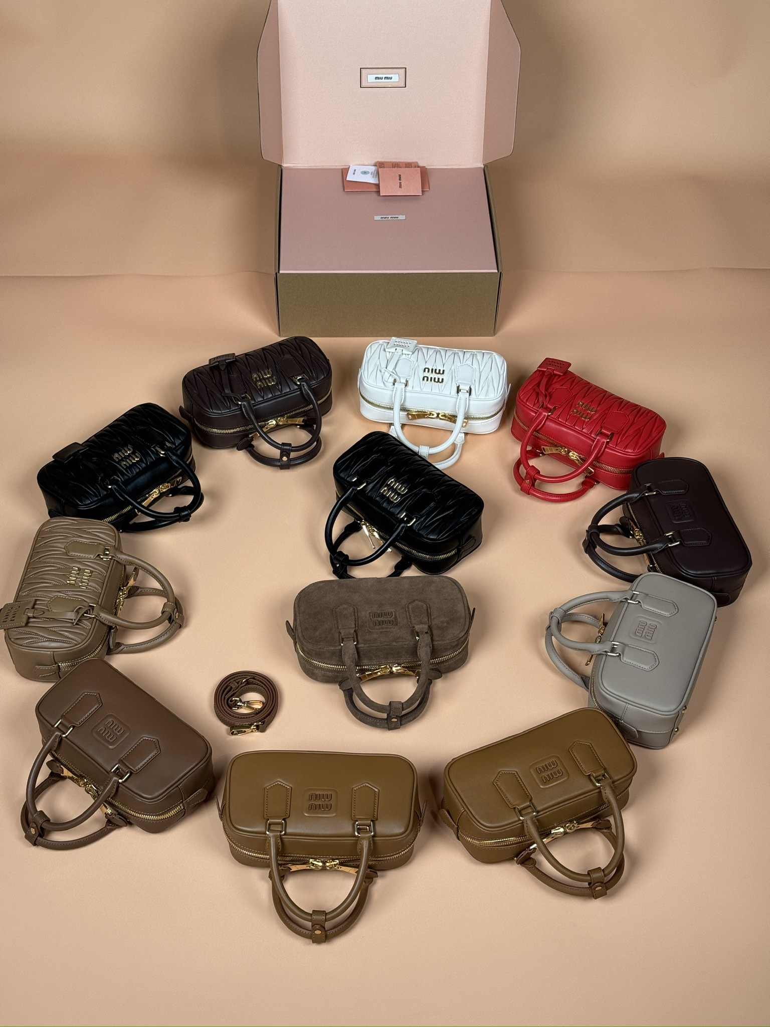 这款包包是AAAAA 1:1 质量 (非常棒). 使用了和原版一模一样的材料. 商标部分也保持了和缪缪/Miu Miu一样. 图片拍摄是实物包包拍摄, 您所收到的实物保证和我们图片一模一样.