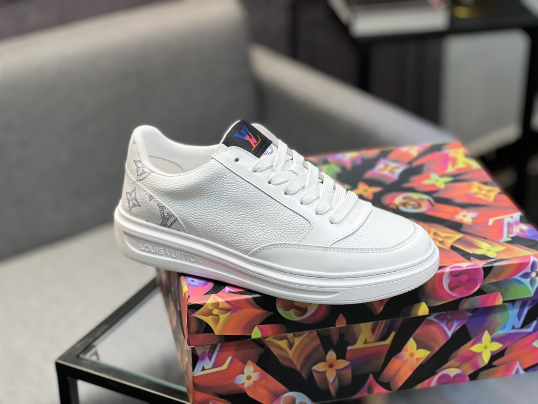 这款鞋子是AAAAA 1:1 质量 (非常棒). 使用了和原版一模一样的材料. 商标部分也保持了和路易威登/Louis Vuitton一样. 图片拍摄是实物鞋子拍摄, 您所收到的实物保证和我们图片一模一样.