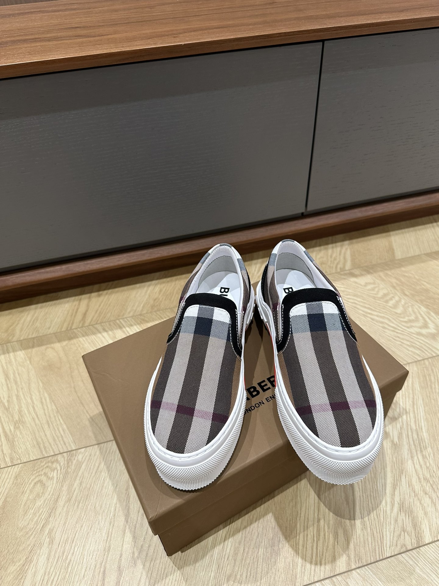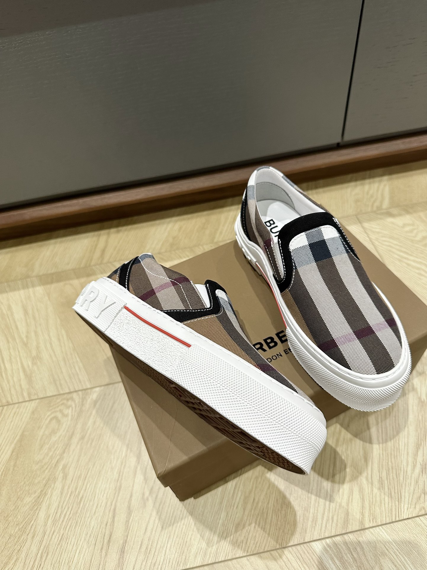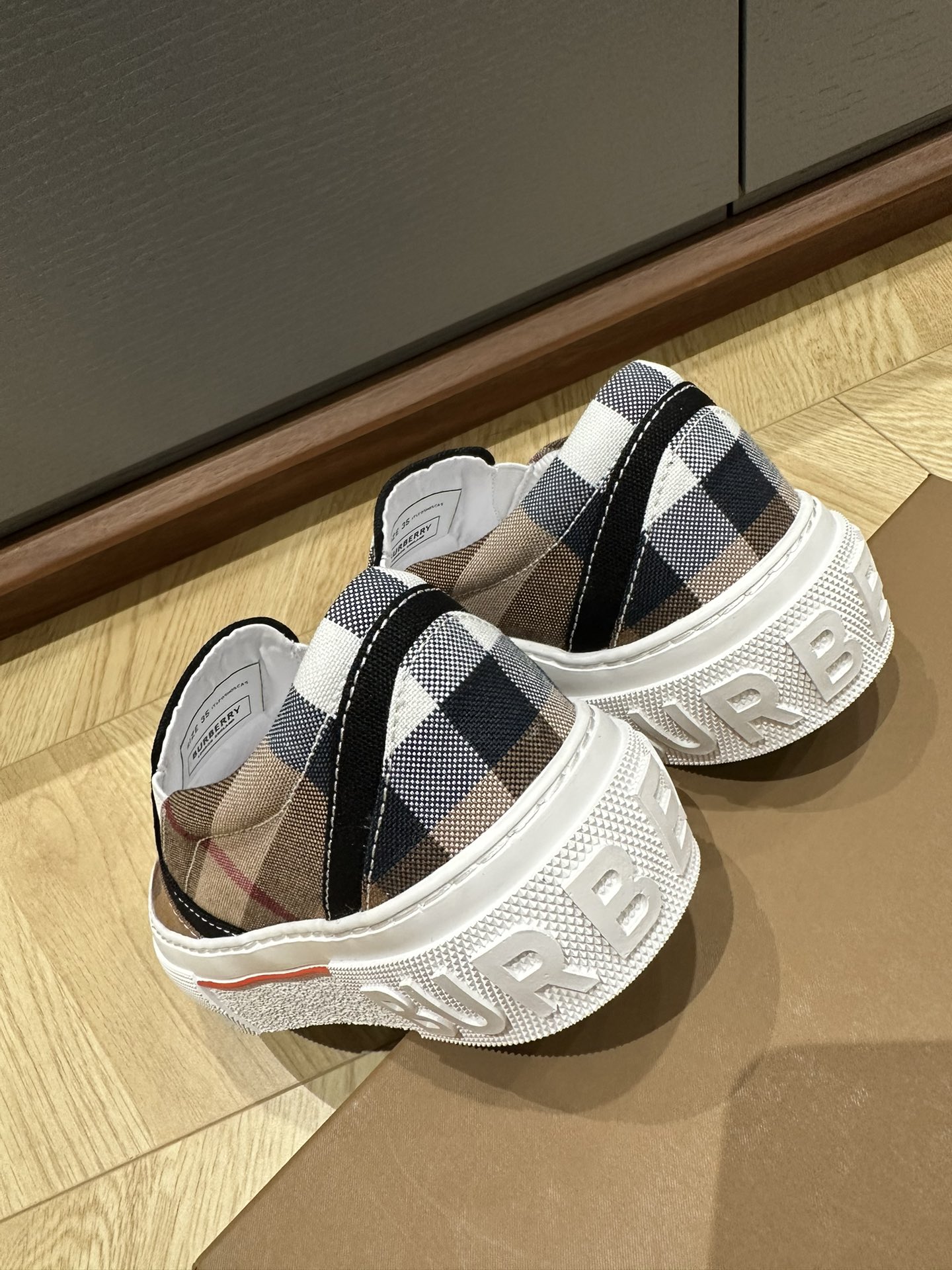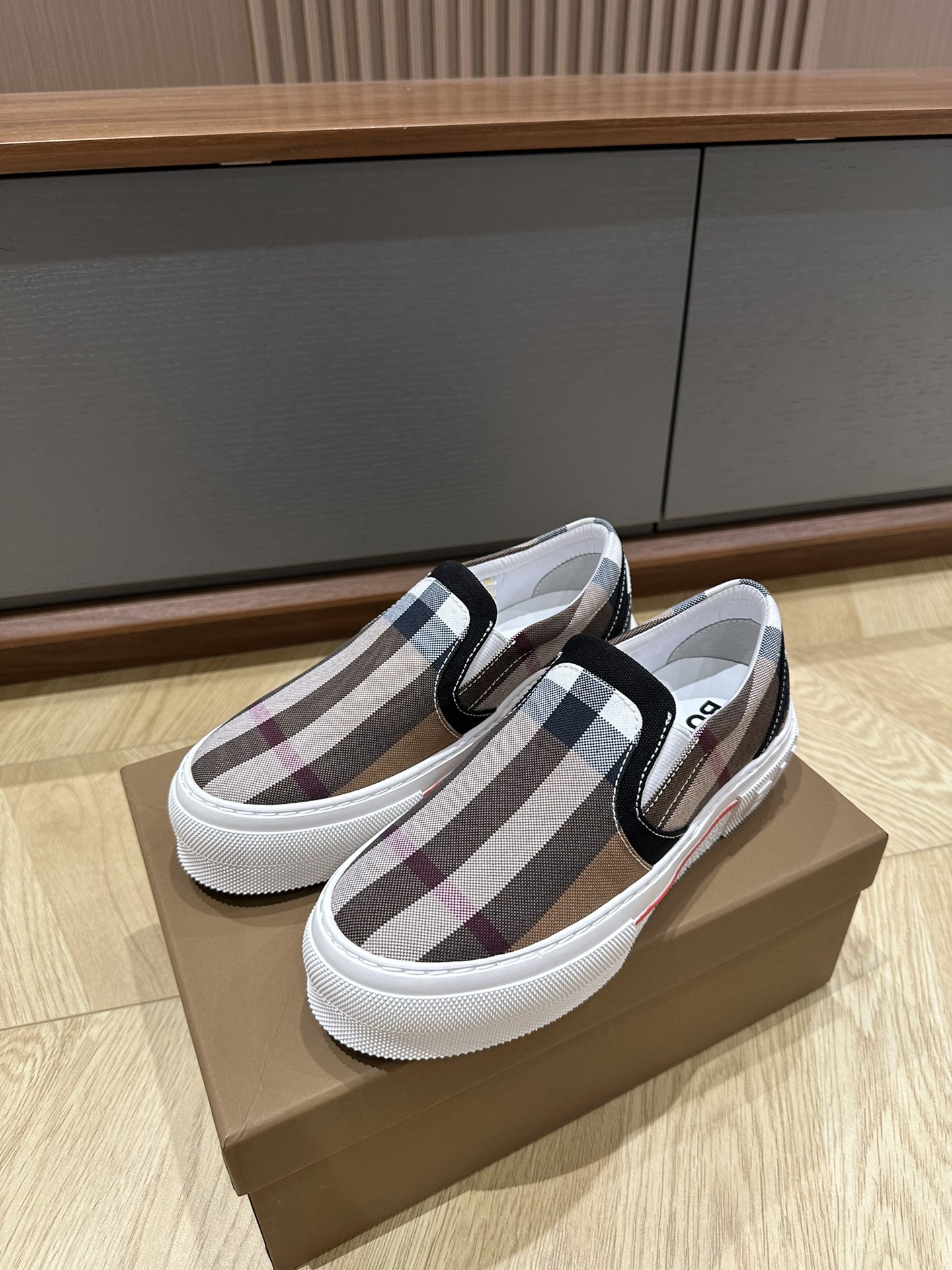 这款鞋子是AAAAA 1:1 质量 (非常棒). 使用了和原版一模一样的材料. 商标部分也保持了和巴宝莉/Burberry一样. 图片拍摄是实物鞋子拍摄, 您所收到的实物保证和我们图片一模一样.