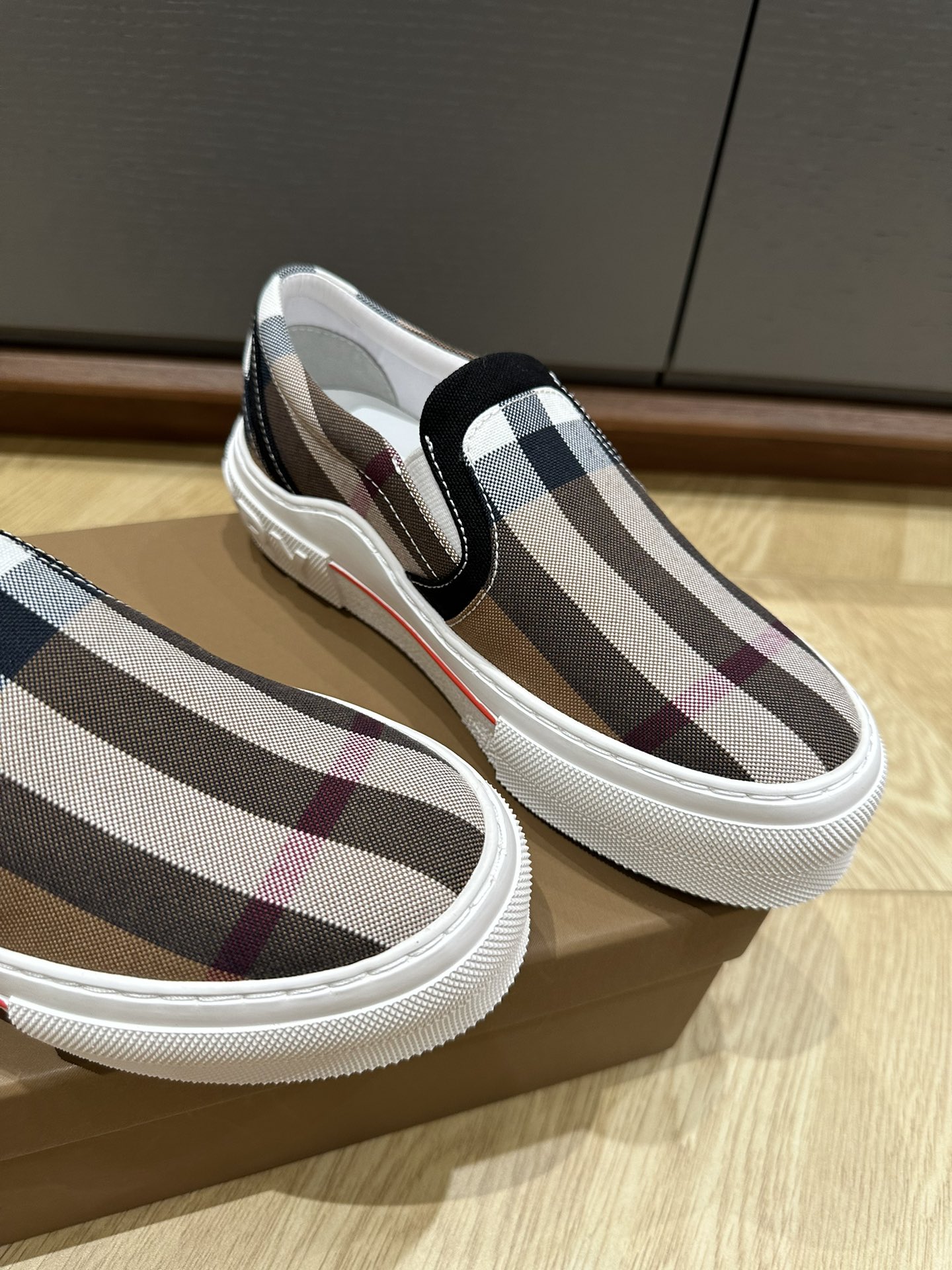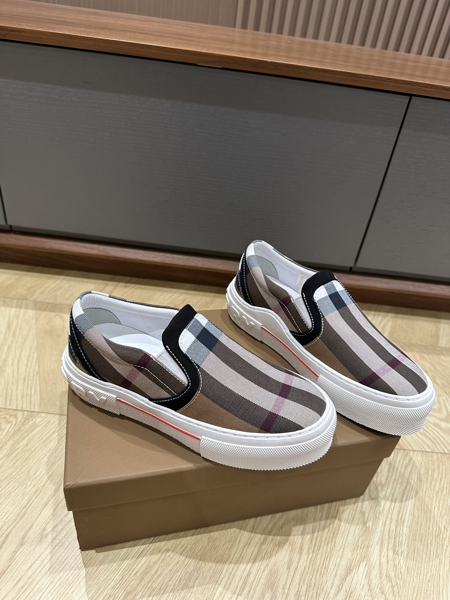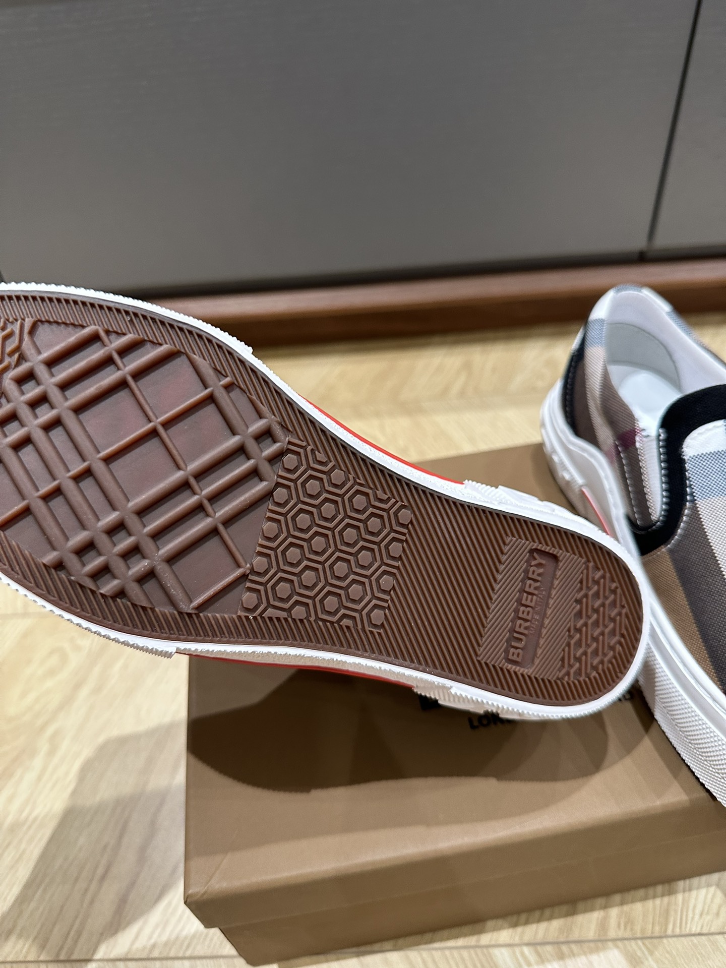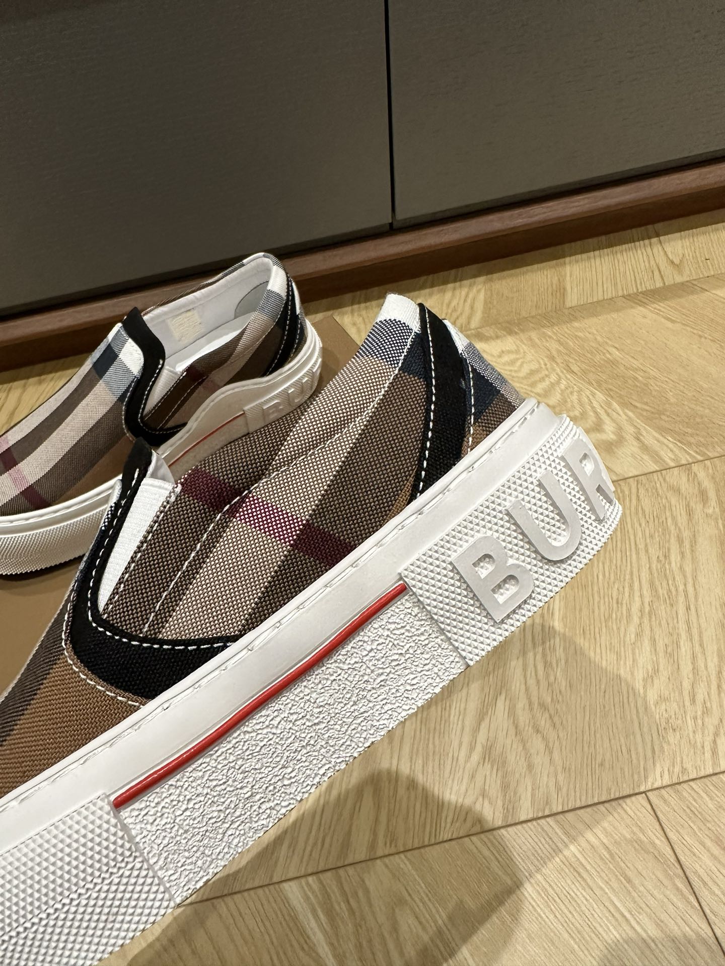 这款鞋子是AAAAA 1:1 质量 (非常棒). 使用了和原版一模一样的材料. 商标部分也保持了和巴宝莉/Burberry一样. 图片拍摄是实物鞋子拍摄, 您所收到的实物保证和我们图片一模一样.