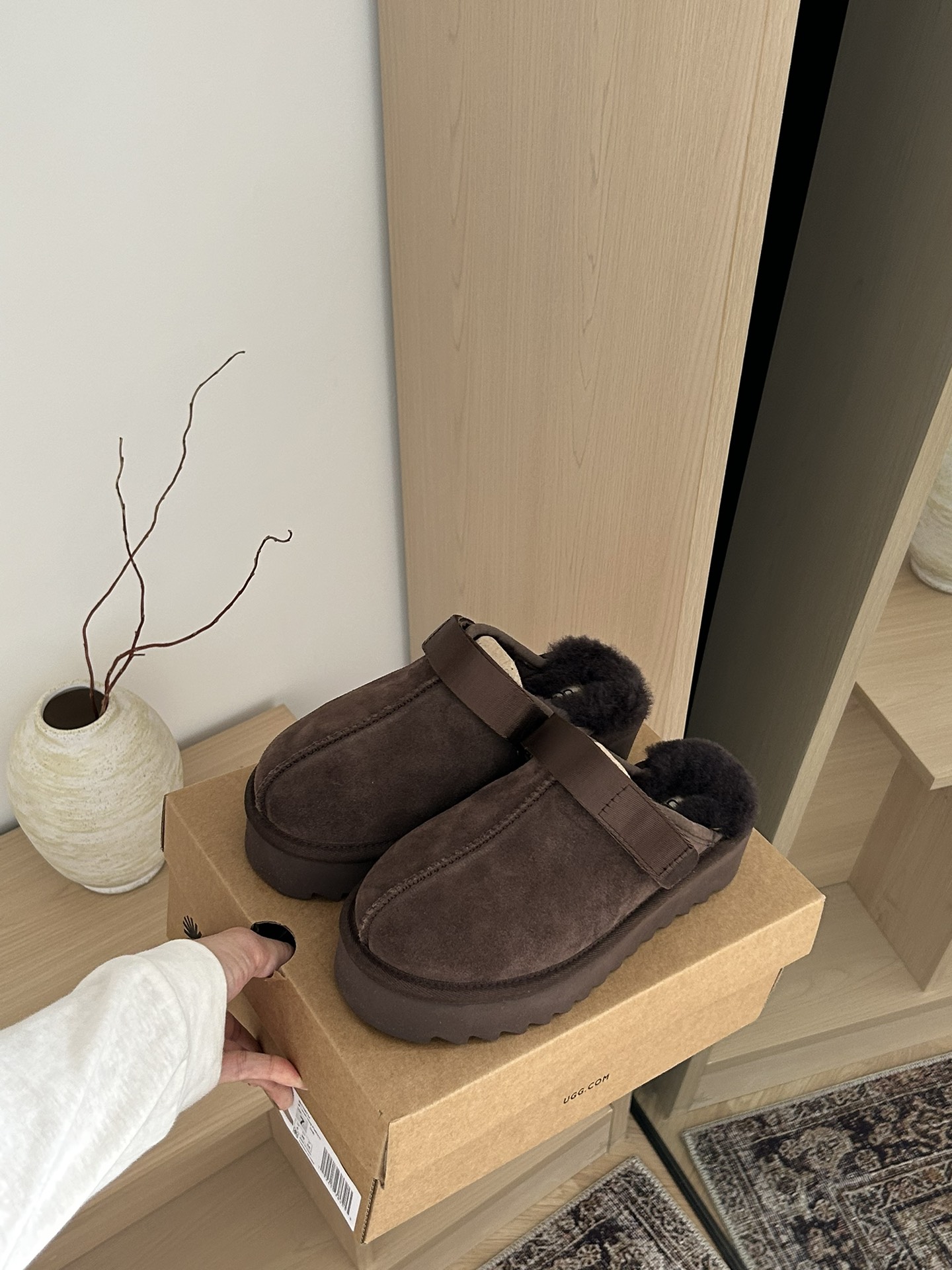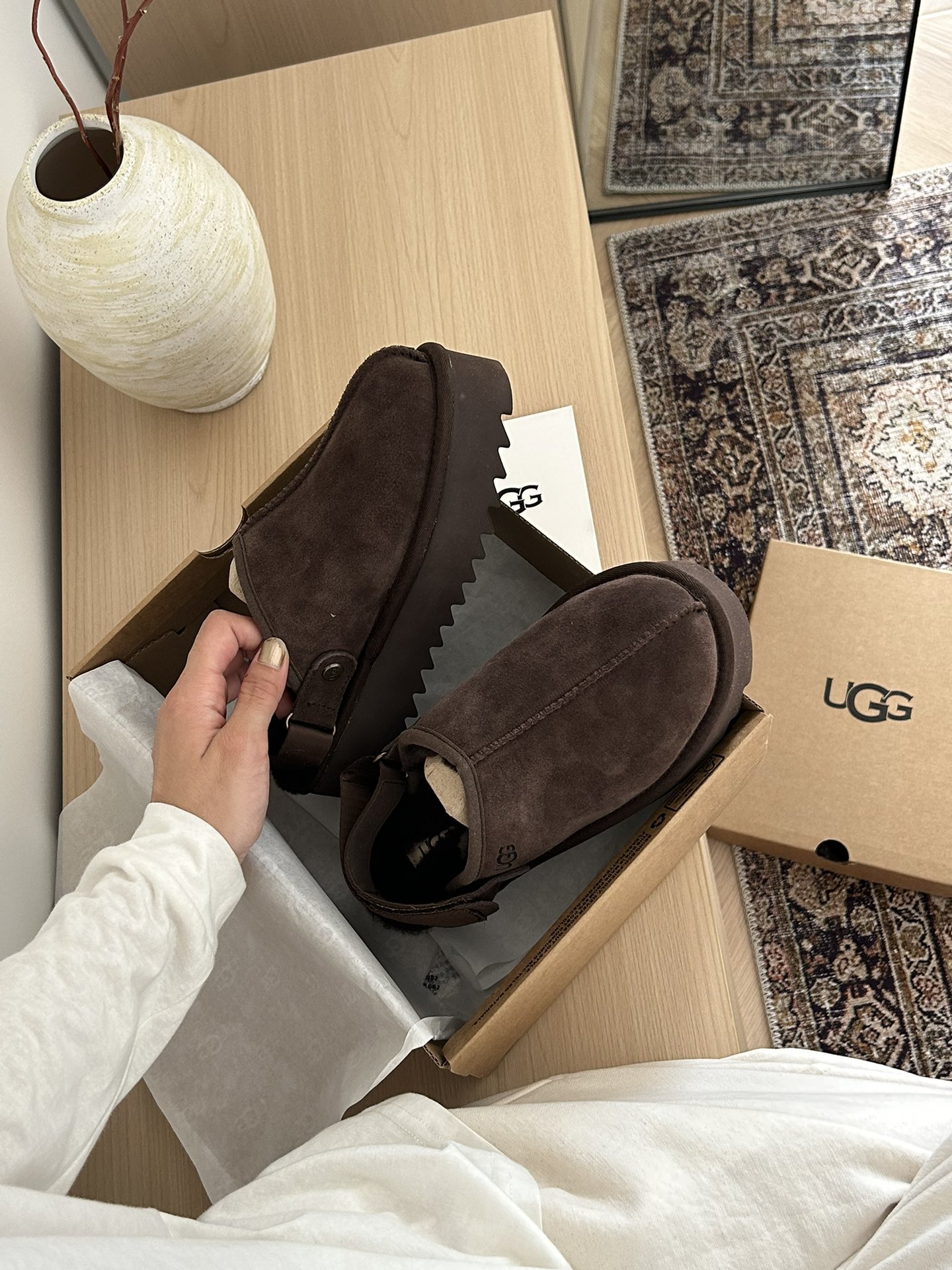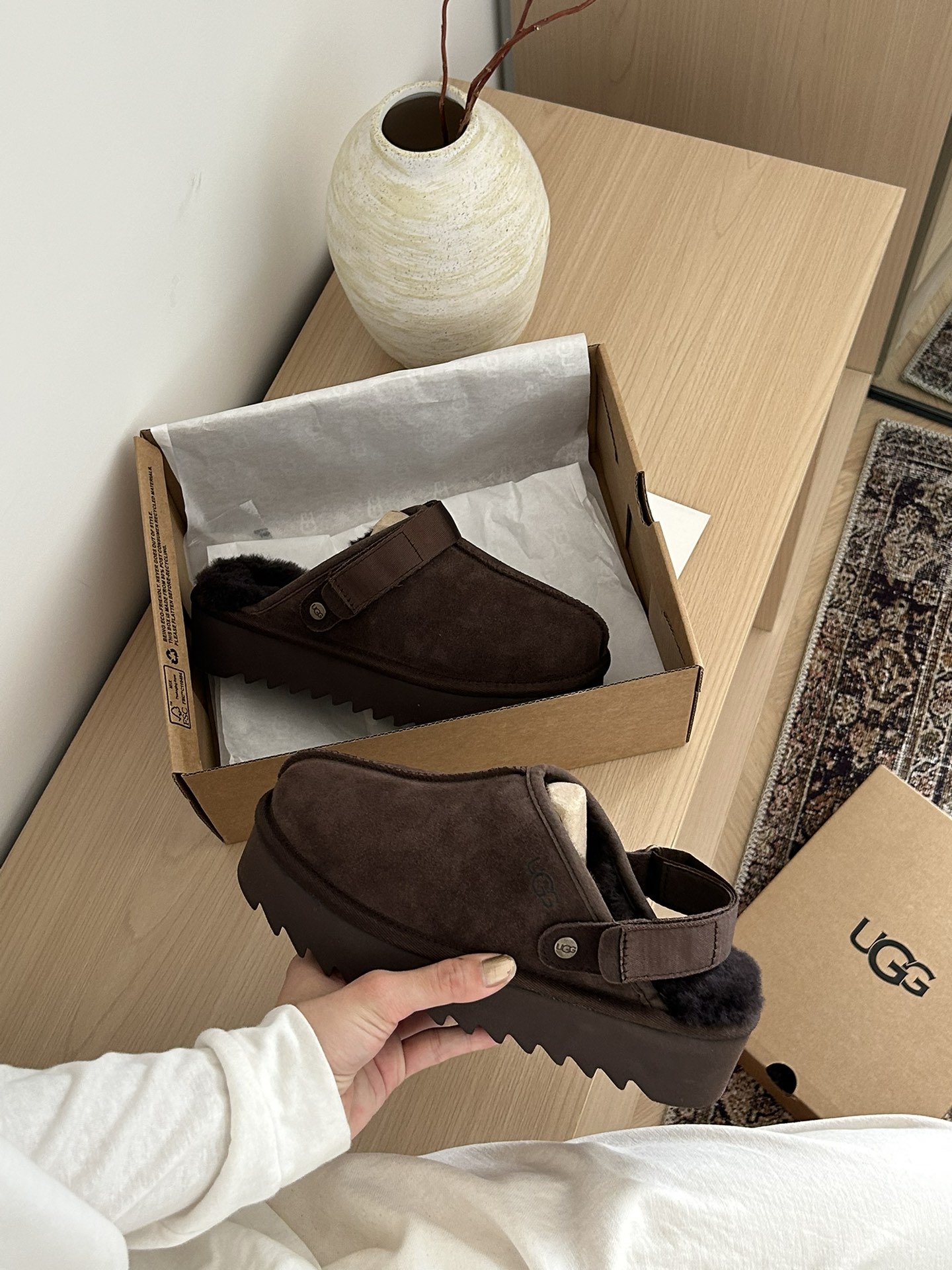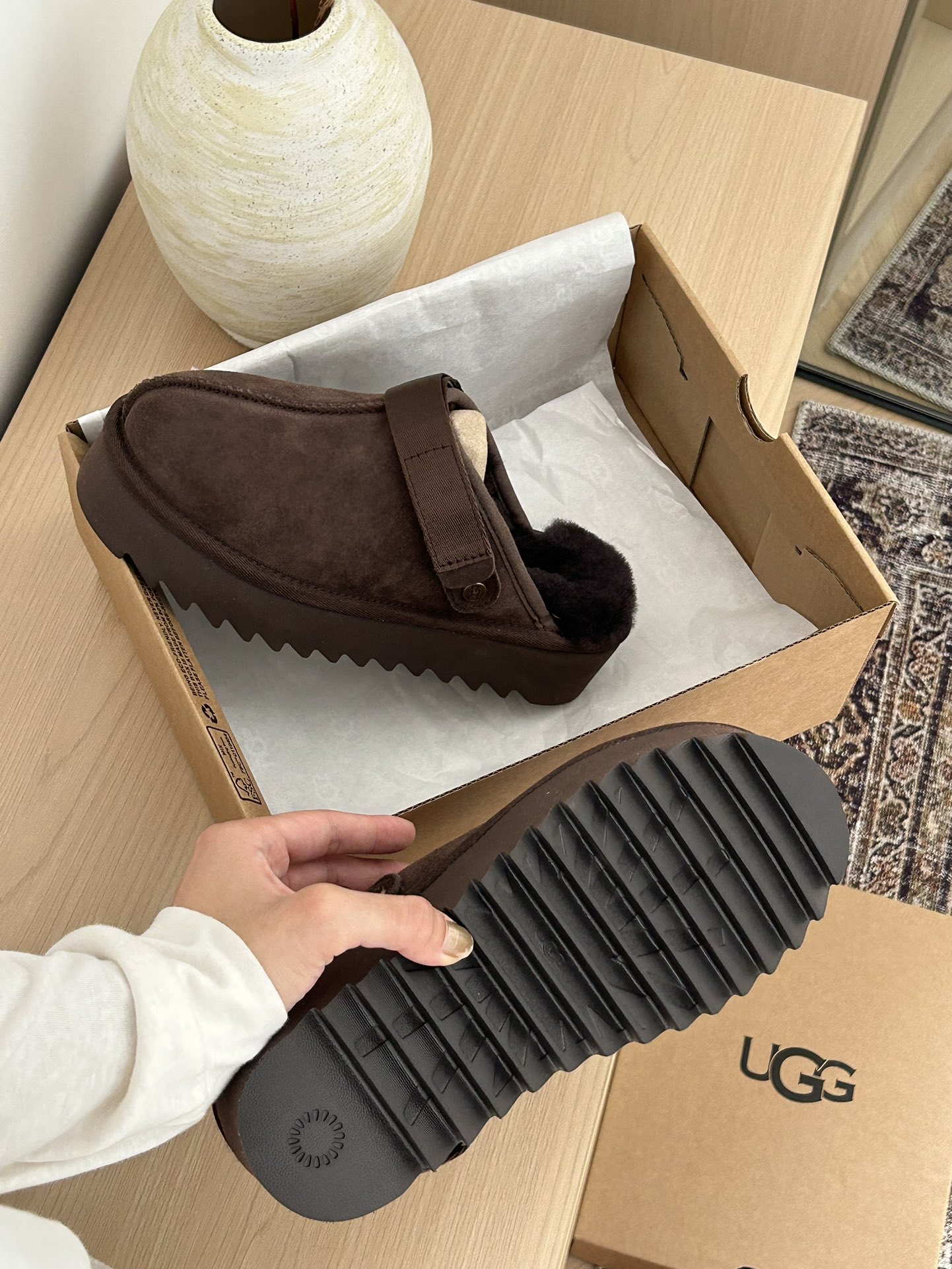 这款鞋子是AAAAA 1:1 质量 (非常棒). 使用了和原版一模一样的材料. 商标部分也保持了和UGG雪地靴一样. 图片拍摄是实物鞋子拍摄, 您所收到的实物保证和我们图片一模一样.