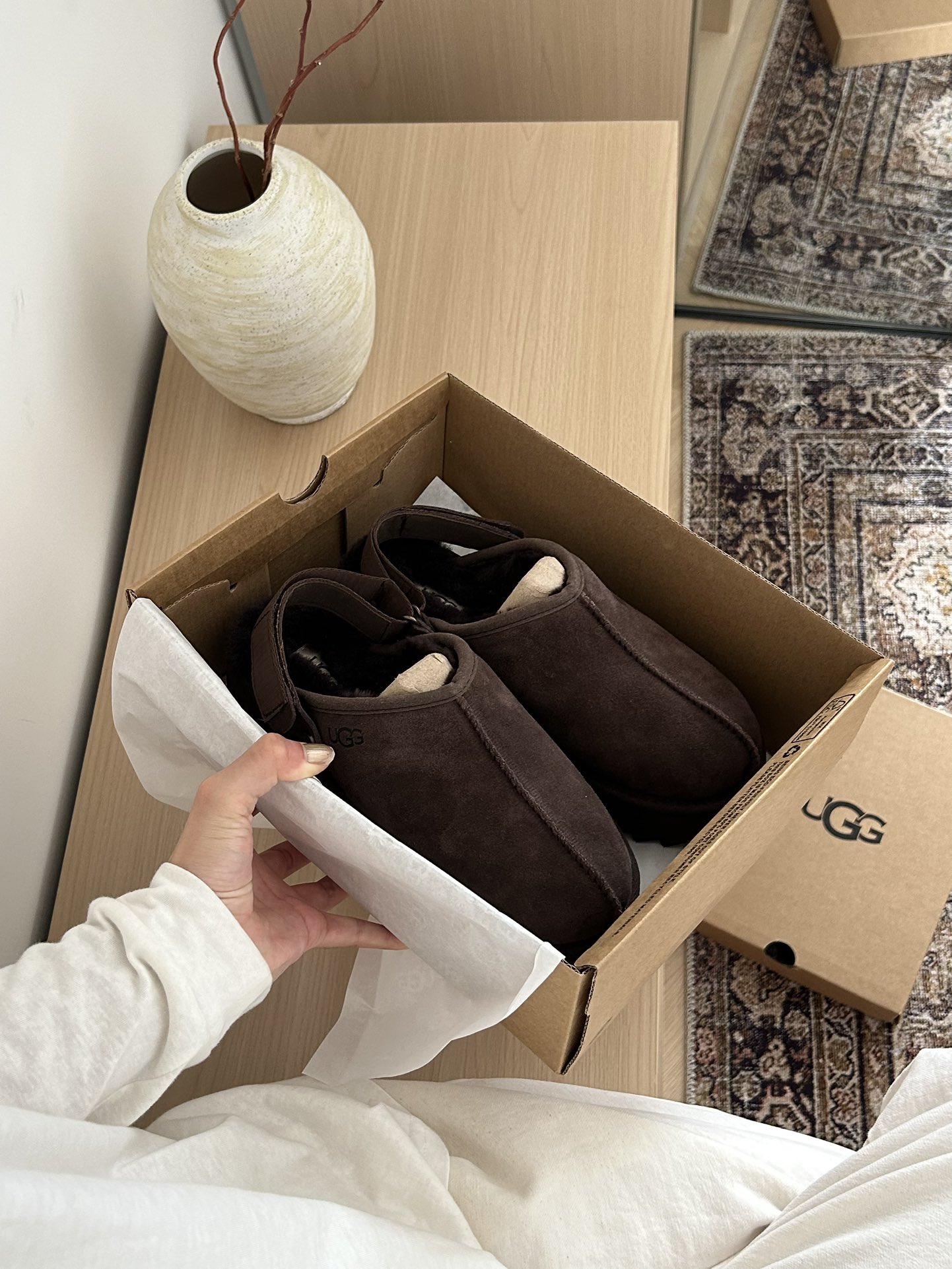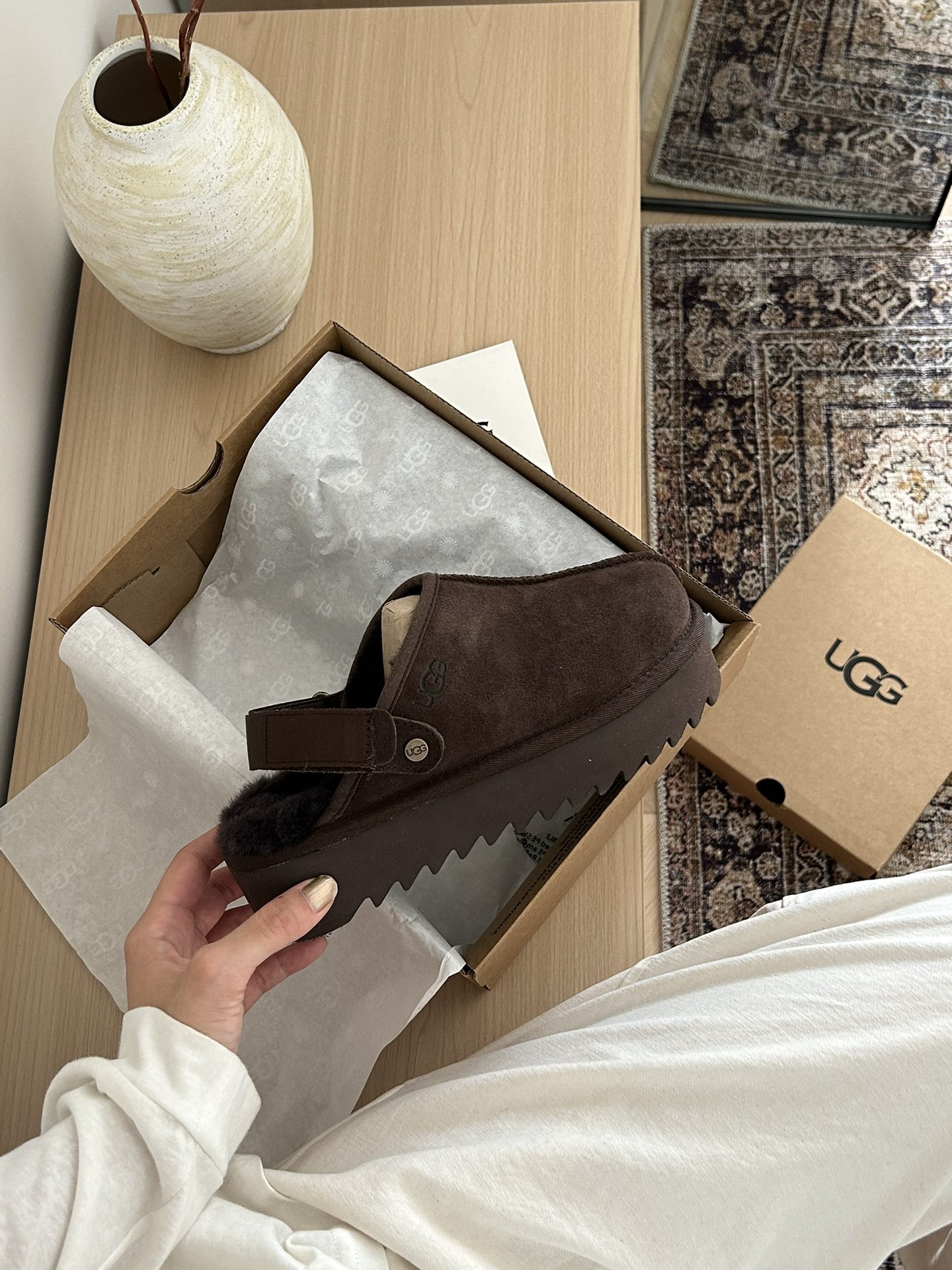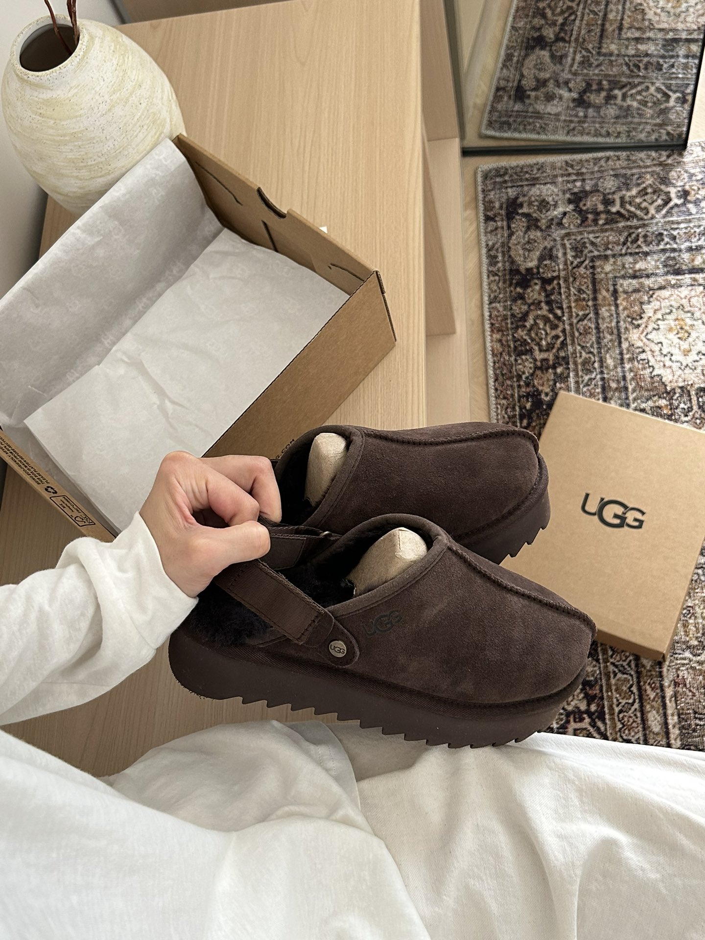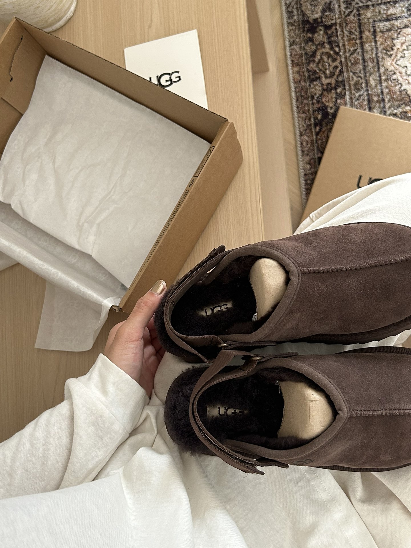 这款鞋子是AAAAA 1:1 质量 (非常棒). 使用了和原版一模一样的材料. 商标部分也保持了和UGG雪地靴一样. 图片拍摄是实物鞋子拍摄, 您所收到的实物保证和我们图片一模一样.