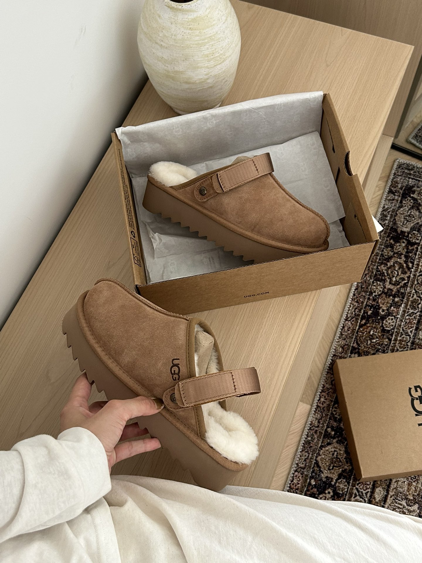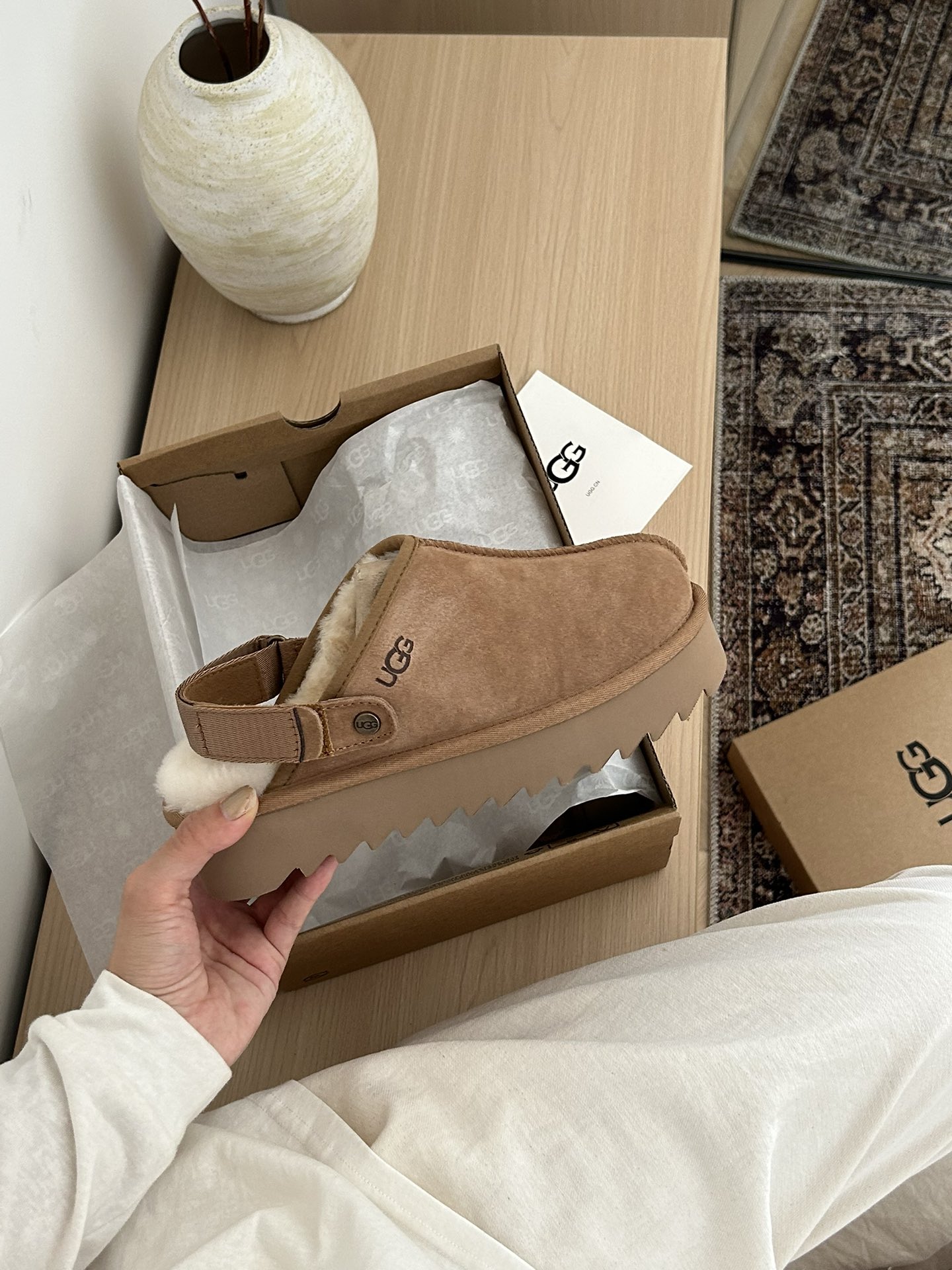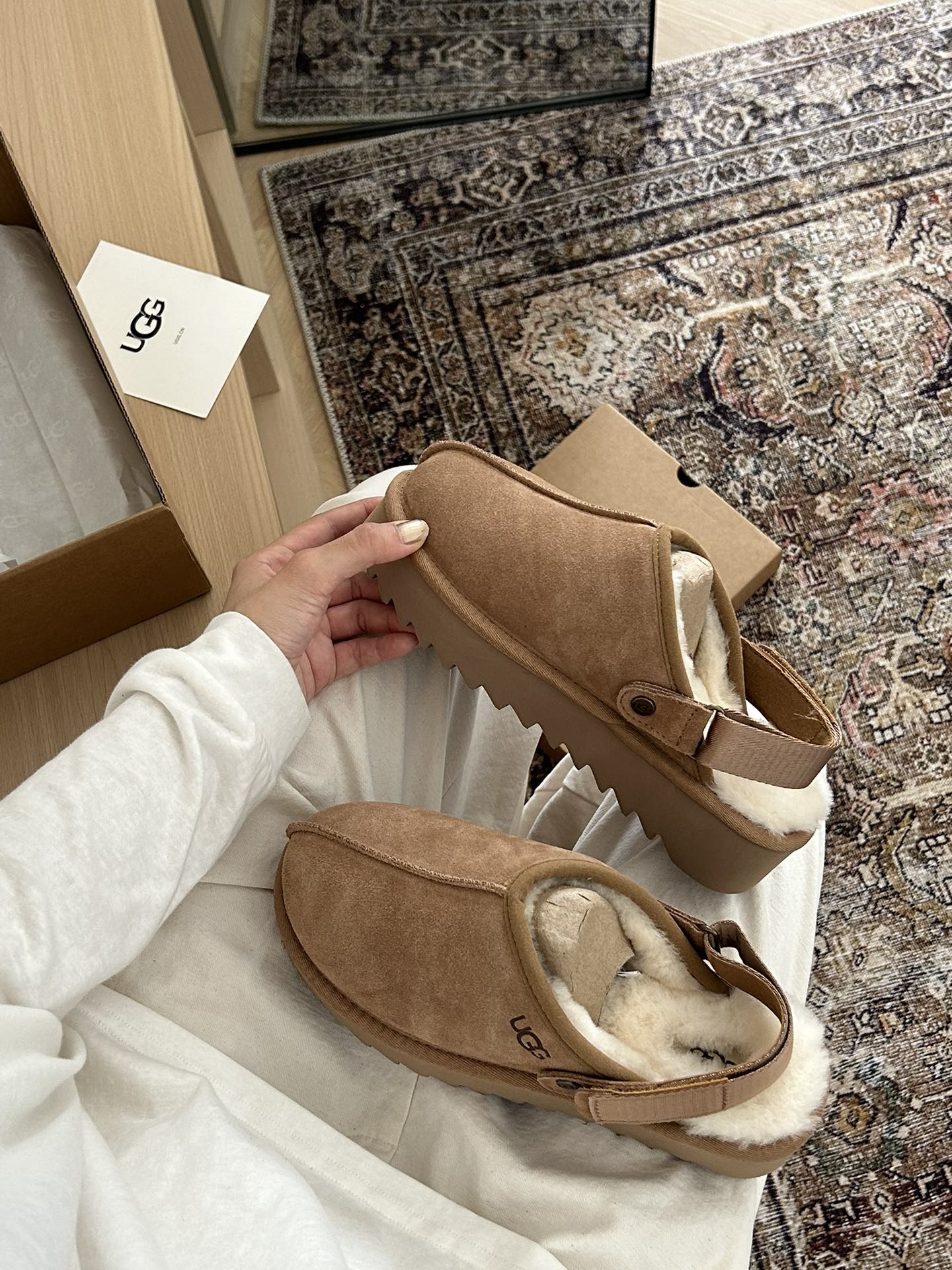 这款鞋子是AAAAA 1:1 质量 (非常棒). 使用了和原版一模一样的材料. 商标部分也保持了和UGG雪地靴一样. 图片拍摄是实物鞋子拍摄, 您所收到的实物保证和我们图片一模一样.