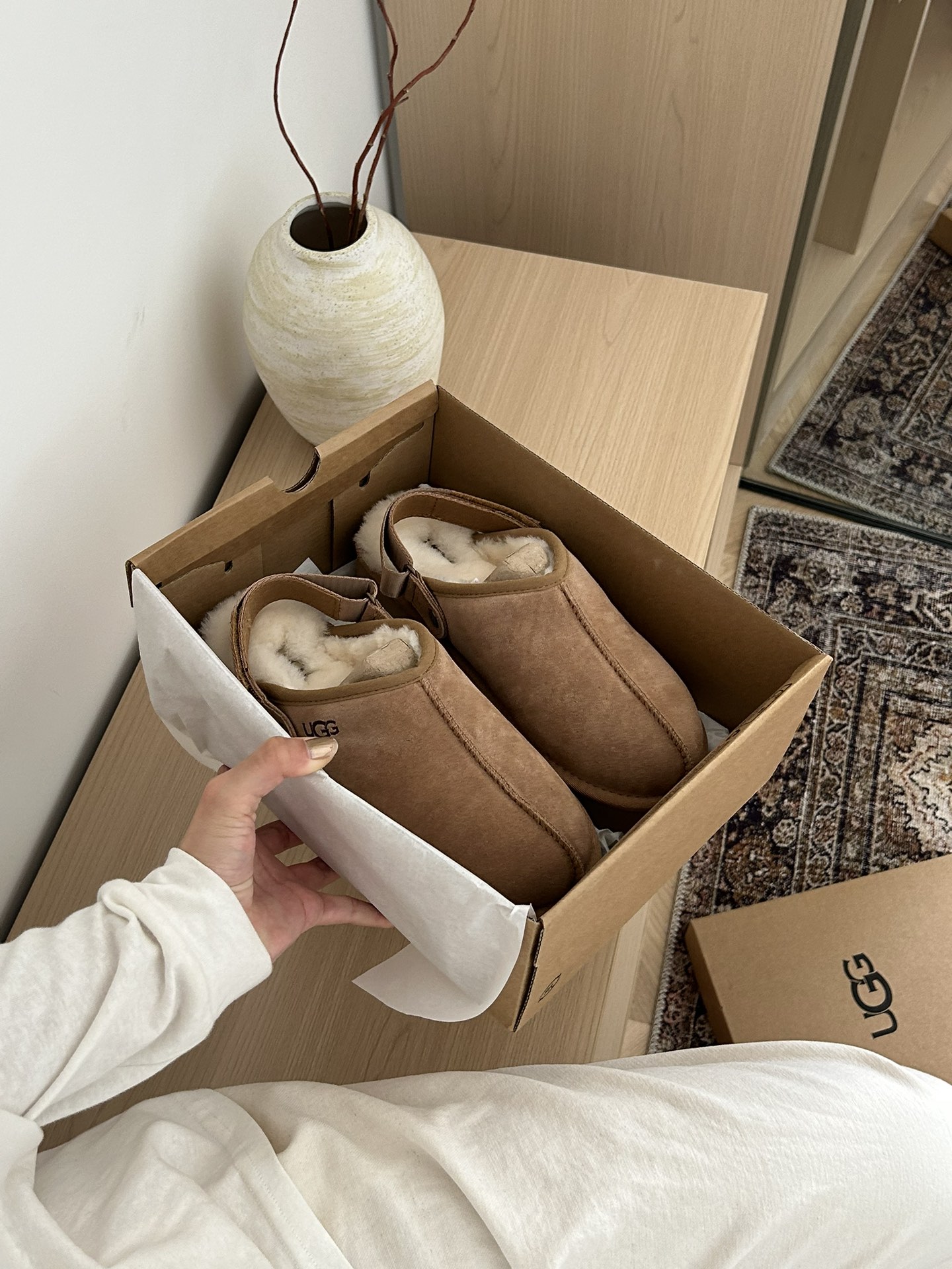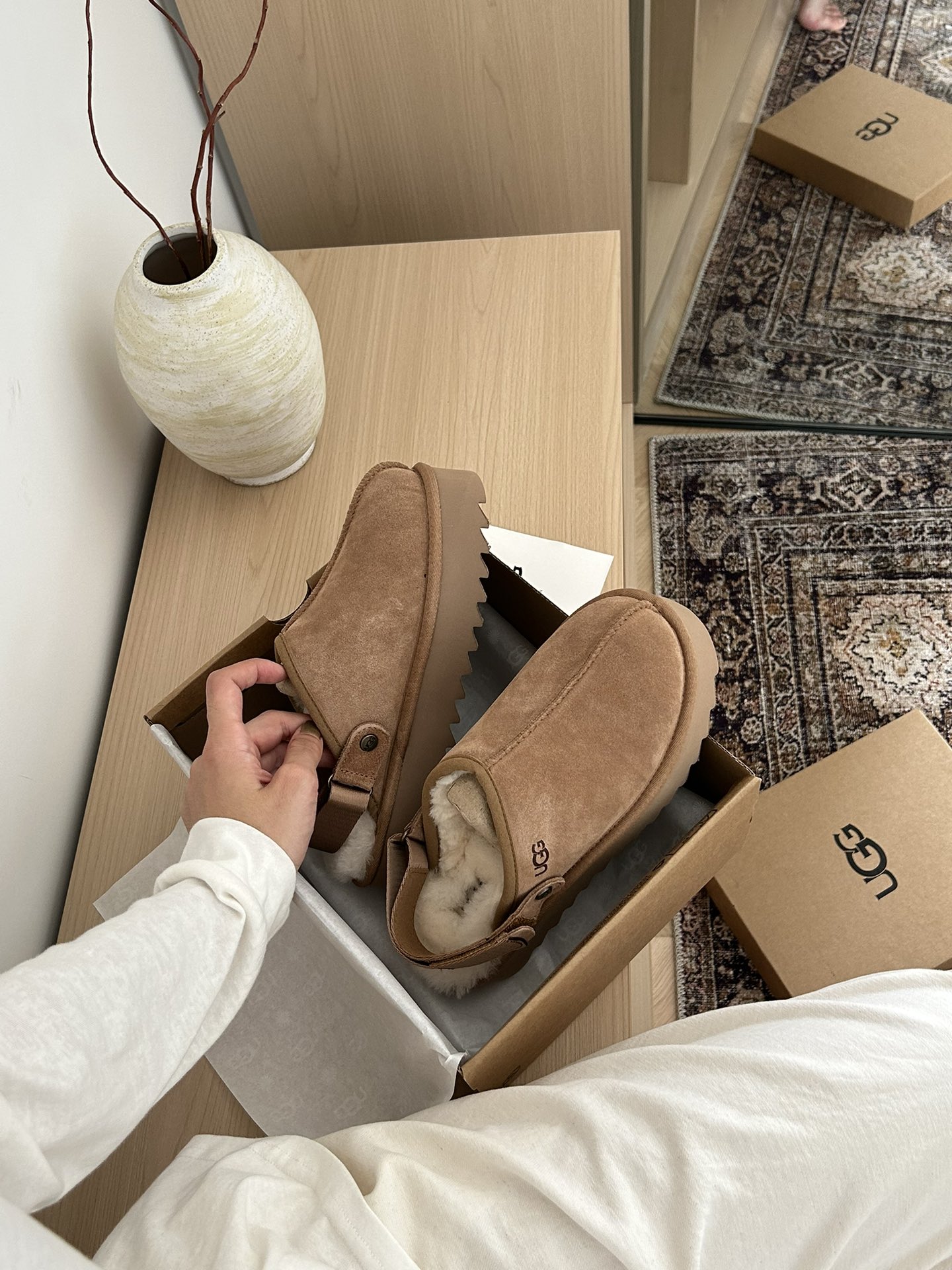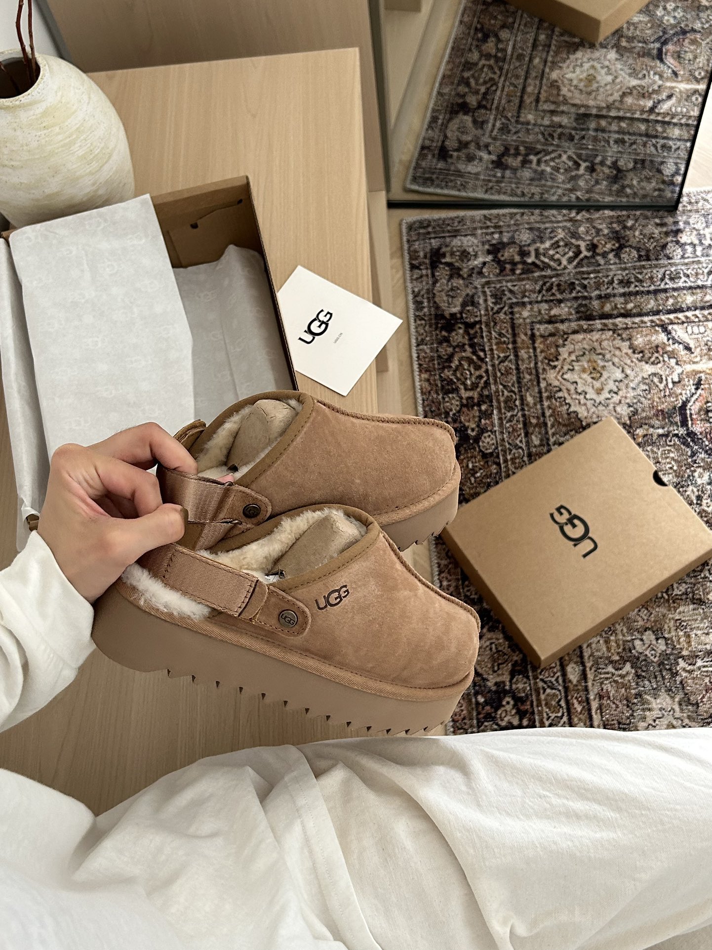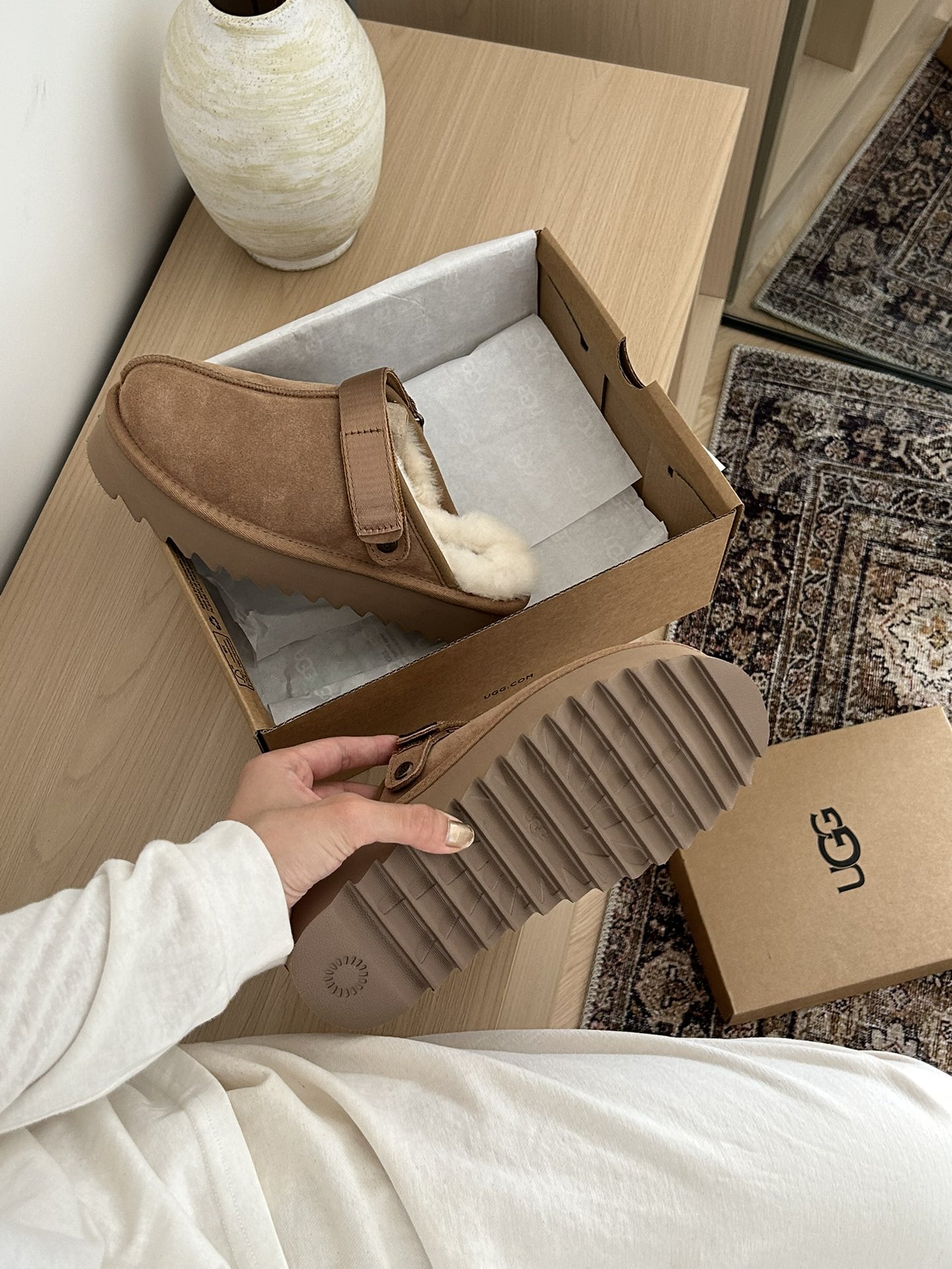 这款鞋子是AAAAA 1:1 质量 (非常棒). 使用了和原版一模一样的材料. 商标部分也保持了和UGG雪地靴一样. 图片拍摄是实物鞋子拍摄, 您所收到的实物保证和我们图片一模一样.