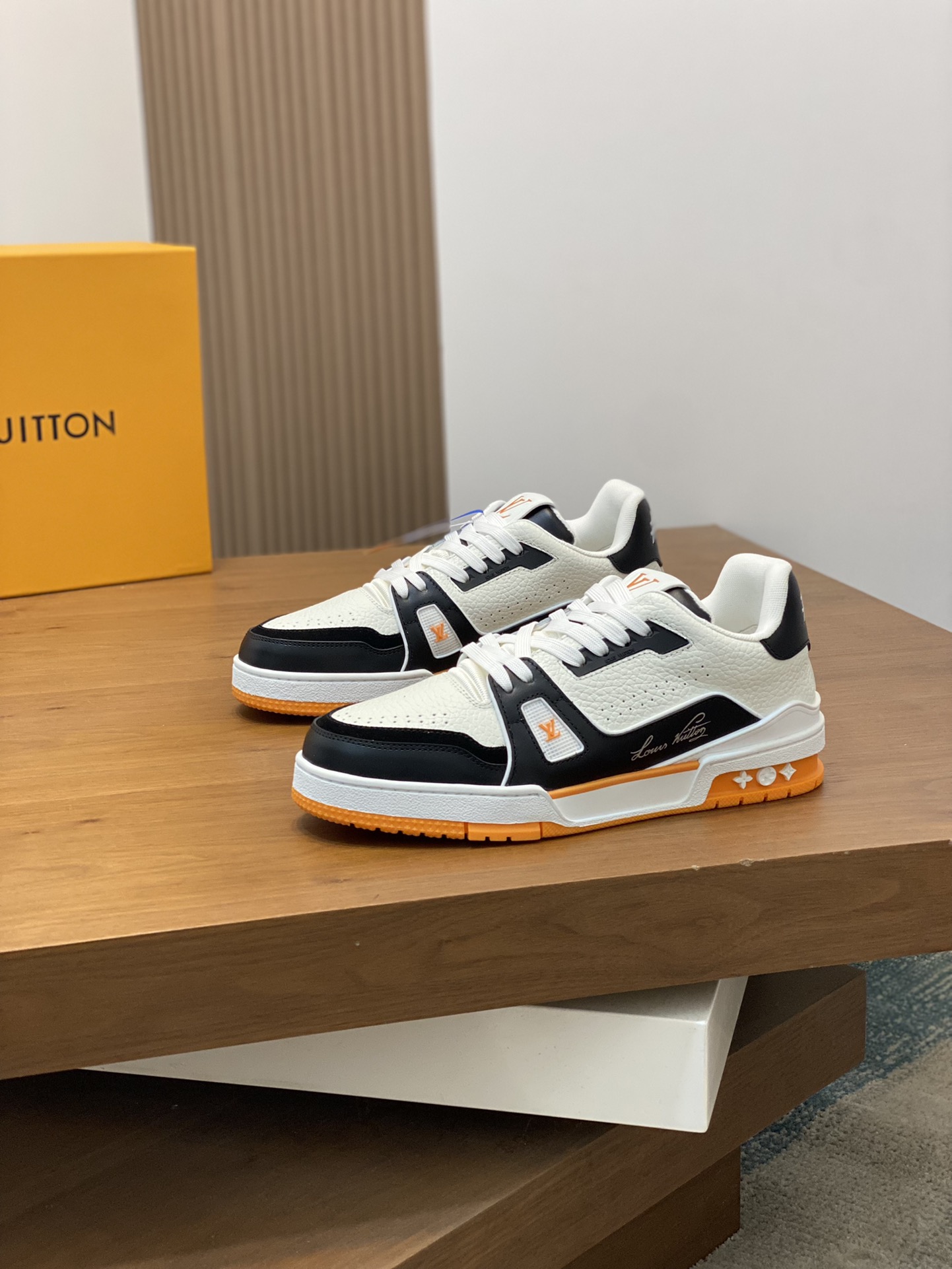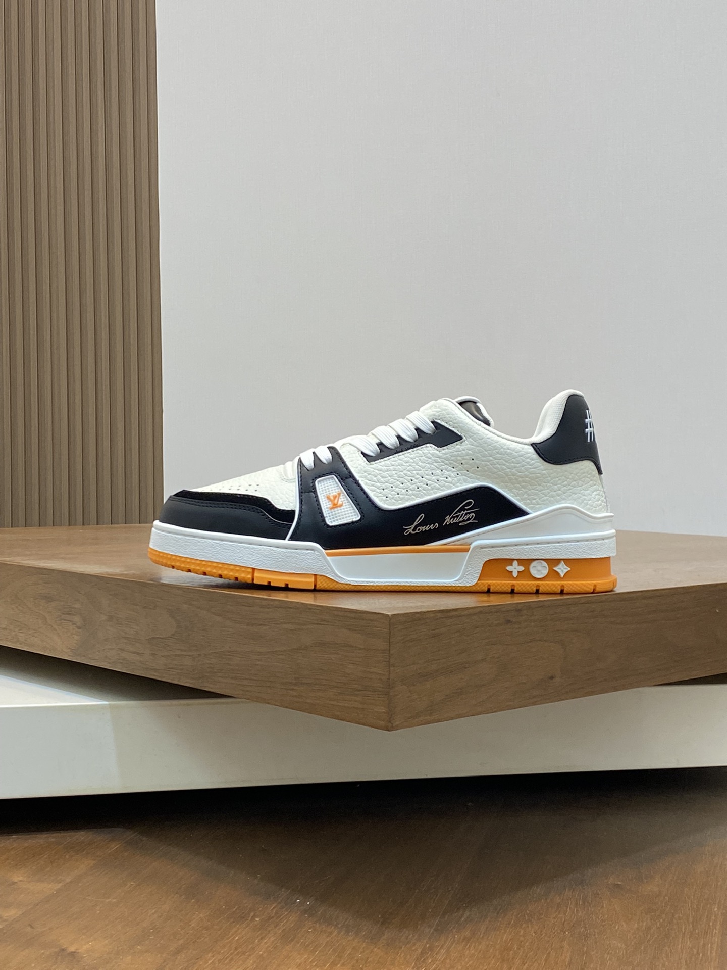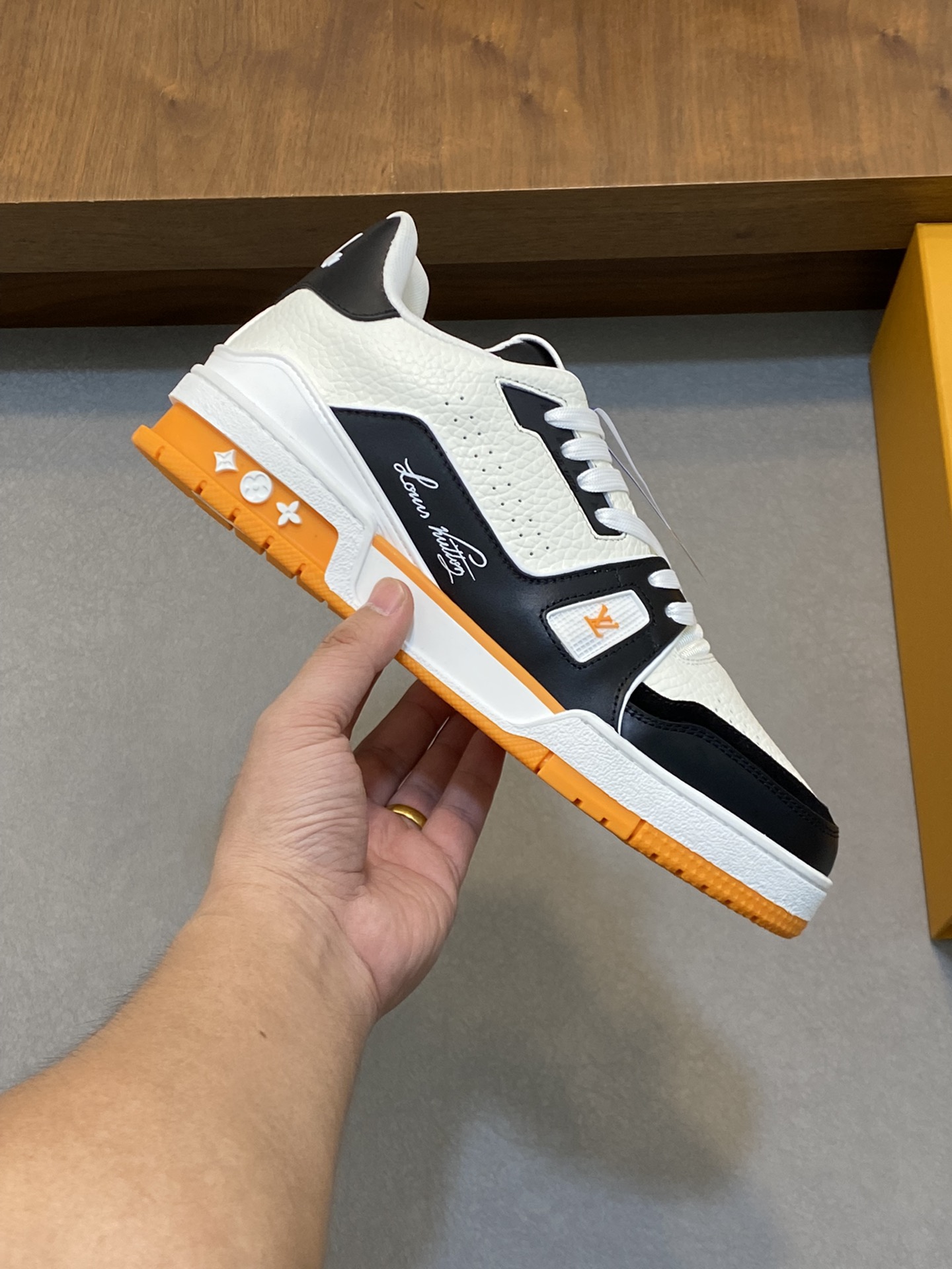 这款鞋子是AAAAA 1:1 质量 (非常棒). 使用了和原版一模一样的材料. 商标部分也保持了和路易威登/Louis Vuitton一样. 图片拍摄是实物鞋子拍摄, 您所收到的实物保证和我们图片一模一样.