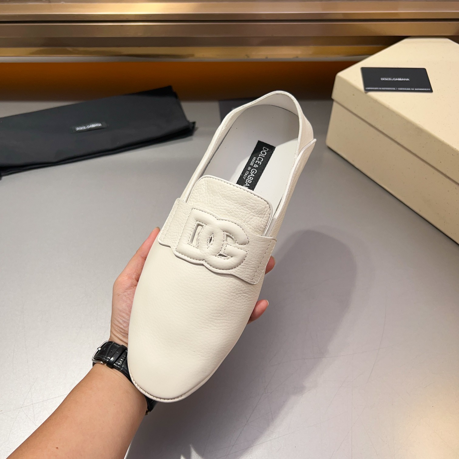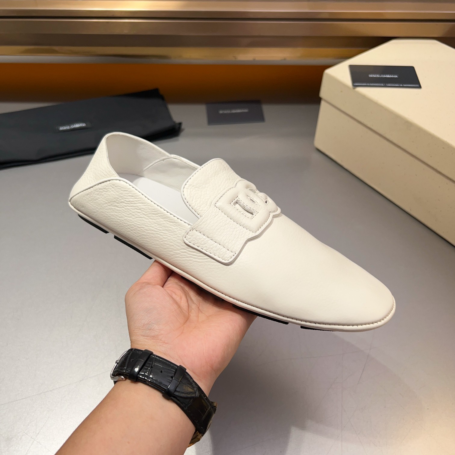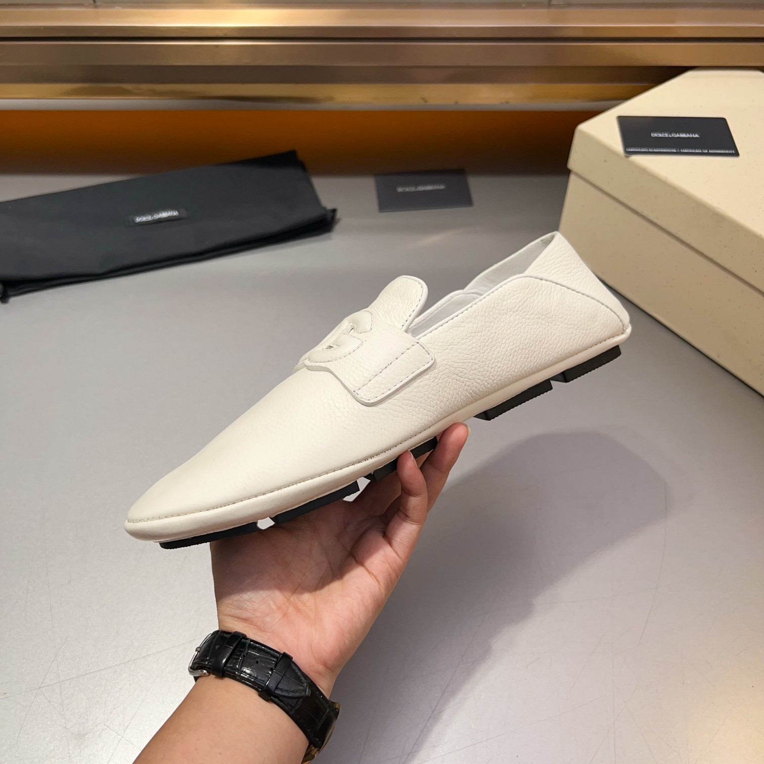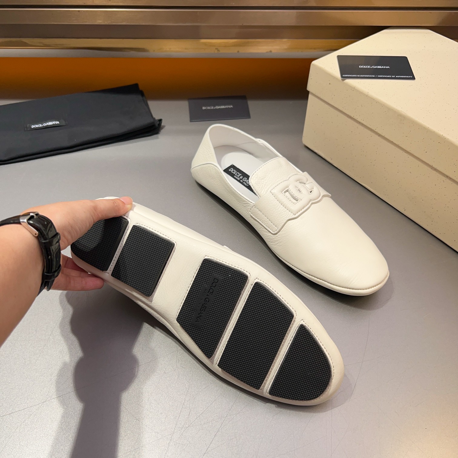 这款鞋子是AAAAA 1:1 质量 (非常棒). 使用了和原版一模一样的材料. 商标部分也保持了和杜嘉班纳/Dolce&Gabbana一样. 图片拍摄是实物鞋子拍摄, 您所收到的实物保证和我们图片一模一样.