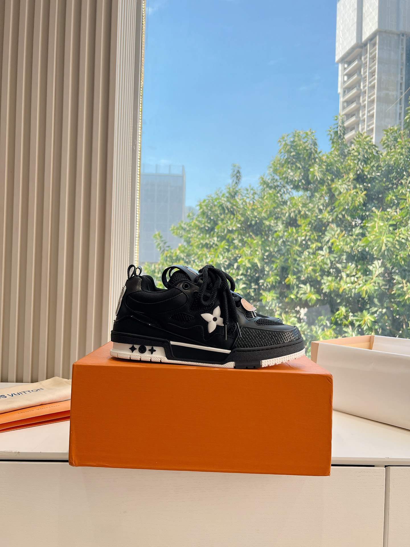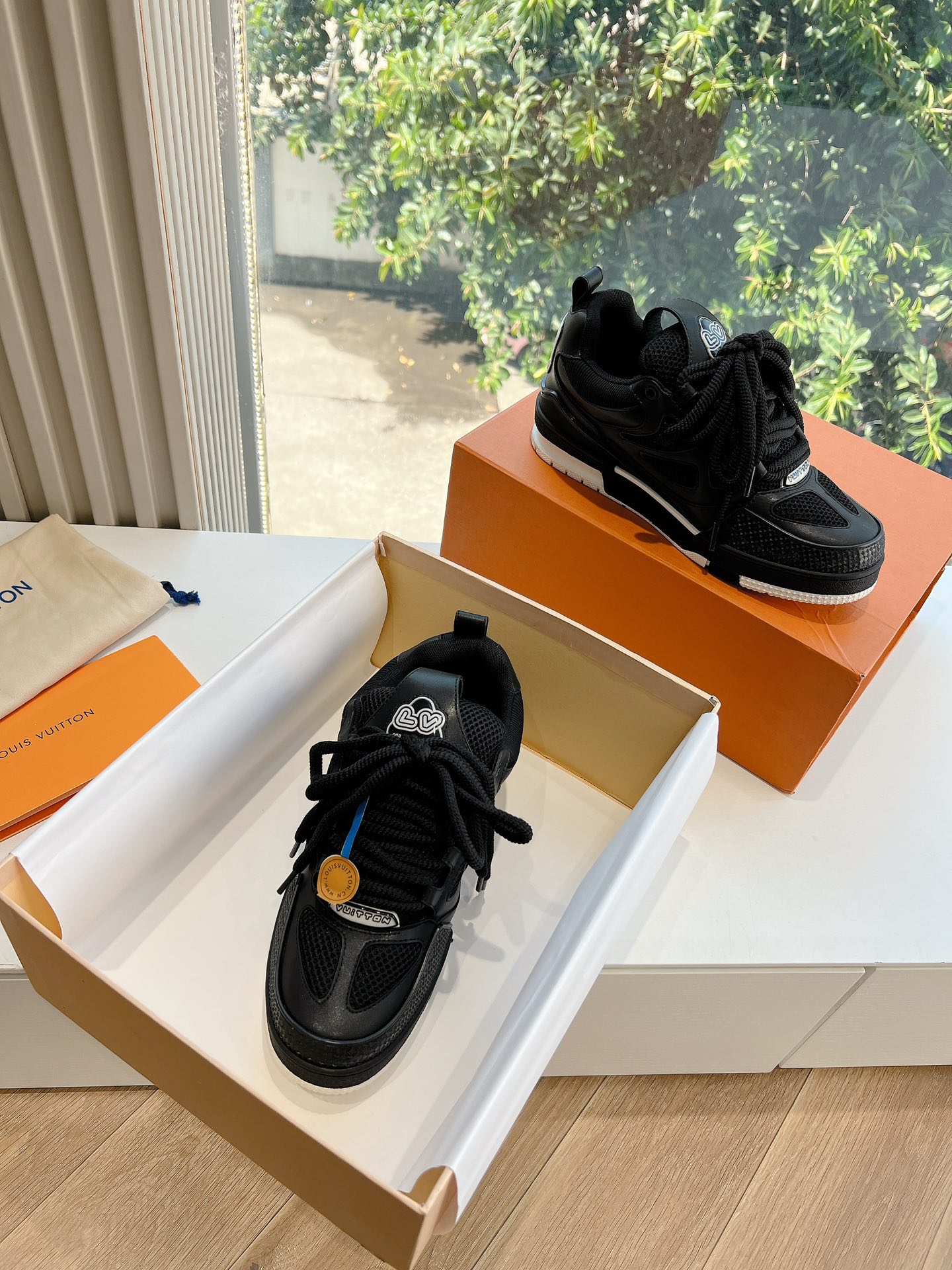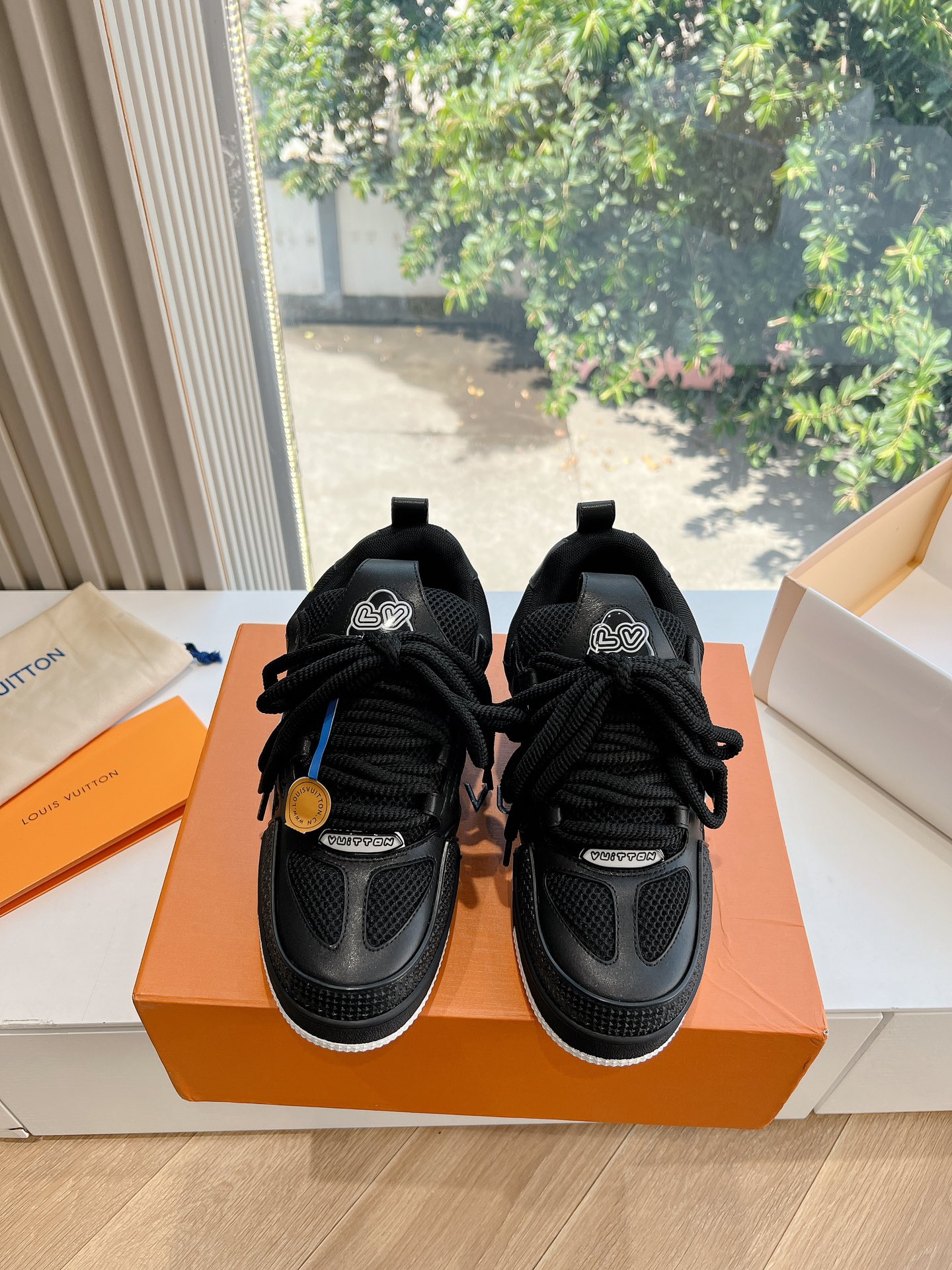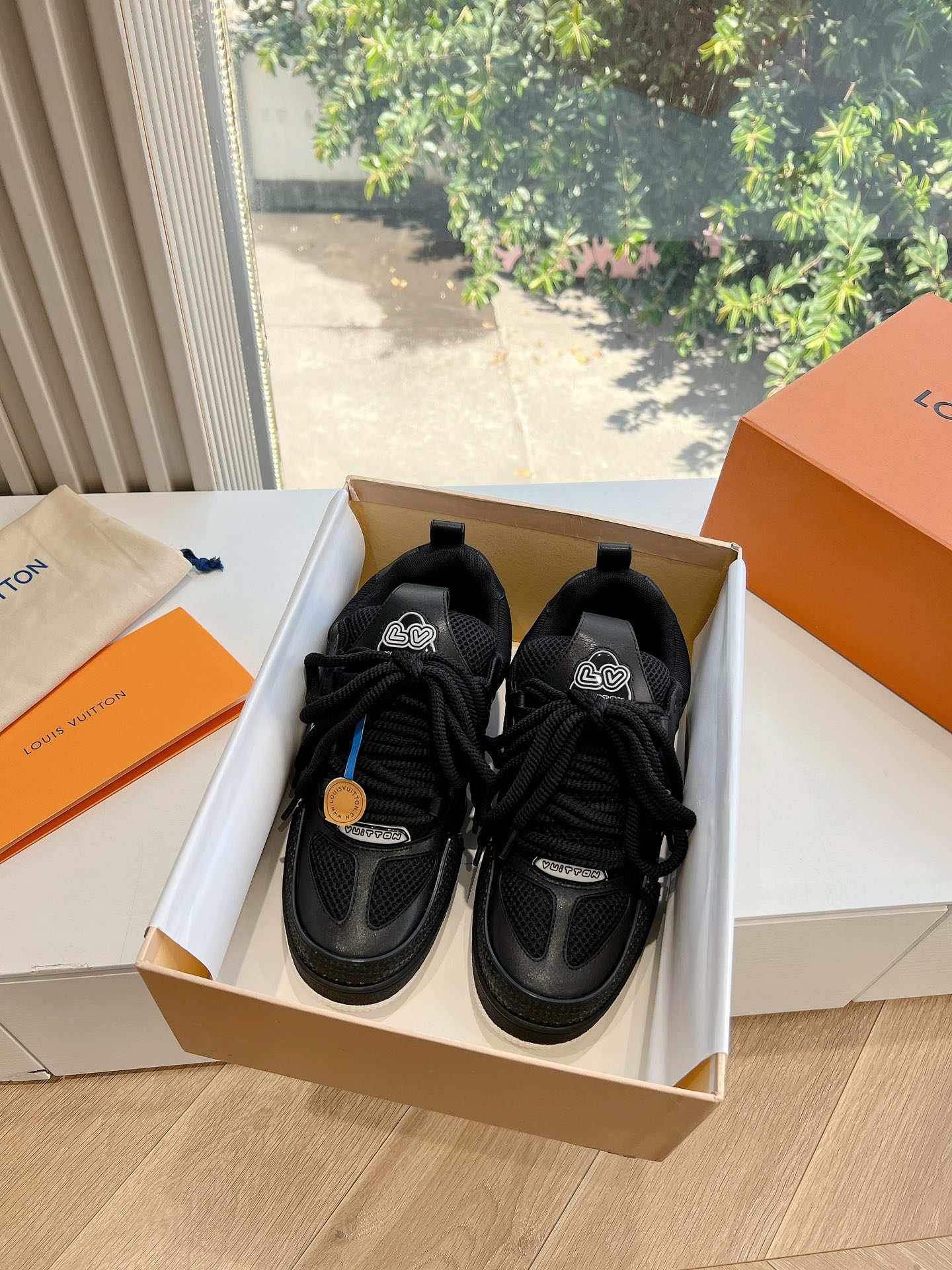 这款鞋子是AAAAA 1:1 质量 (非常棒). 使用了和原版一模一样的材料. 商标部分也保持了和路易威登/Louis Vuitton一样. 图片拍摄是实物鞋子拍摄, 您所收到的实物保证和我们图片一模一样.