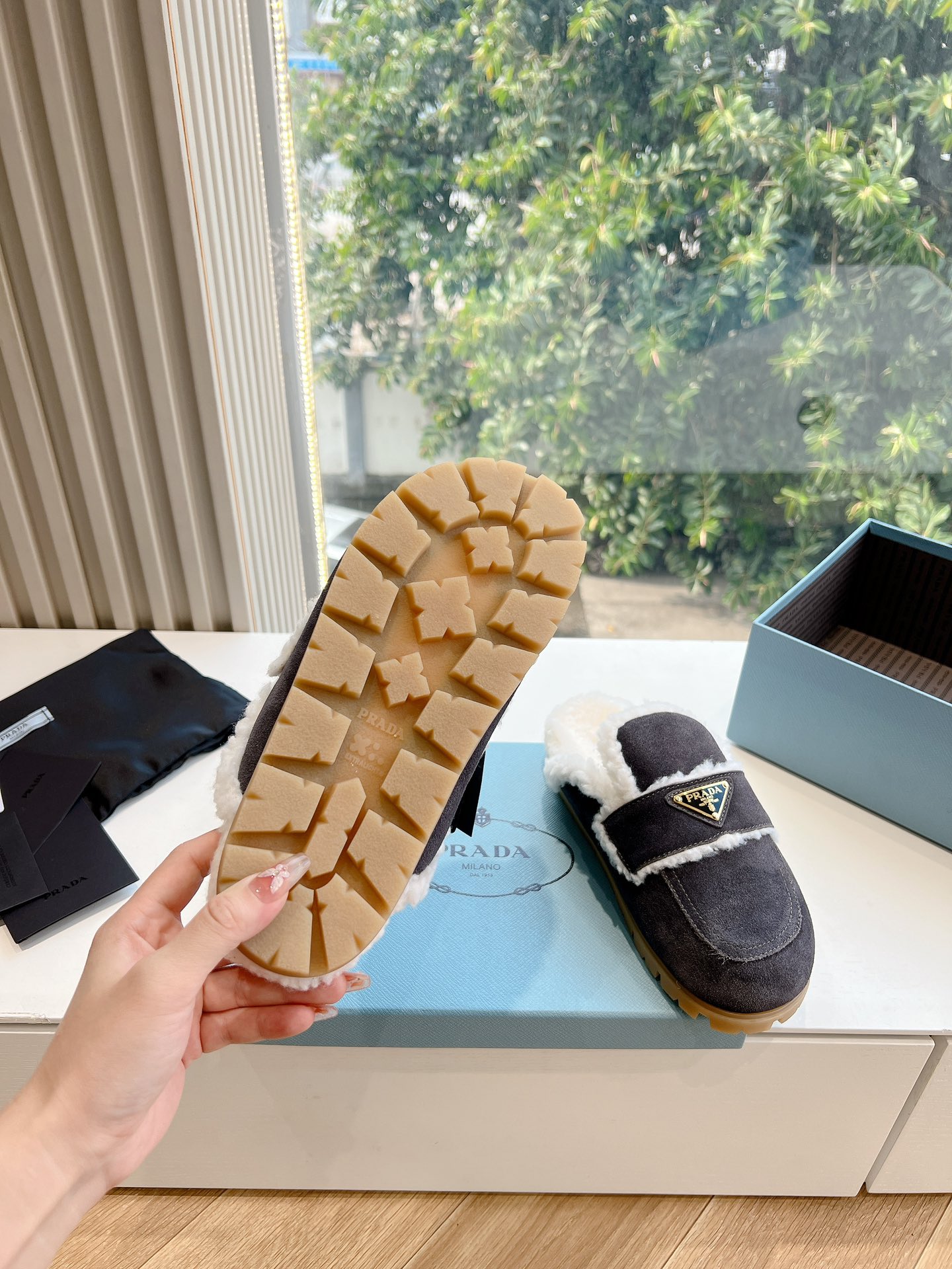 这款鞋子是AAAAA 1:1 质量 (非常棒). 使用了和原版一模一样的材料. 商标部分也保持了和普拉达/Prada一样. 图片拍摄是实物鞋子拍摄, 您所收到的实物保证和我们图片一模一样.